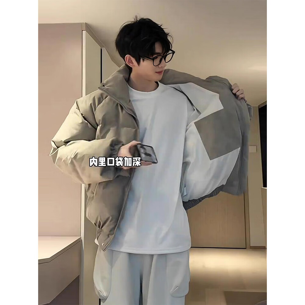 Cantu American short down cotton coat men's winter stand-up collar tie-dyed cotton coat cleanfit advanced bread coat cotton coat camel XL