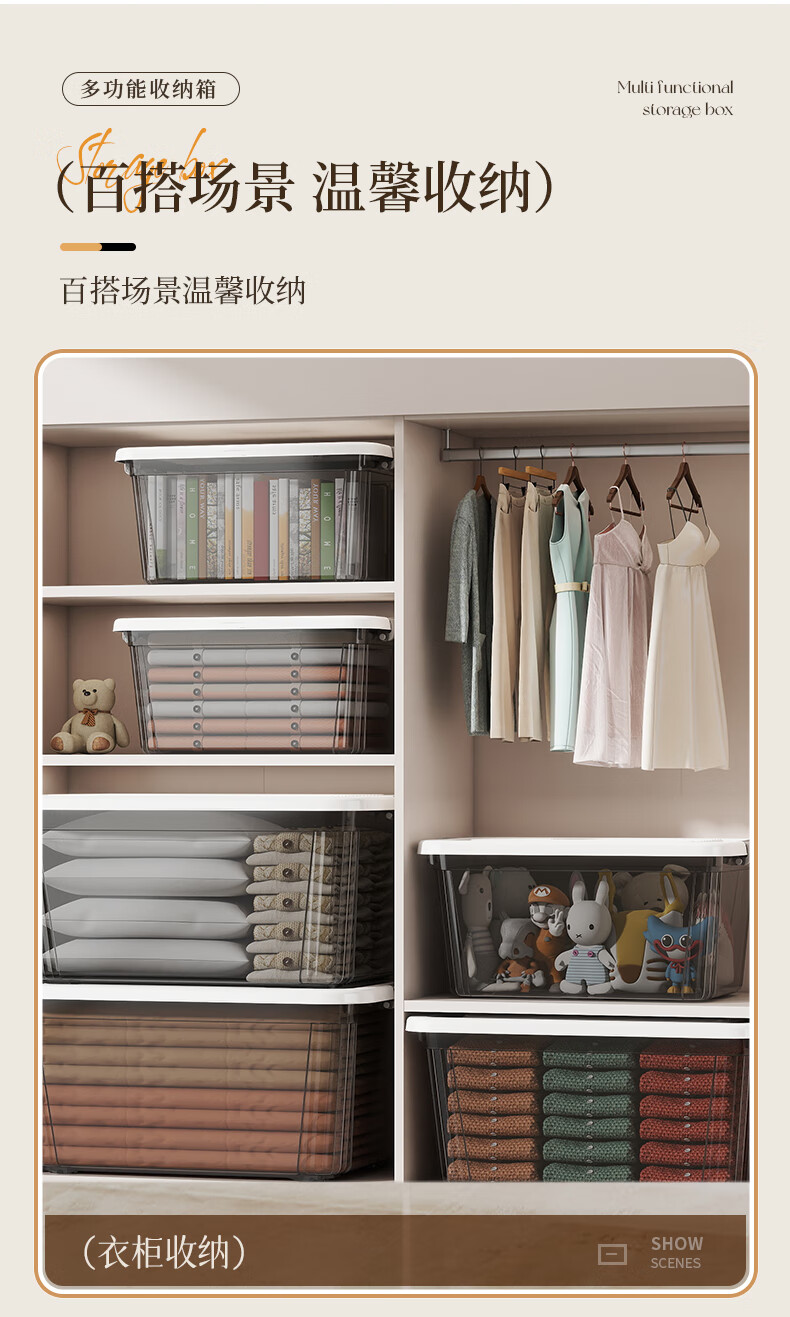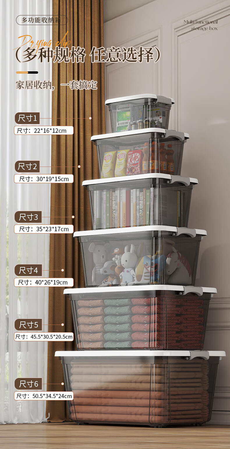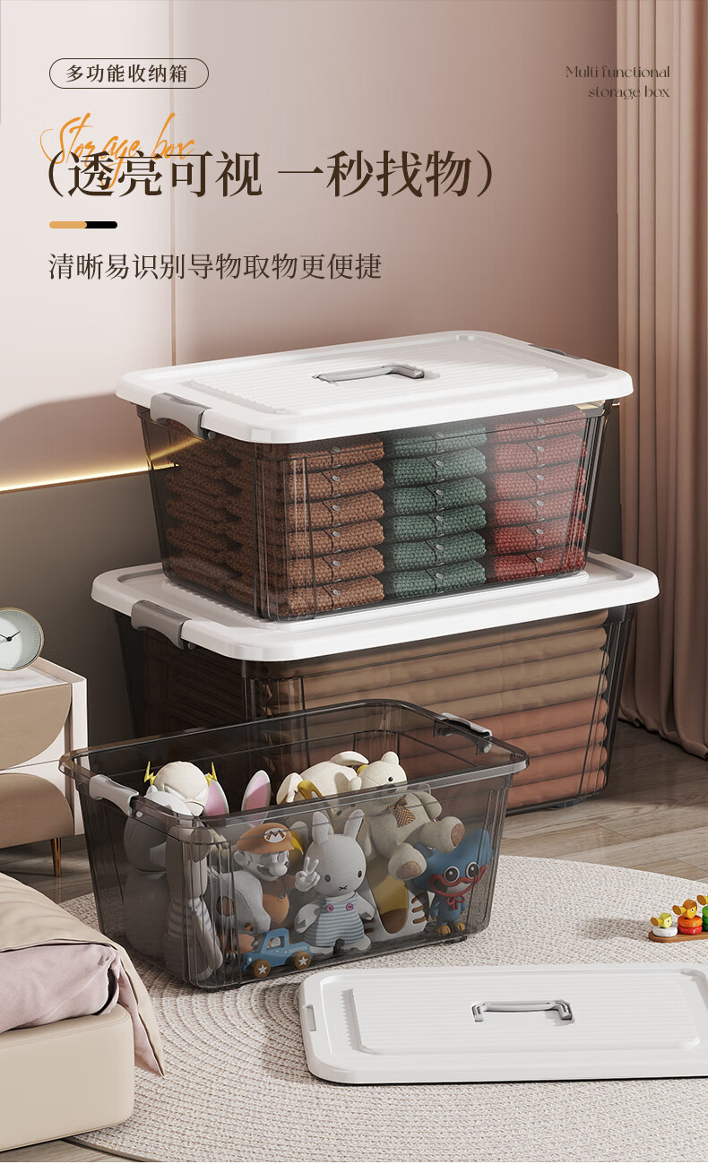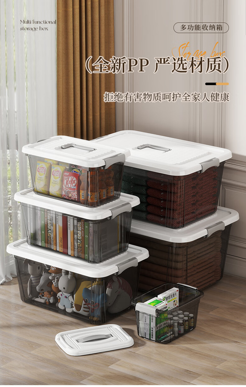 Portable storage box with lid storage box thickened plastic organizer car household toy storage box turnover box transparent black mini 22*16*12cm