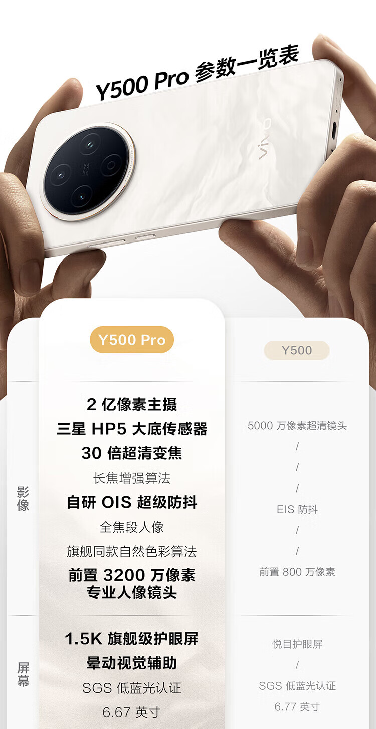Vivo Y500 Pro 200 million HP5 flagship main camera 7000mAh blue ocean battery AI imaging phone titanium black 8GB+128GB official standard configuration