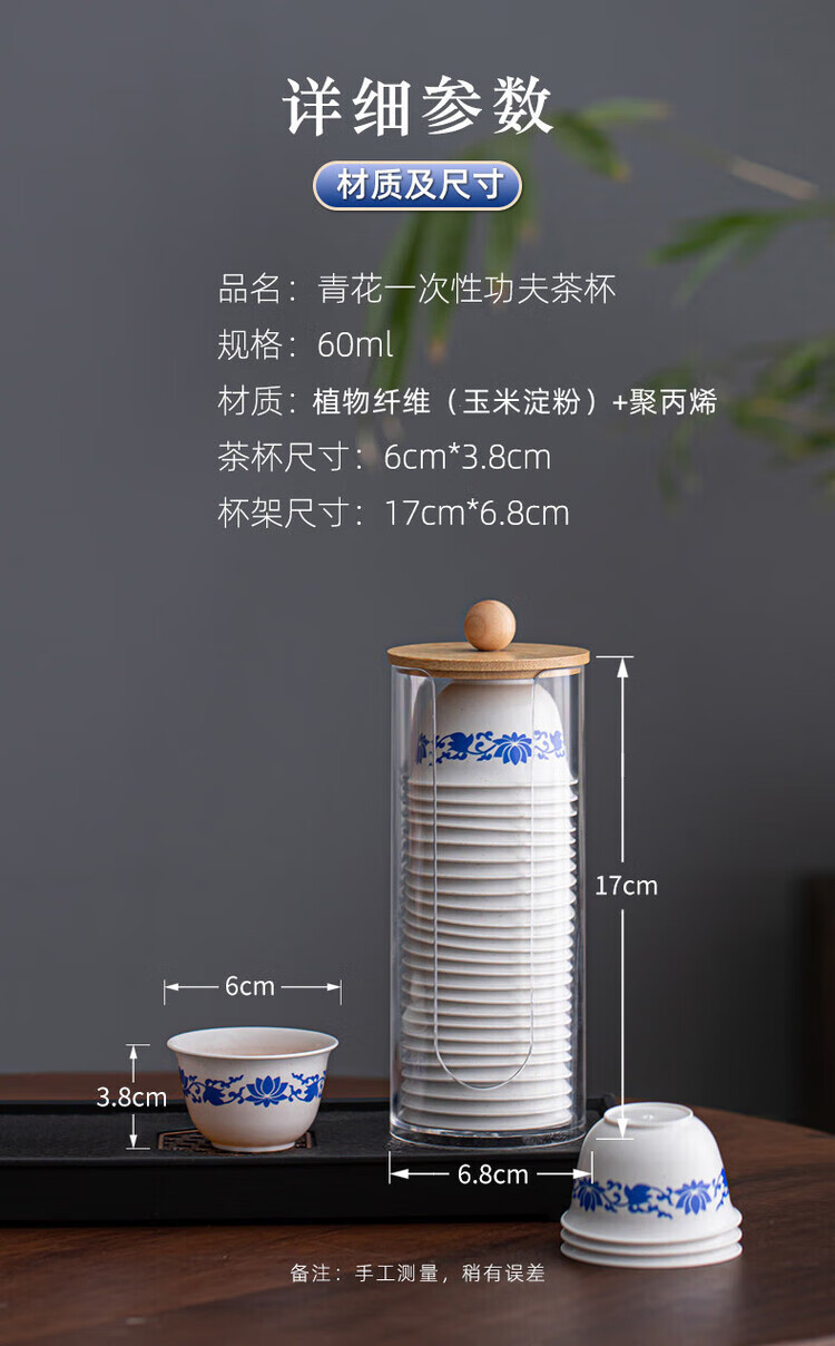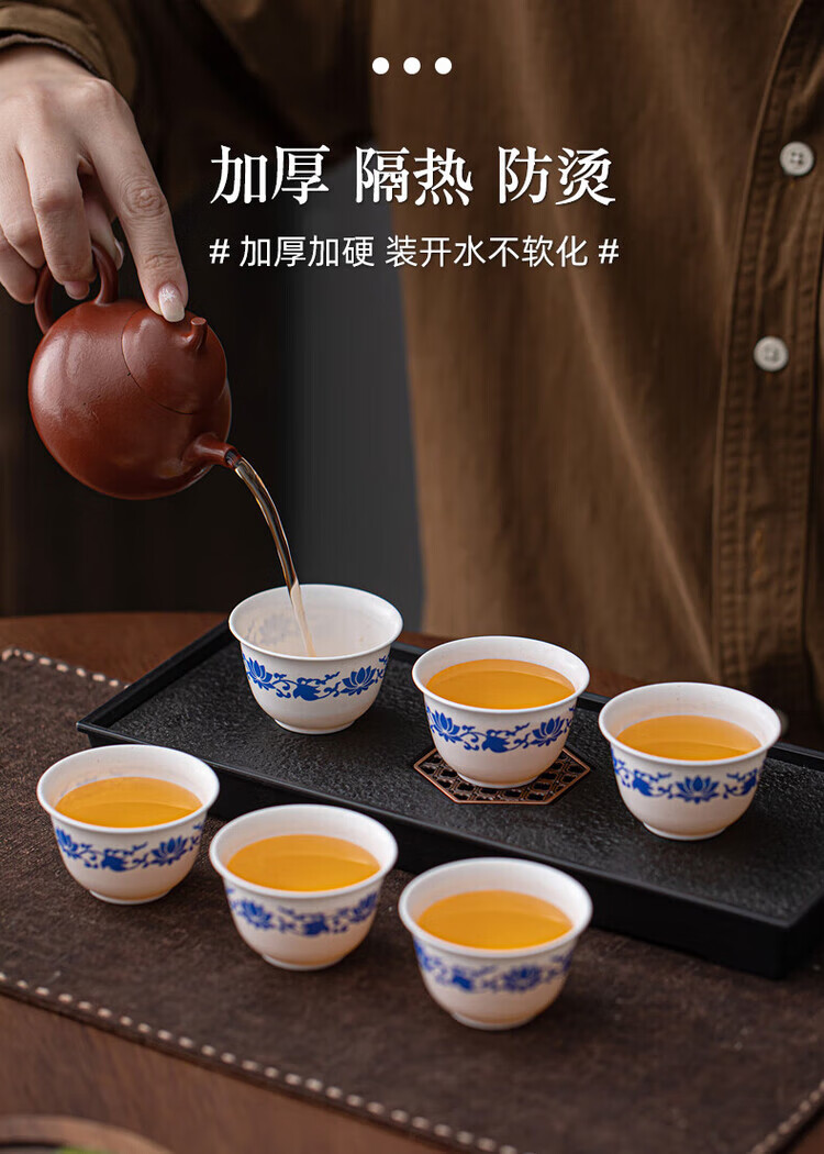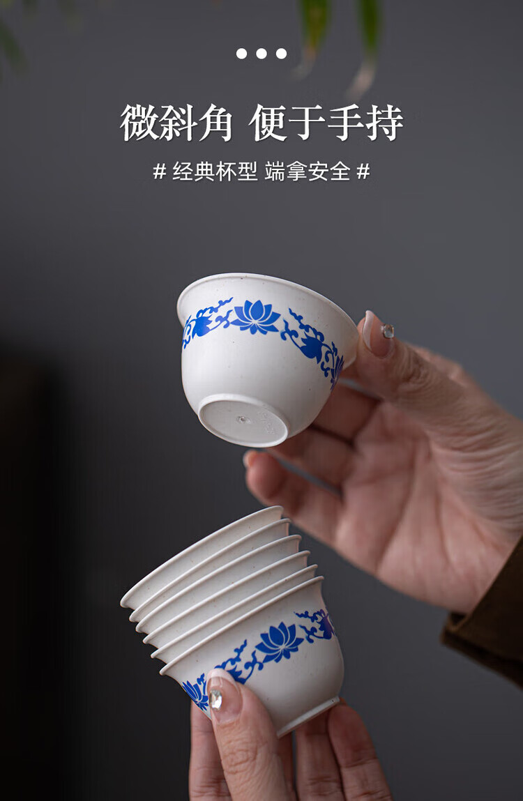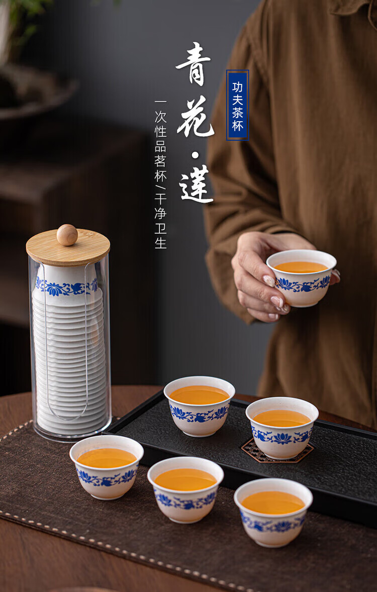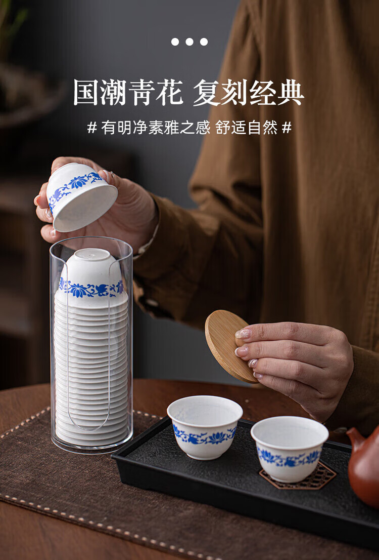 SOXW German disposable kung fu tea cup blue and white porcelain thickened anti-scalding national style small tea cup tea set 100 pcs 100 pcs high-end blue and white