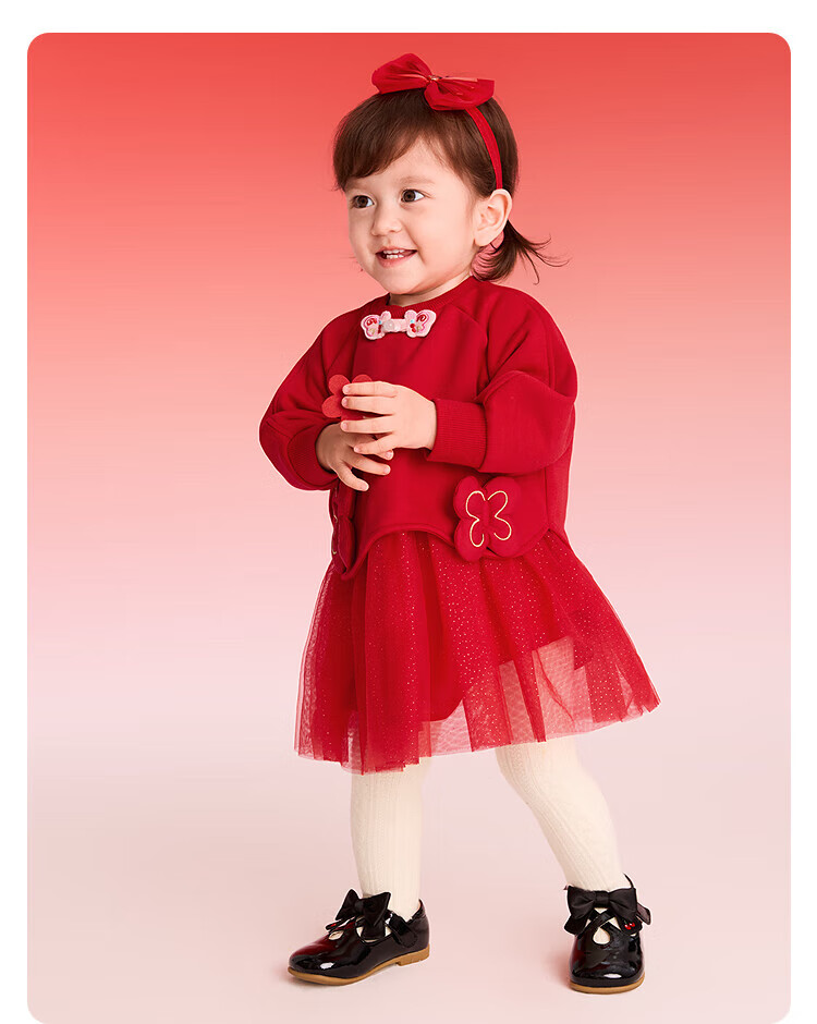 BalaOne children's clothing girls new Chinese style mesh skirt splicing red Chinese red 60611 80