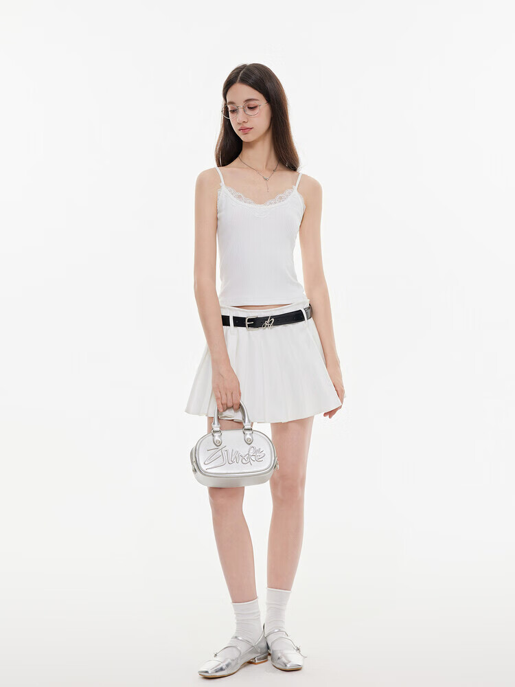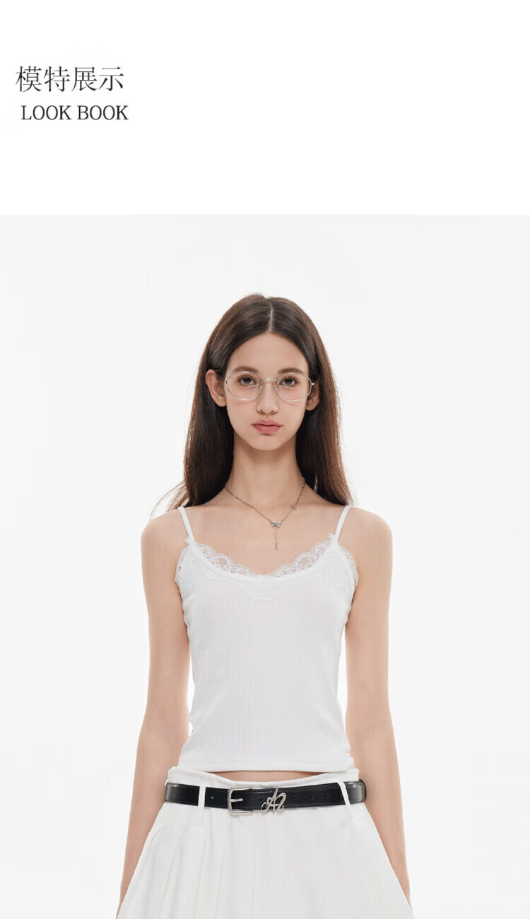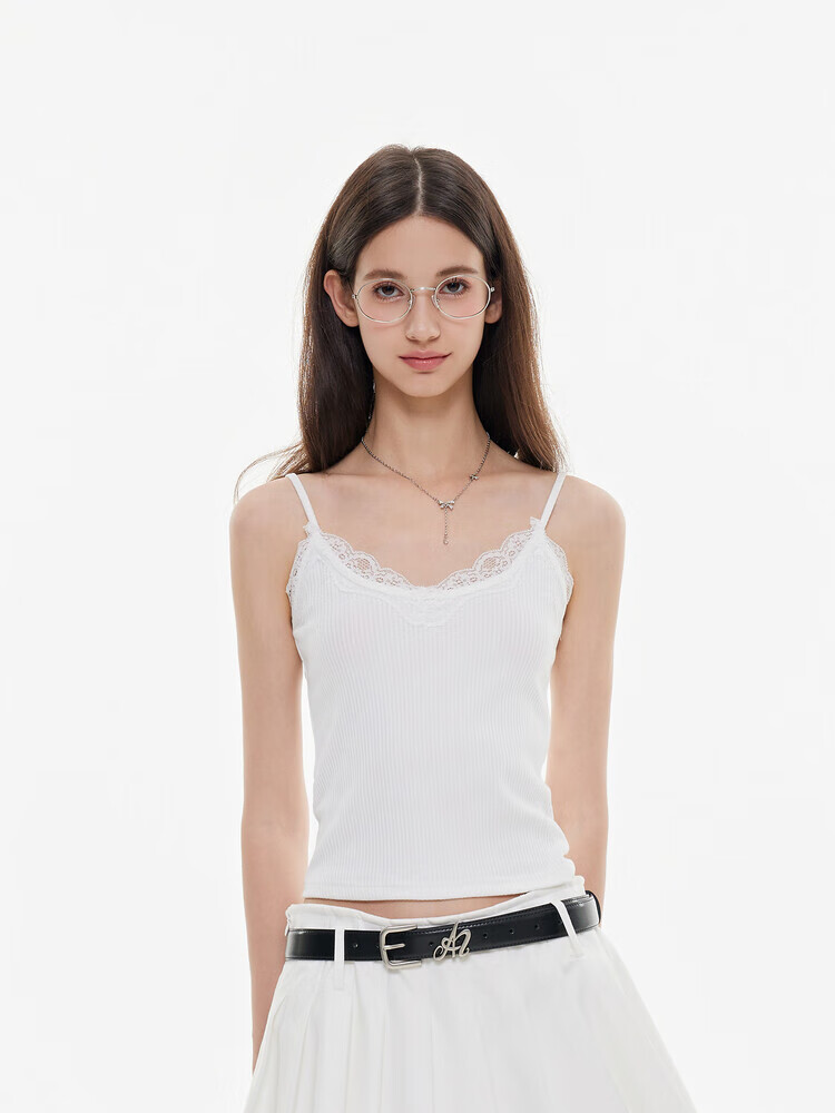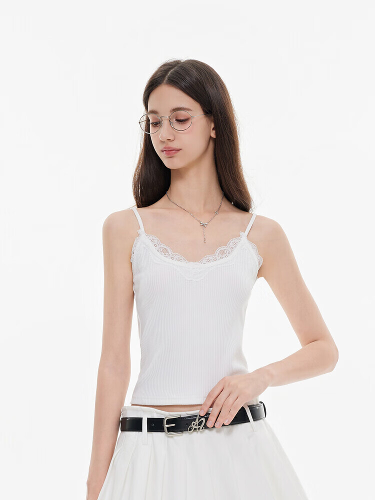 Azmi Simple Lace Camisole Women's Spring and Autumn New Slim Fit Bottoming Top Clothes White S