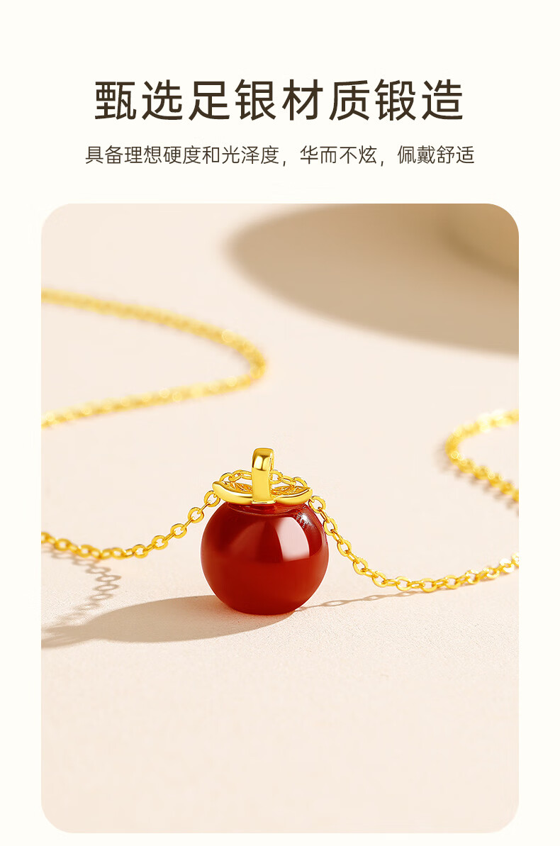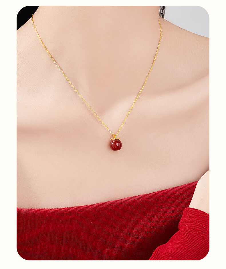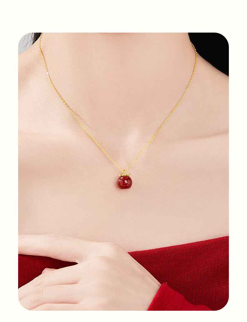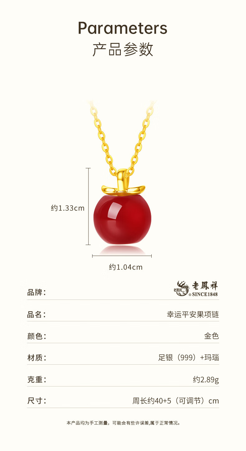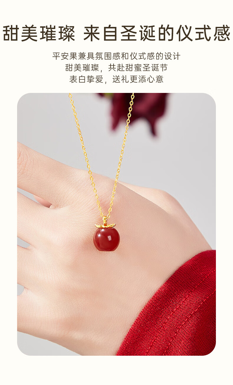 Lao Fengxiang Ping An Fruit Necklace for Women Pure Silver 999 Apple Pendant Birthday Christmas Eve Christmas Gift for Girlfriend and Wife Christmas Gift Ping An Fruit Necklace*Lao Fengxiang Gift Box