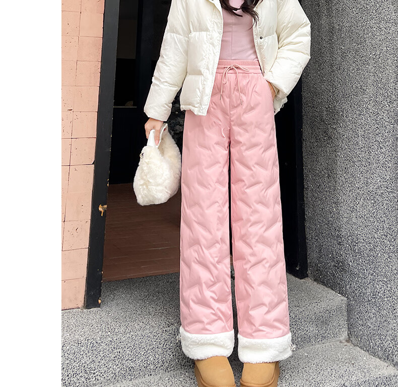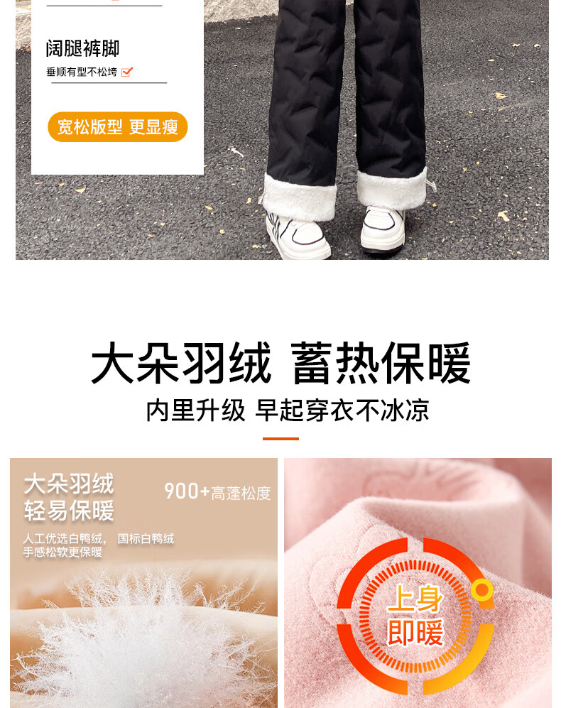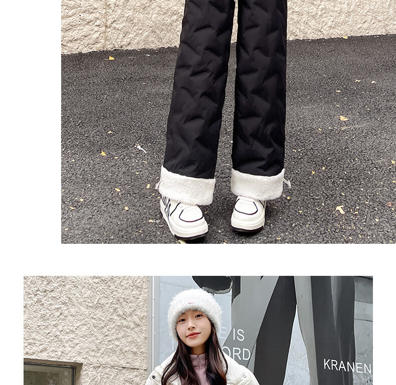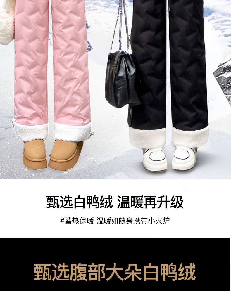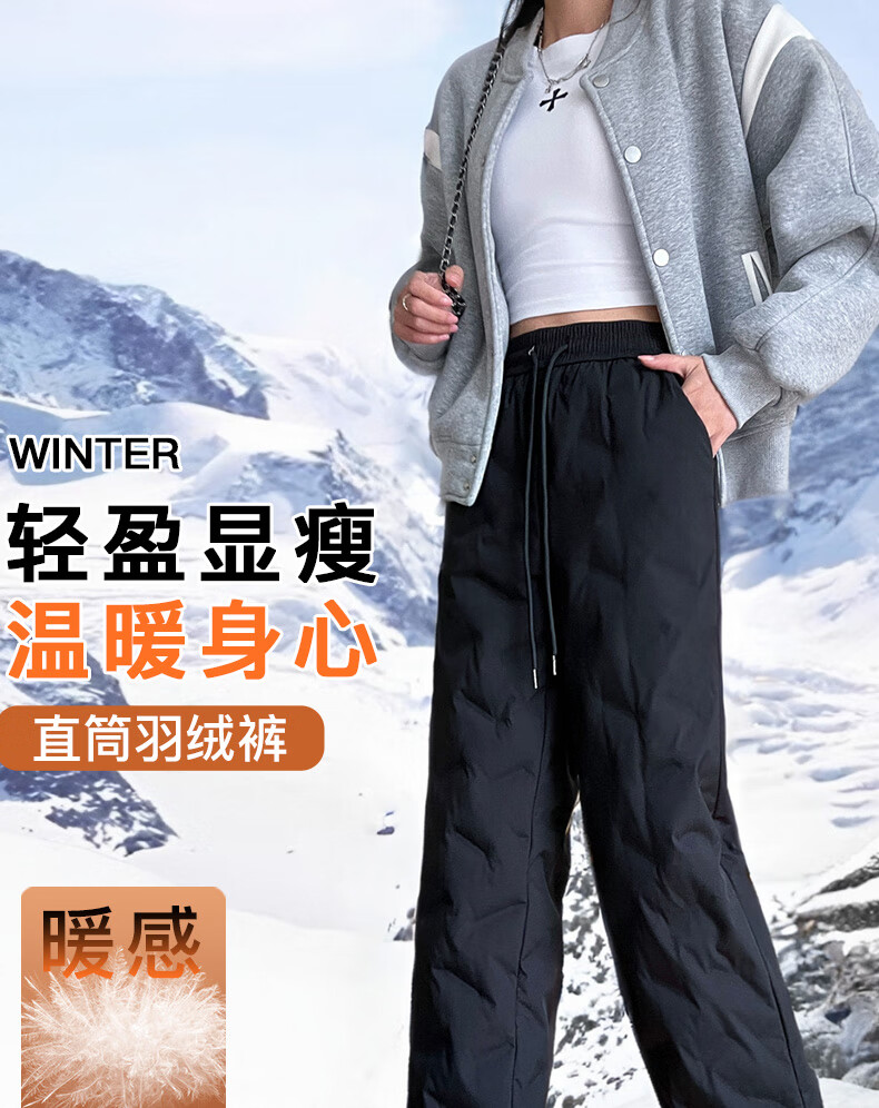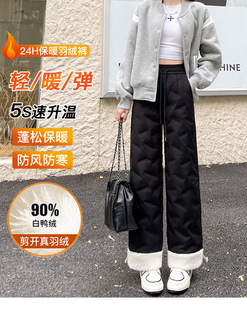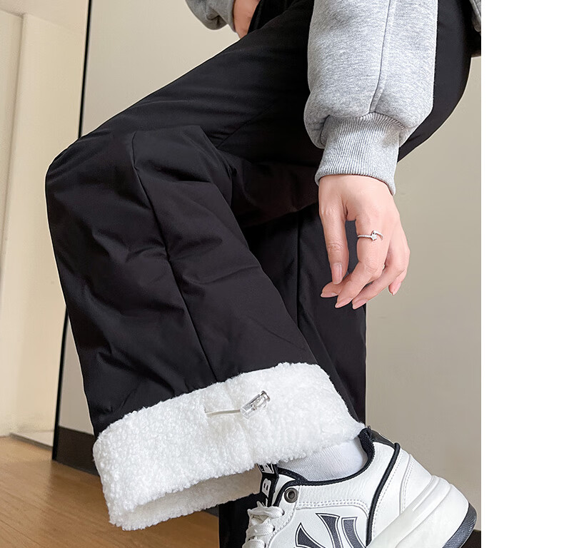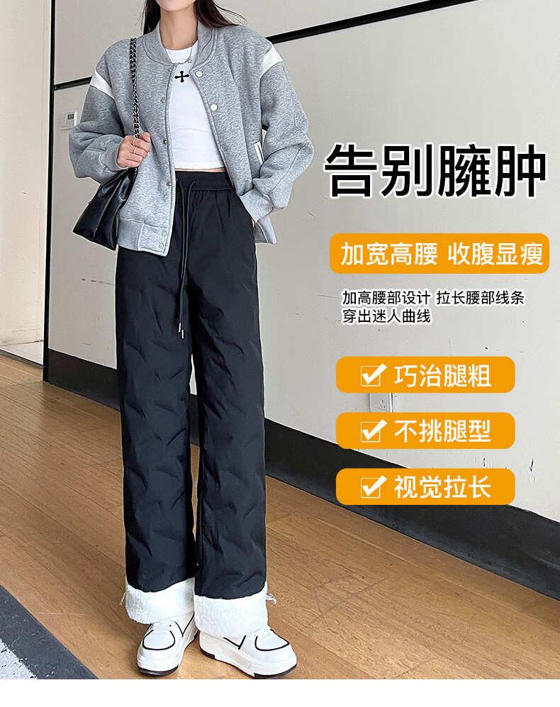 RLAS white duck down straight down pants for women's outer wear in winter 2026 new high-waisted cold-proof lamb wool spliced ​​ski cotton pants black classic versatile XL 116-125Jin Jin equals 0.5 kg