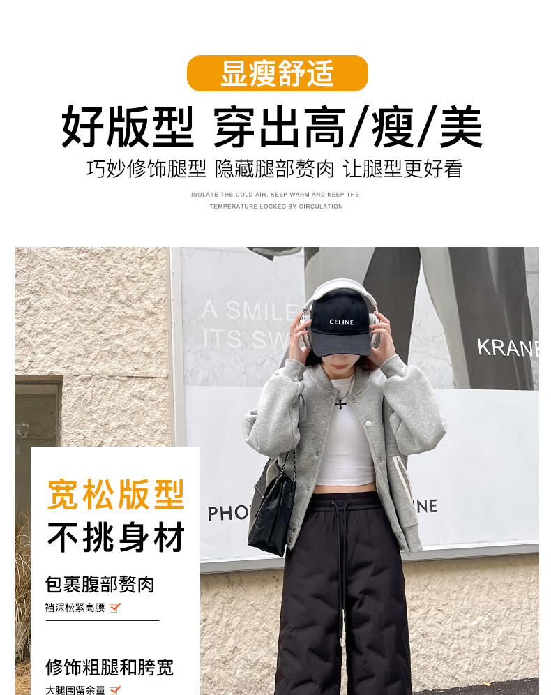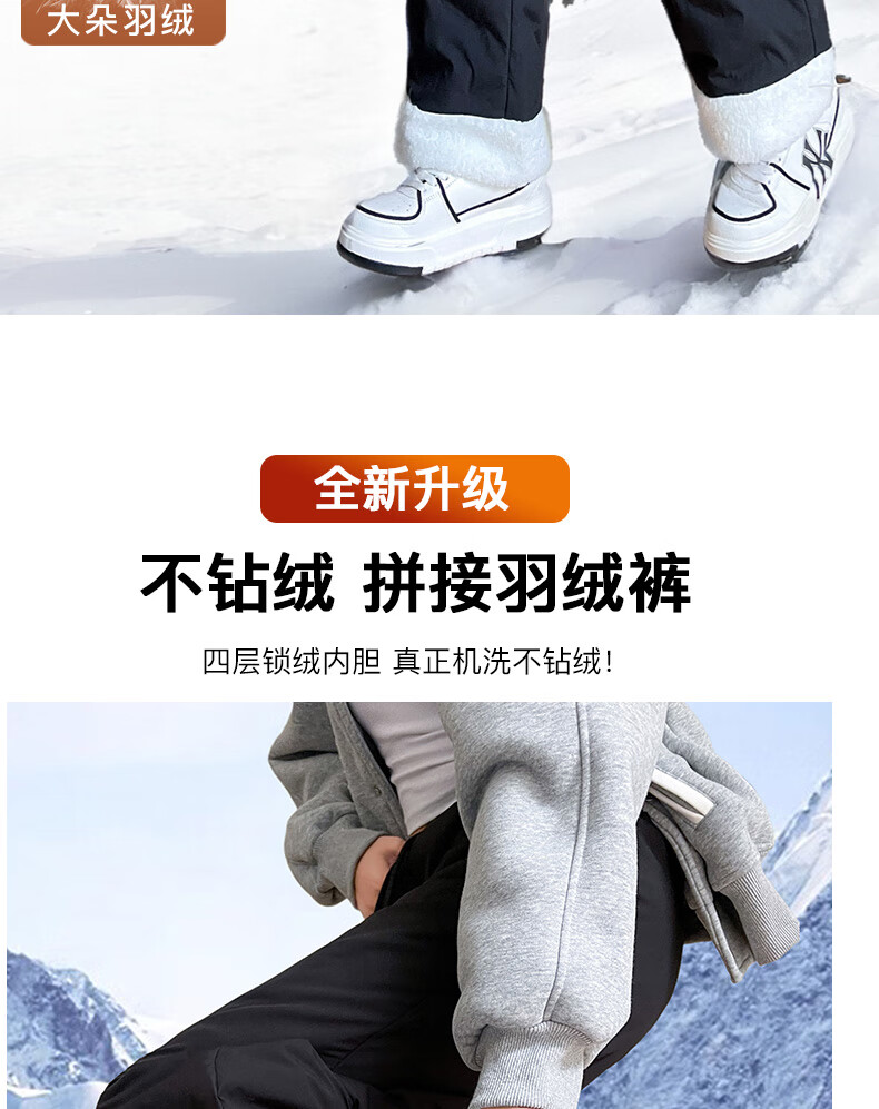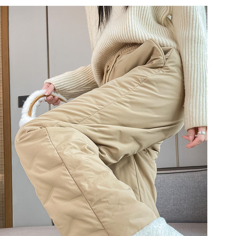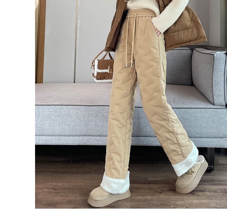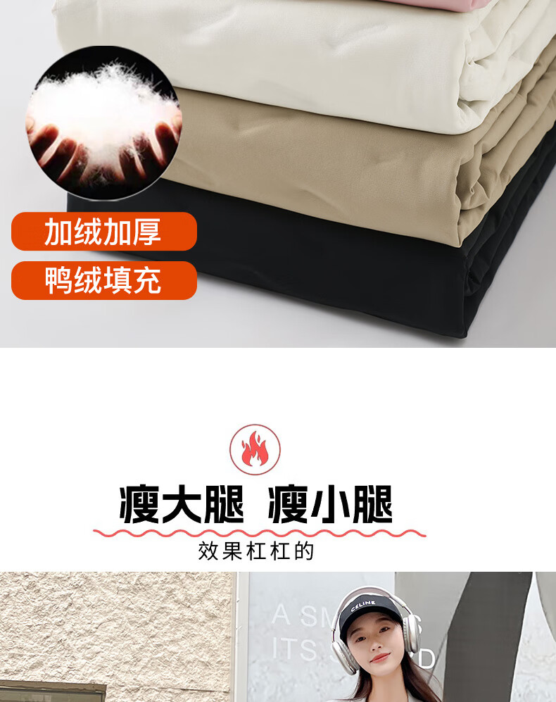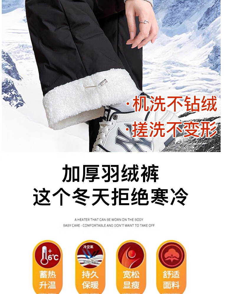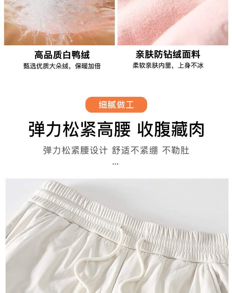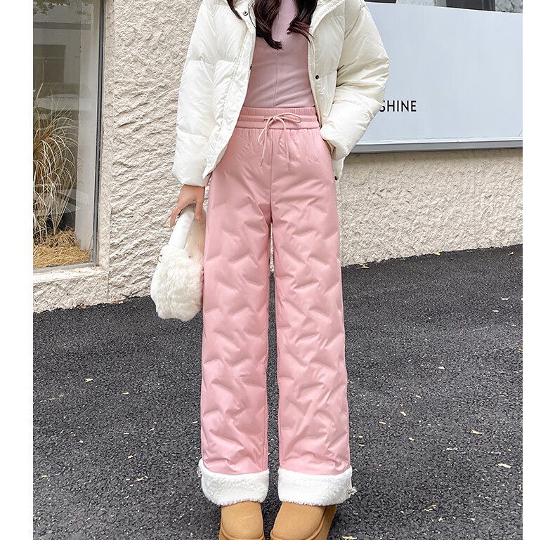 RLAS white duck down straight down pants for women's outer wear in winter 2026 new high-waisted cold-proof lamb wool spliced ​​ski cotton pants black classic versatile XL 116-125Jin Jin equals 0.5 kg