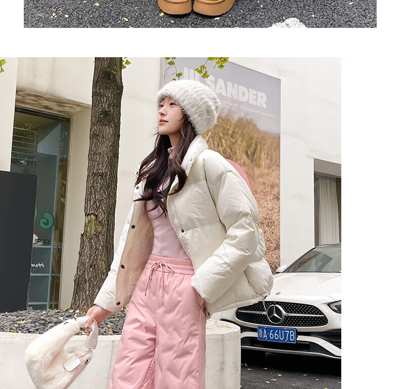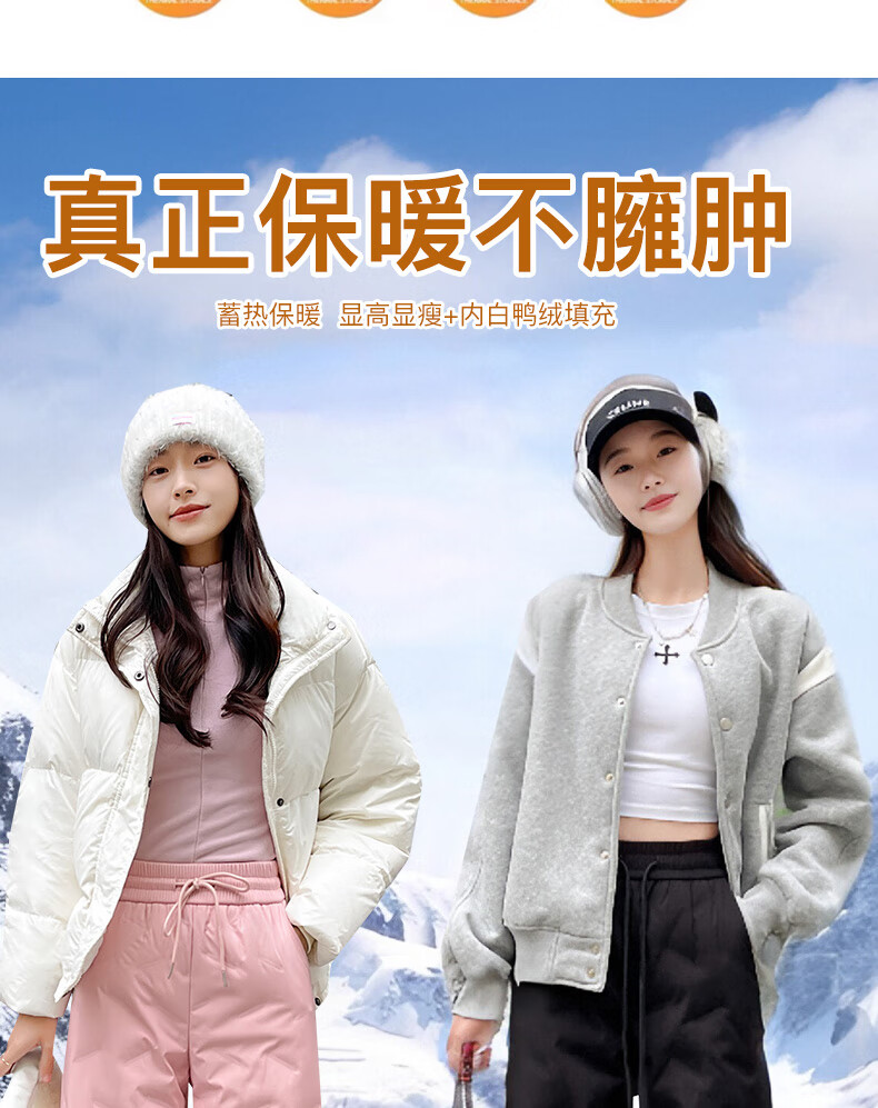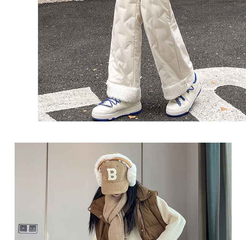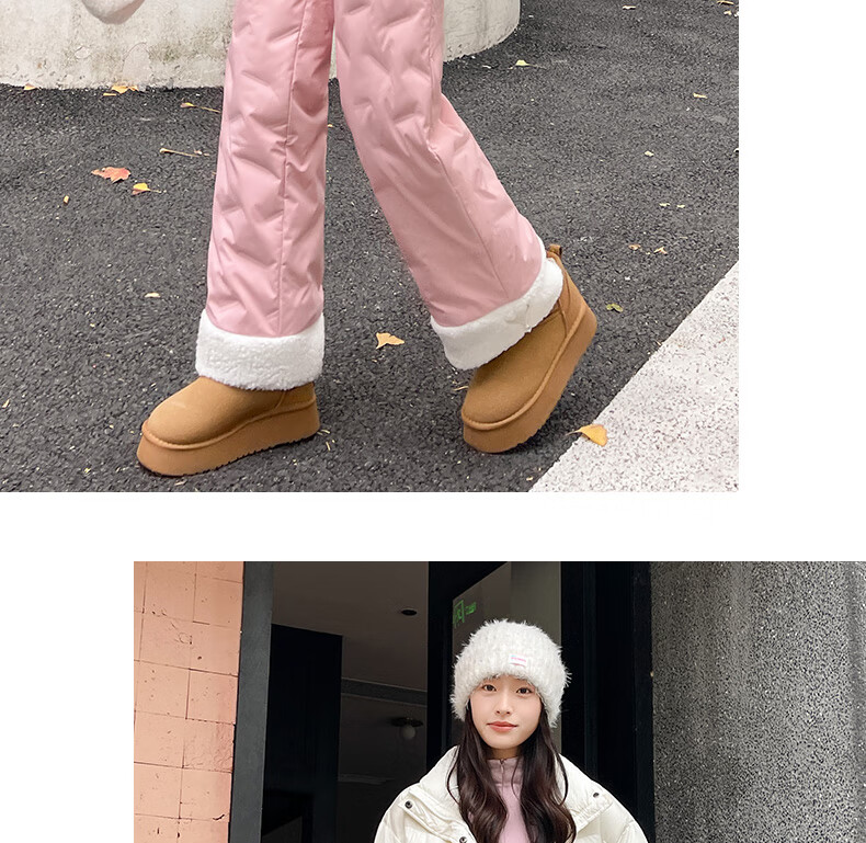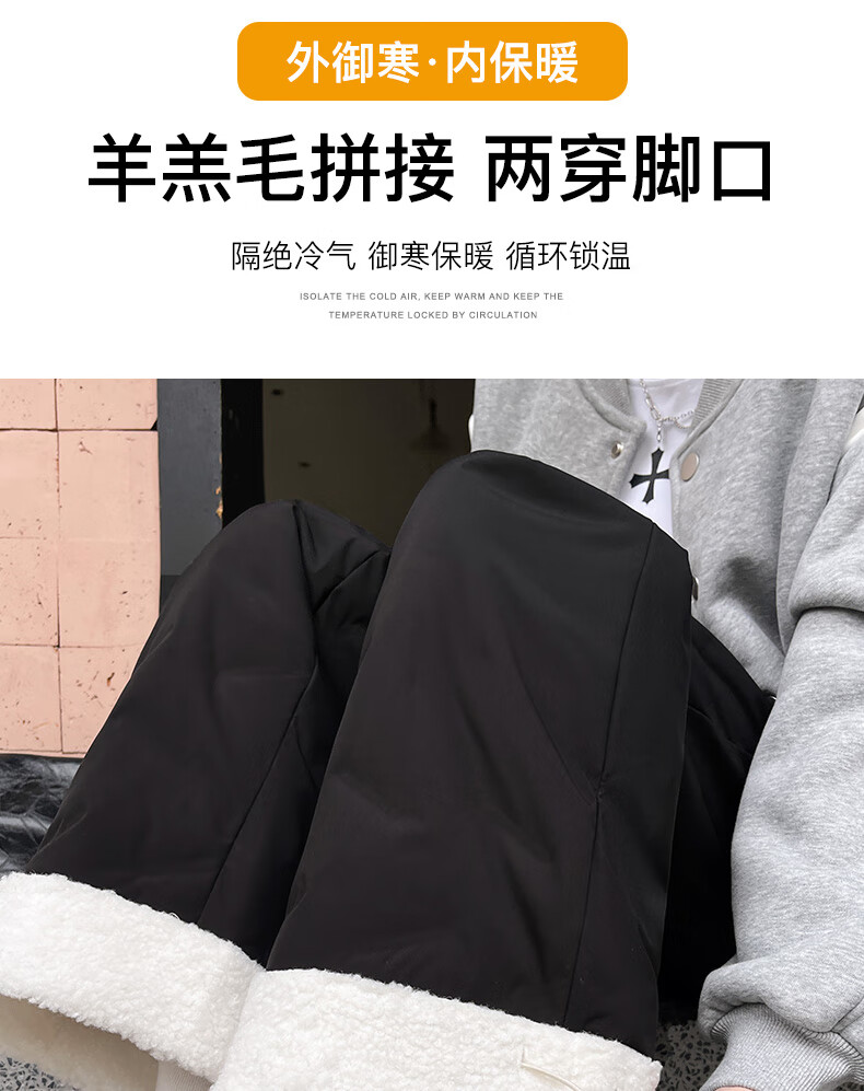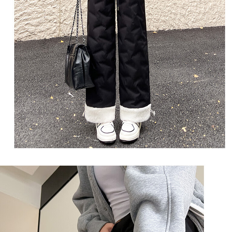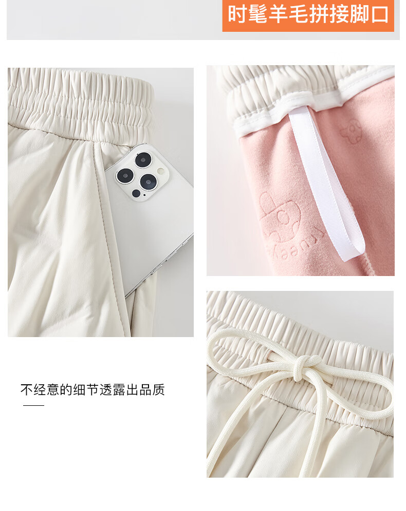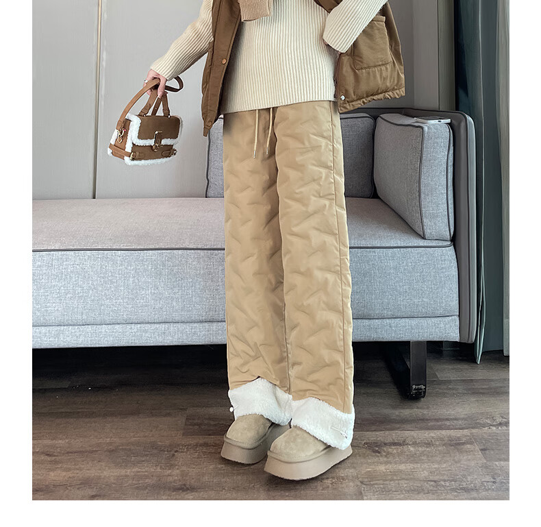 RLAS white duck down straight down pants for women's outer wear in winter 2026 new high-waisted cold-proof lamb wool spliced ​​ski cotton pants black classic versatile XL 116-125Jin Jin equals 0.5 kg