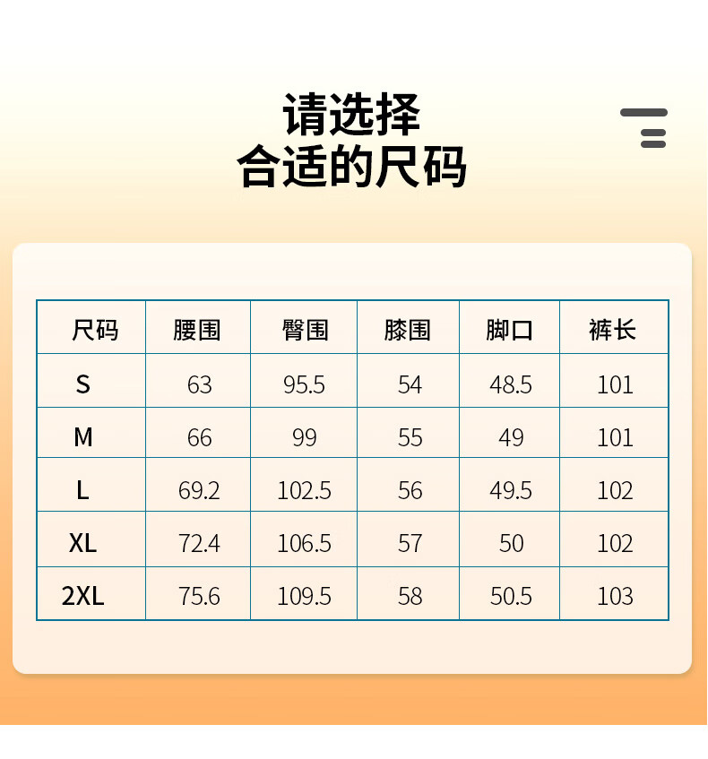 Outseam (cm) 99 cm 101.5 cm 104 cm 106.5 cm 109 cm