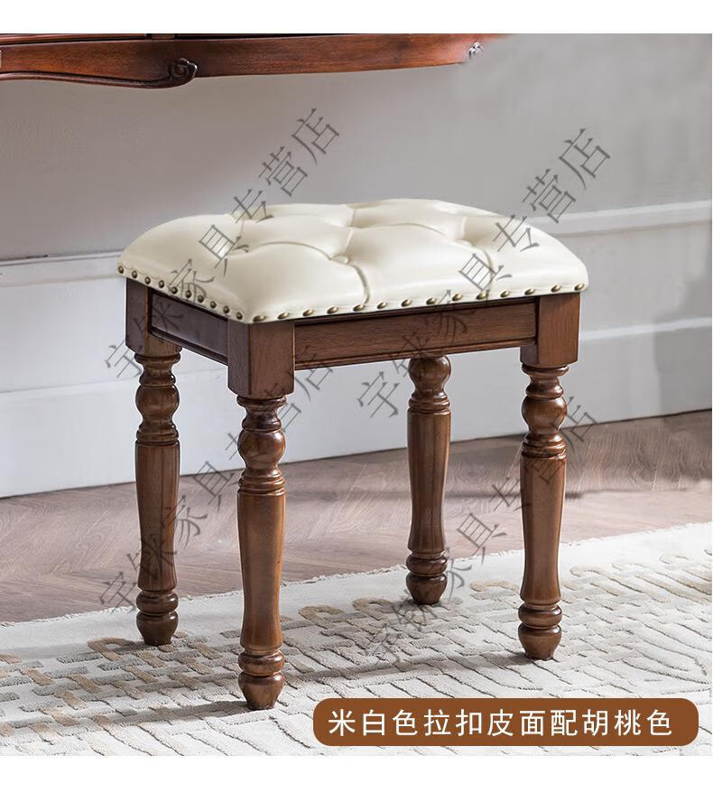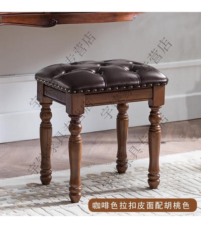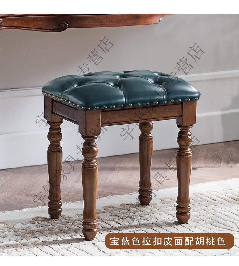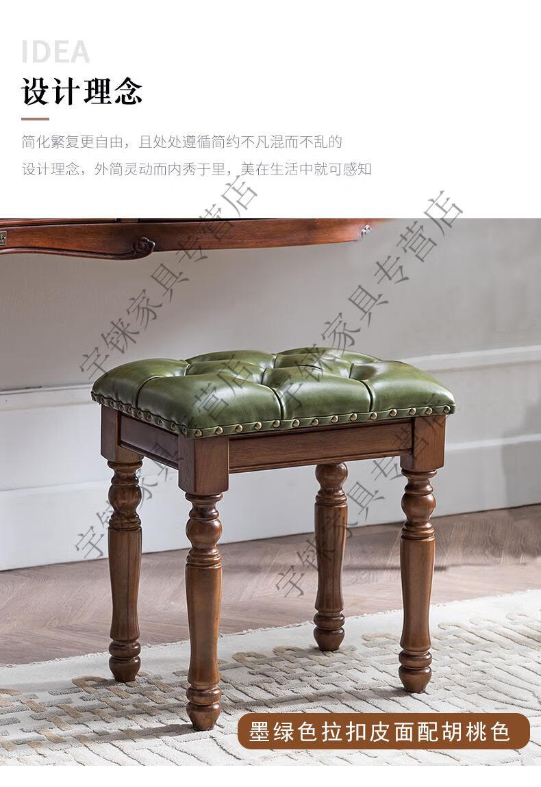 Shantou Lincun Round Stool Soft Covered American Makeup Stool Dressing Table Stool Manicure Stool European Solid Wood Modern Simple Bedroom D2 Model Walnut Green Leather Pull-Buckle Style