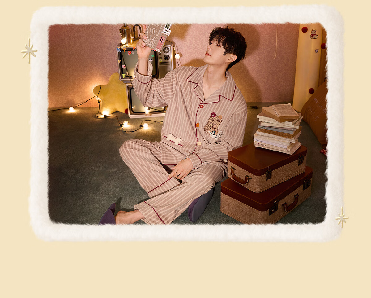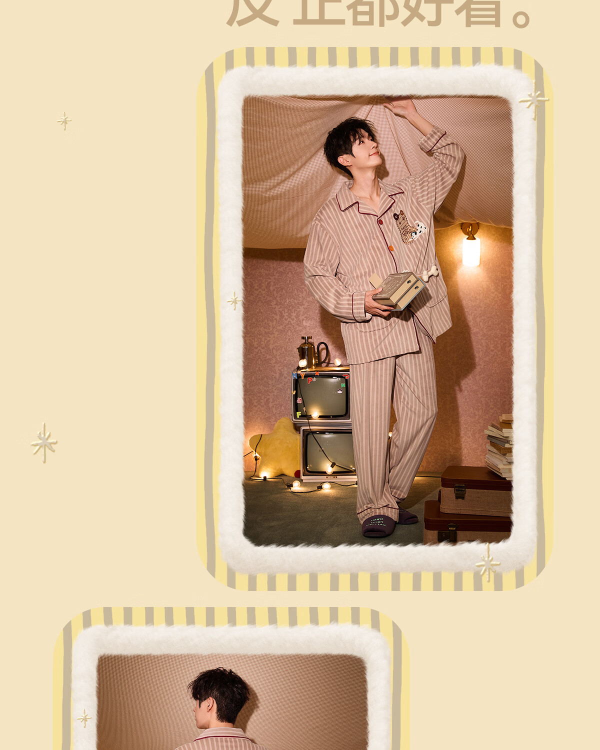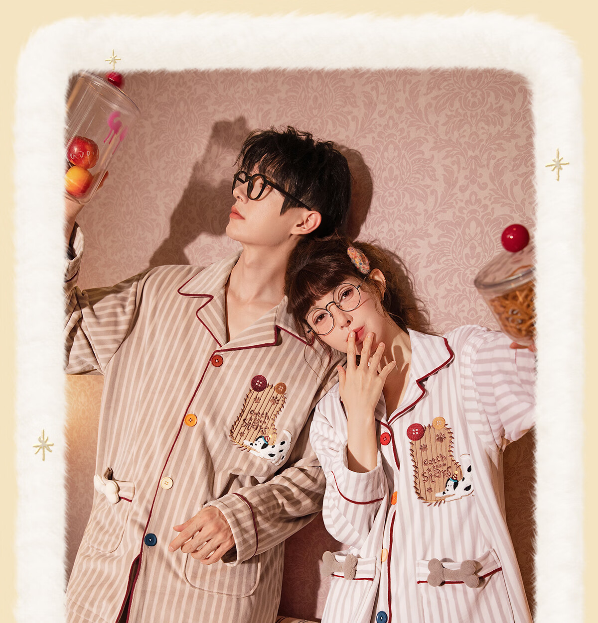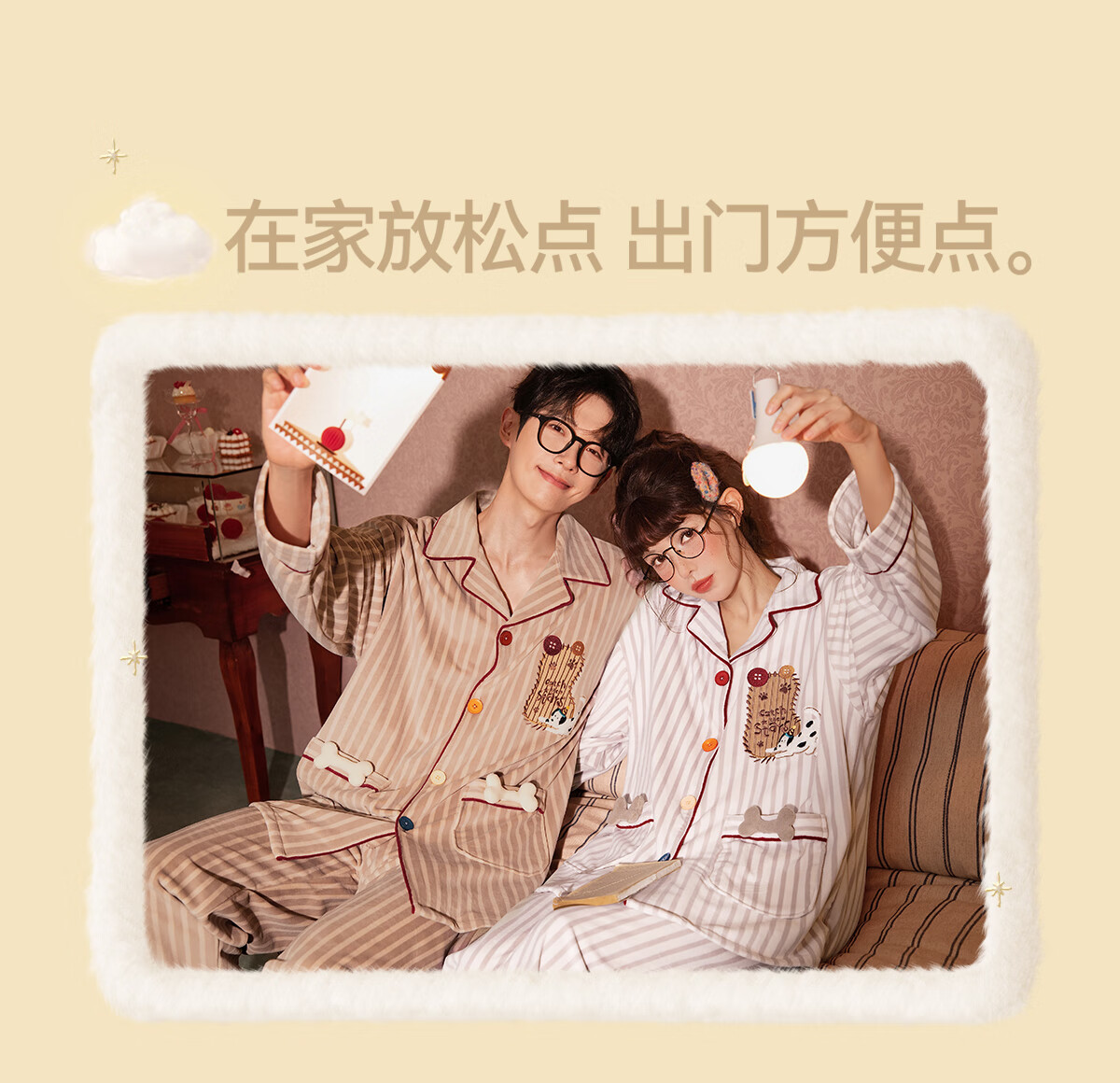 Gongdie Thermal Storage Type New Apple Puppy Autumn and Winter Couple Pajamas Women's Thickened Island Velvet Cartoon Home Clothes Men's Apple Puppy Warm Velvet Suit Men's XL (Recommended 120-140Jin Jin equals 0.5 kg)