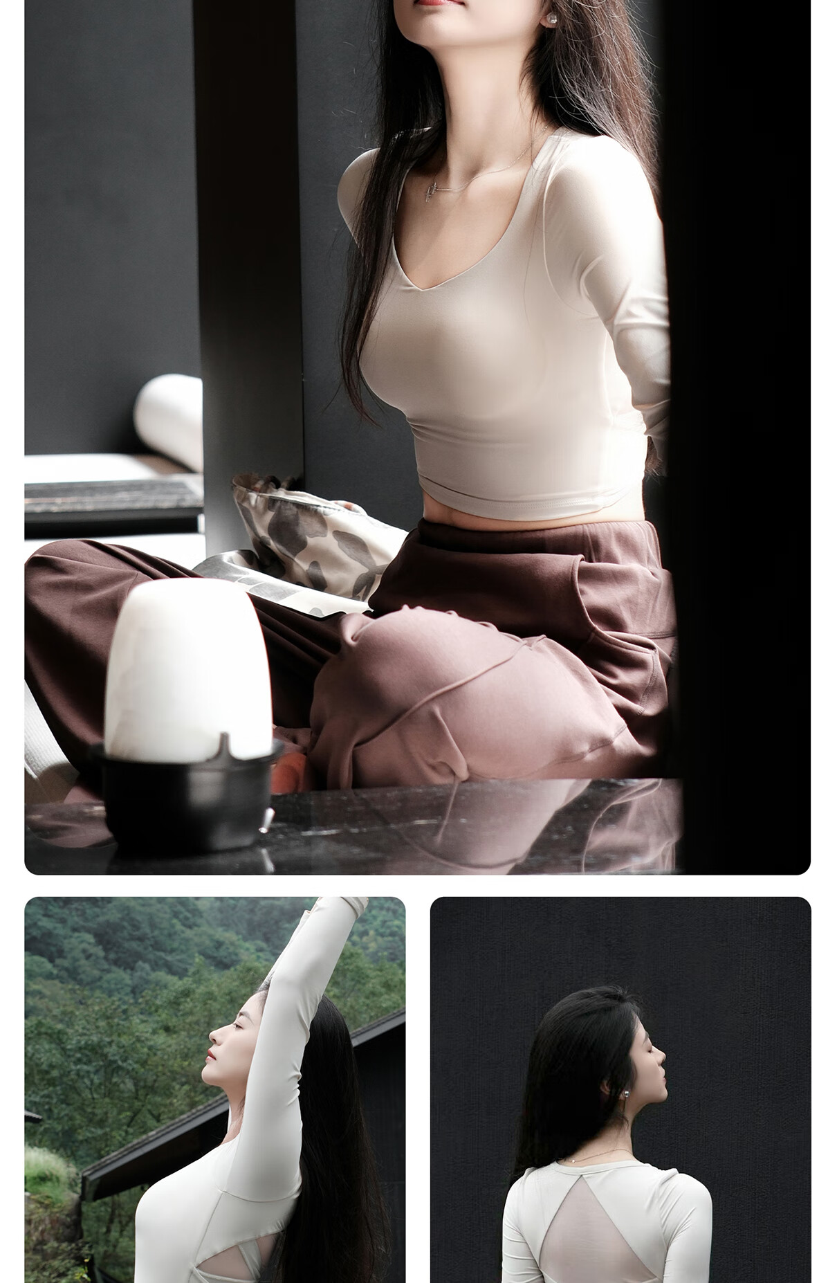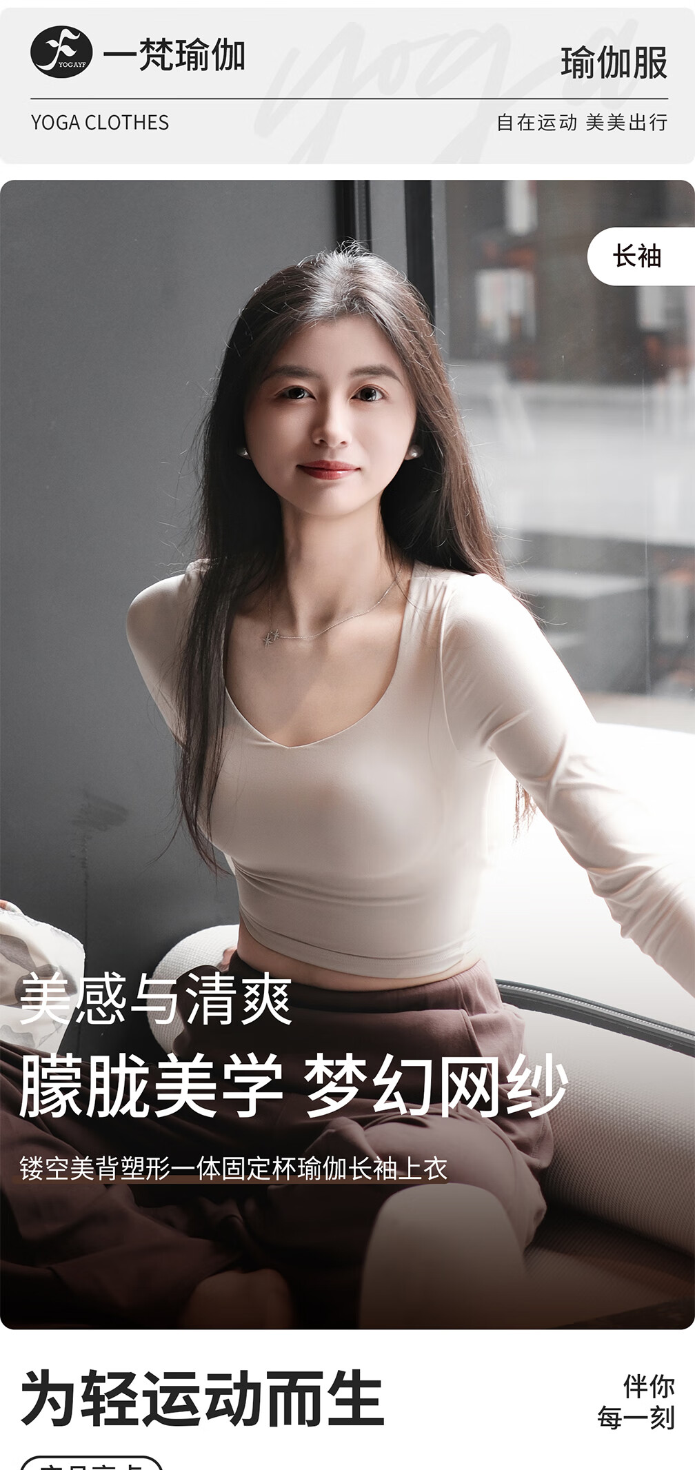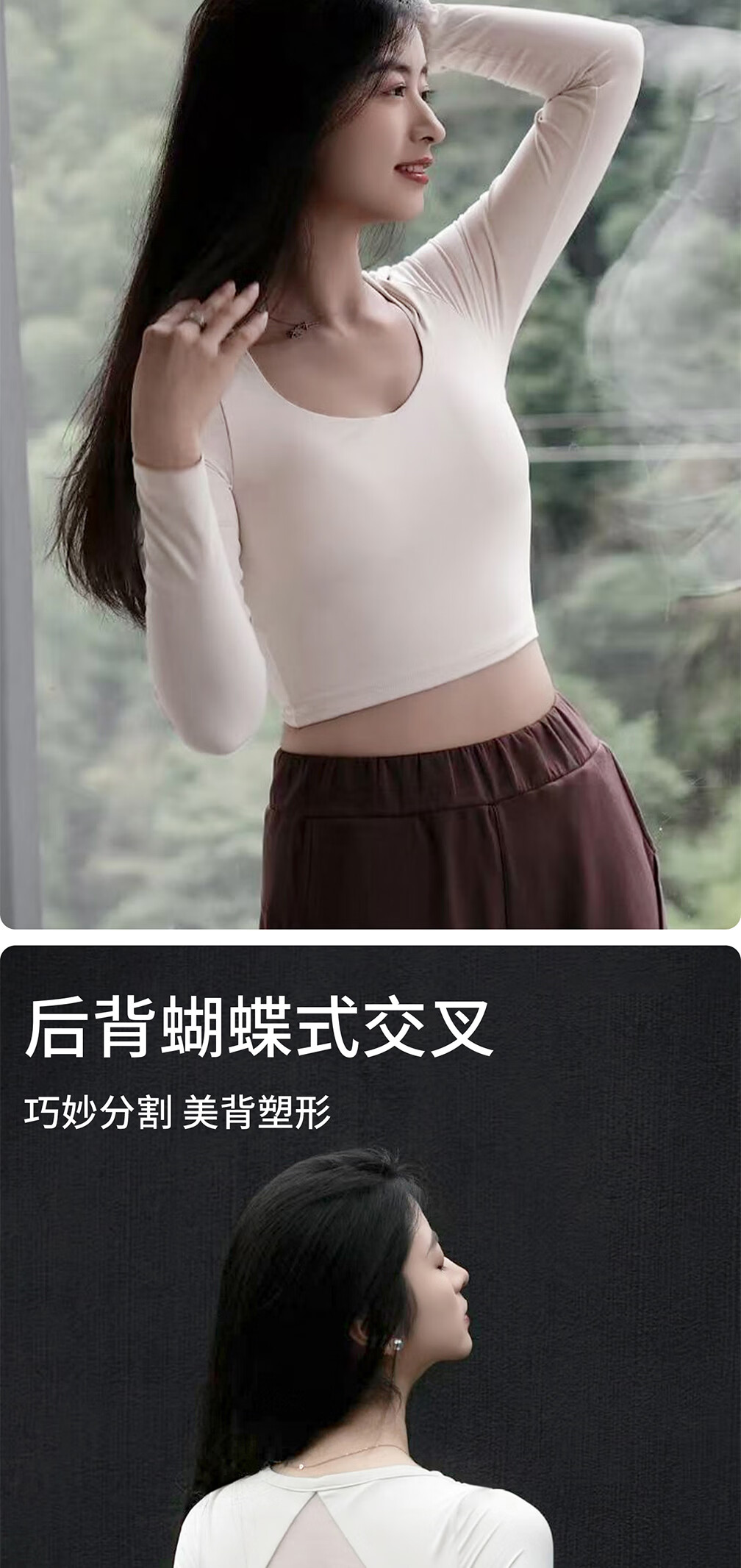 Yifan Yoga Wear One-piece Fixed Cup Hollow Beautiful Back Long Sleeve T-Shirt Autumn and Winter Sports Top Pilates Training Wear Milky White S