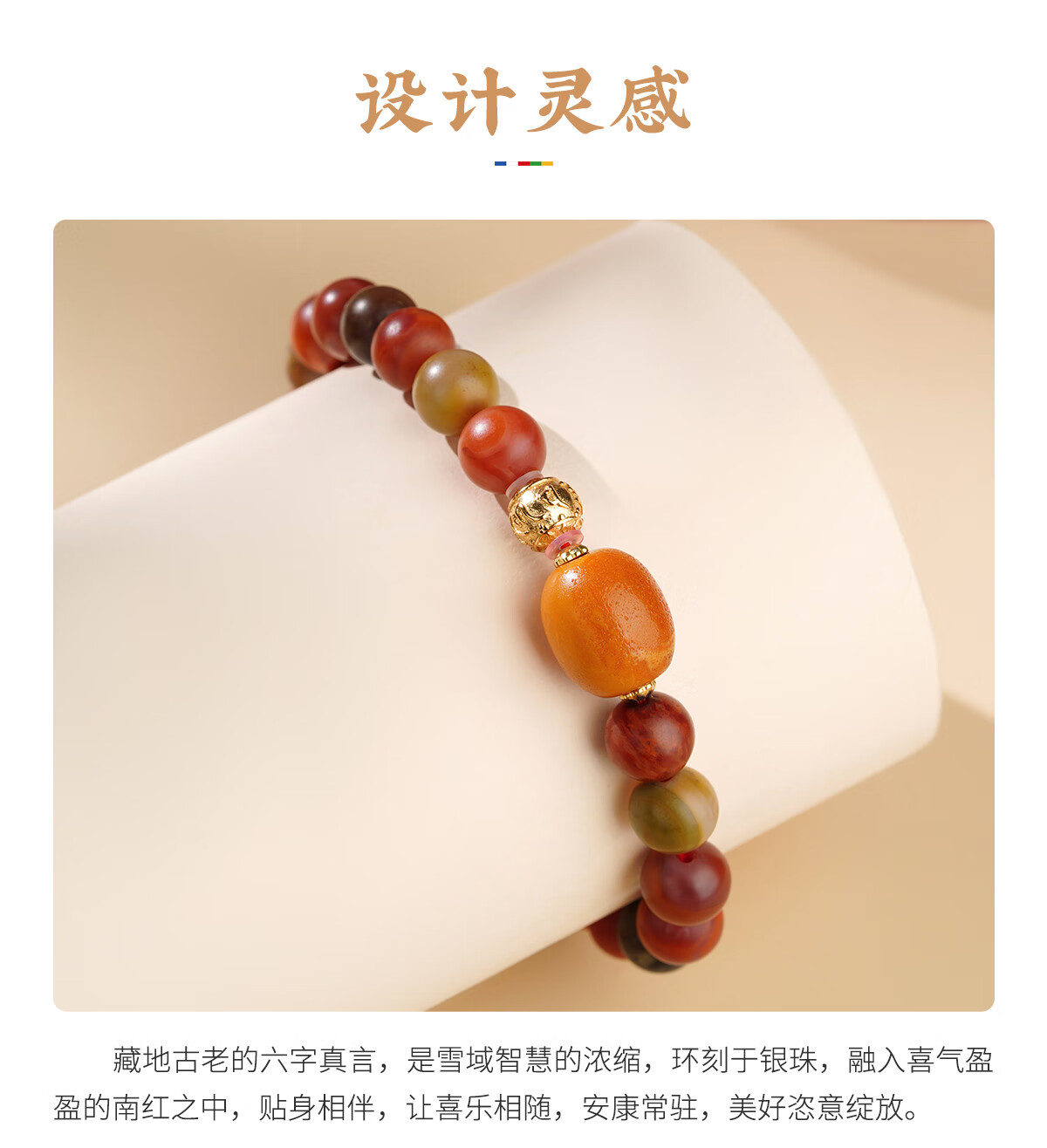 Potala Palace Southern Red Beeswax Bracelet 925 Silver Six-Character Mantra Transfer Bead Bracelet for Men and Women as a Gift for Your Boyfriend’s Year of Life Southern Red Beeswax Bracelet