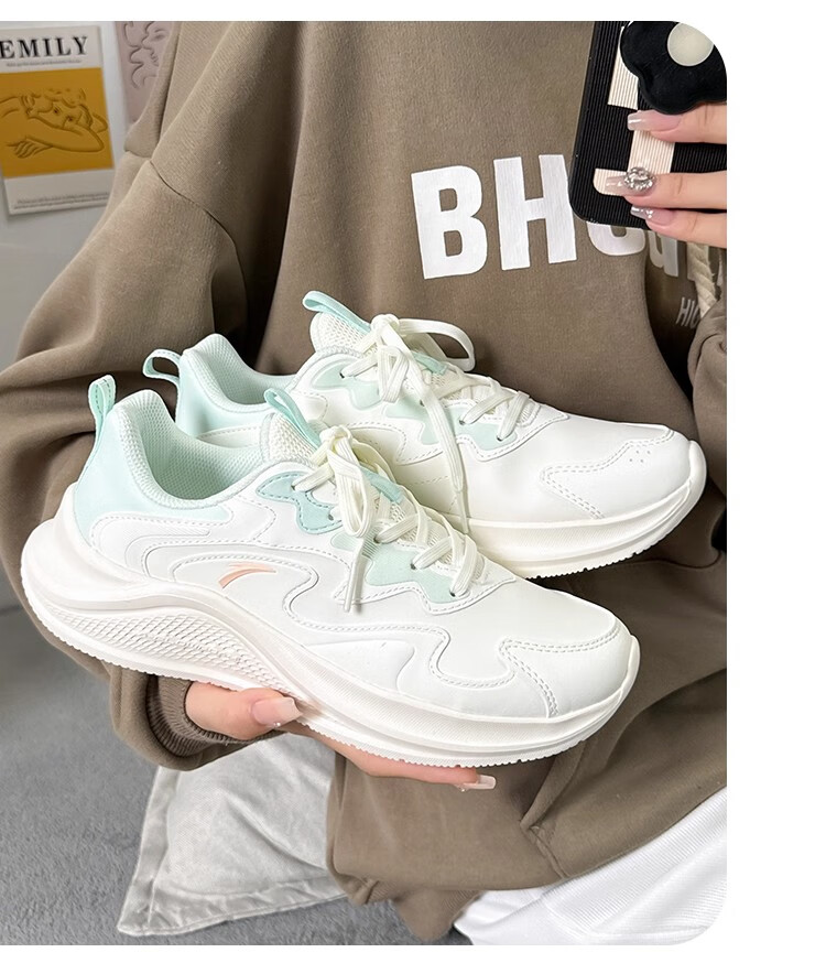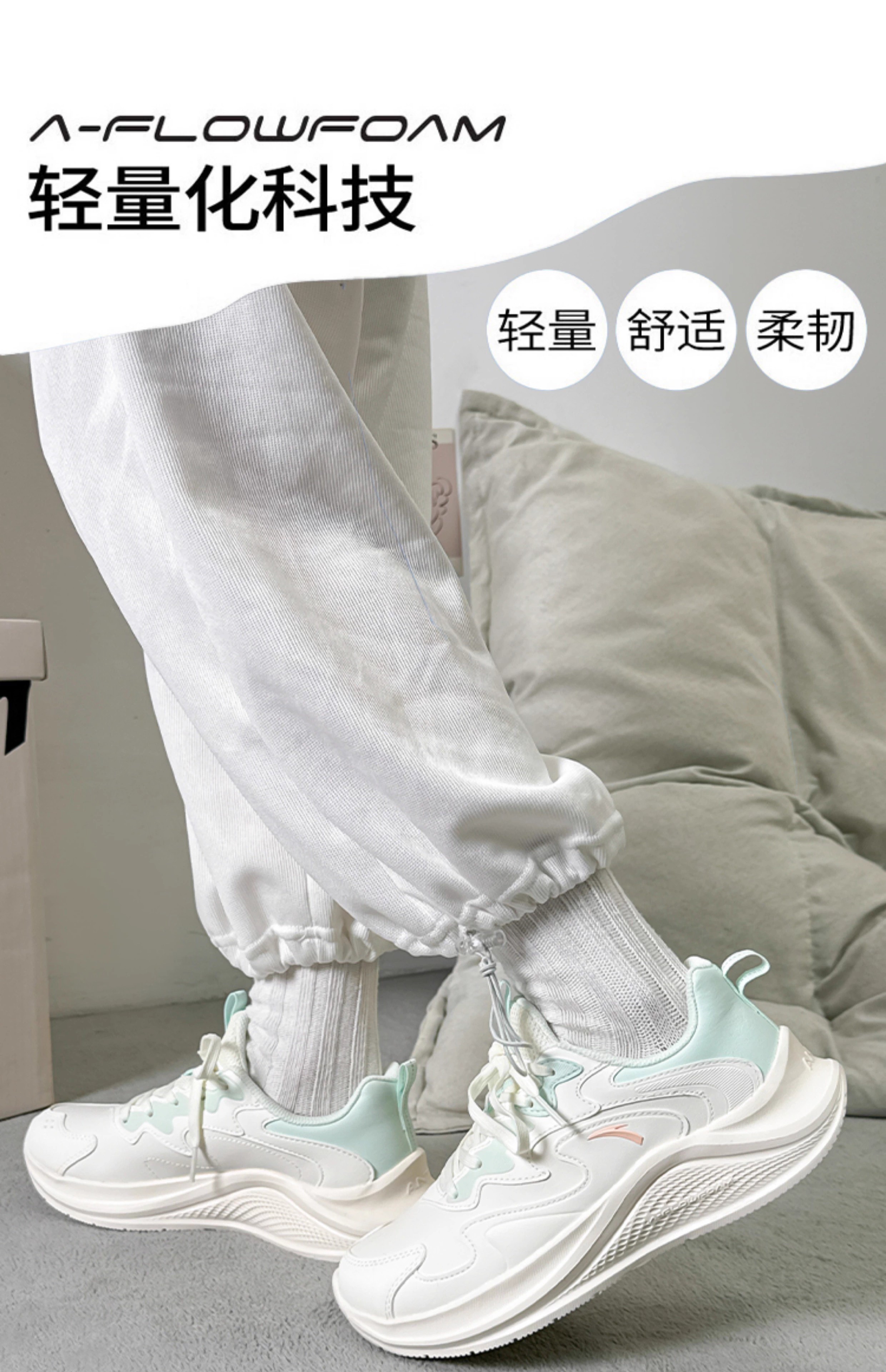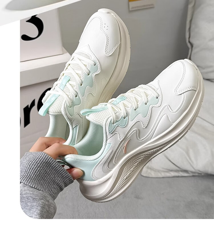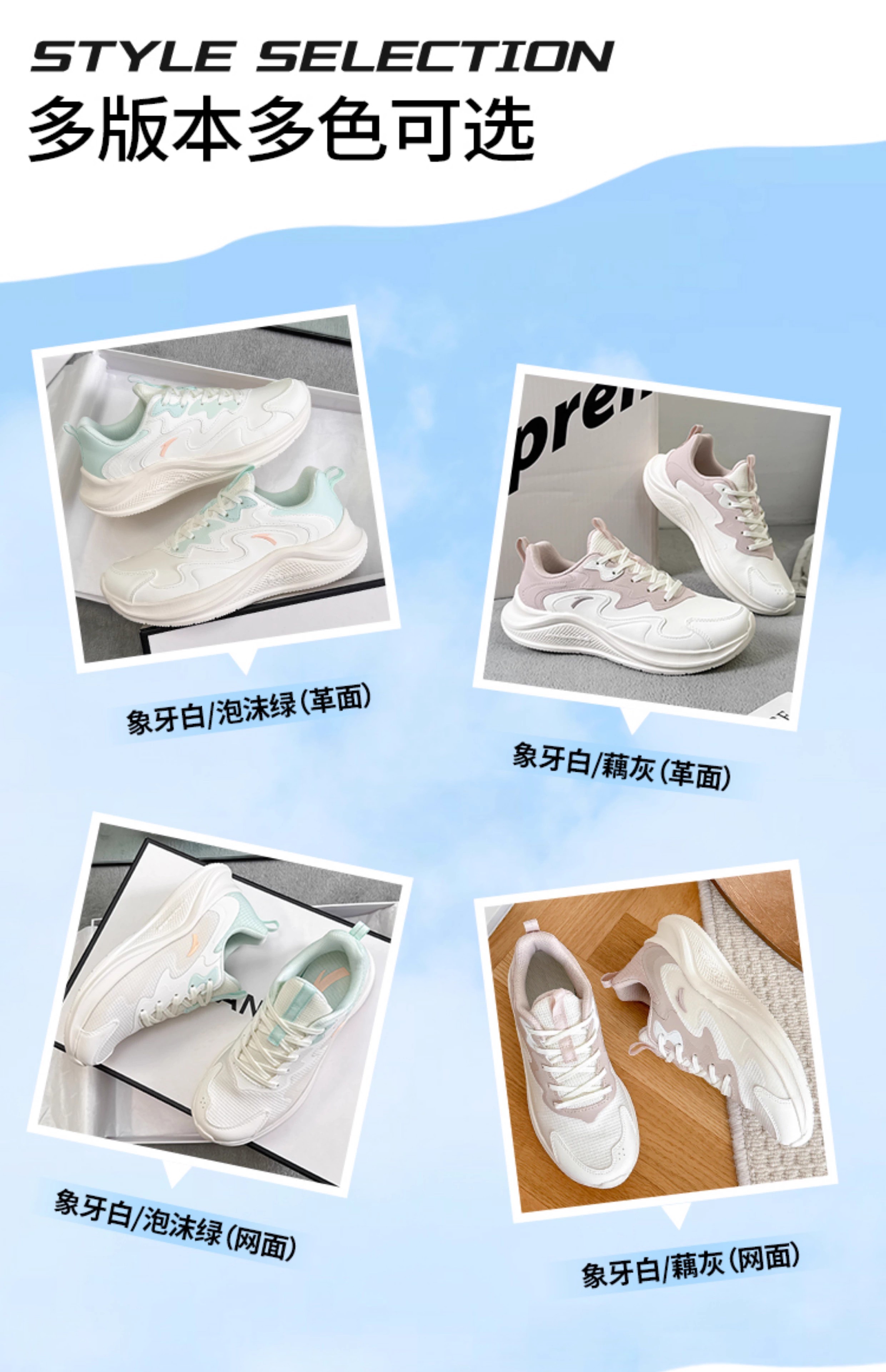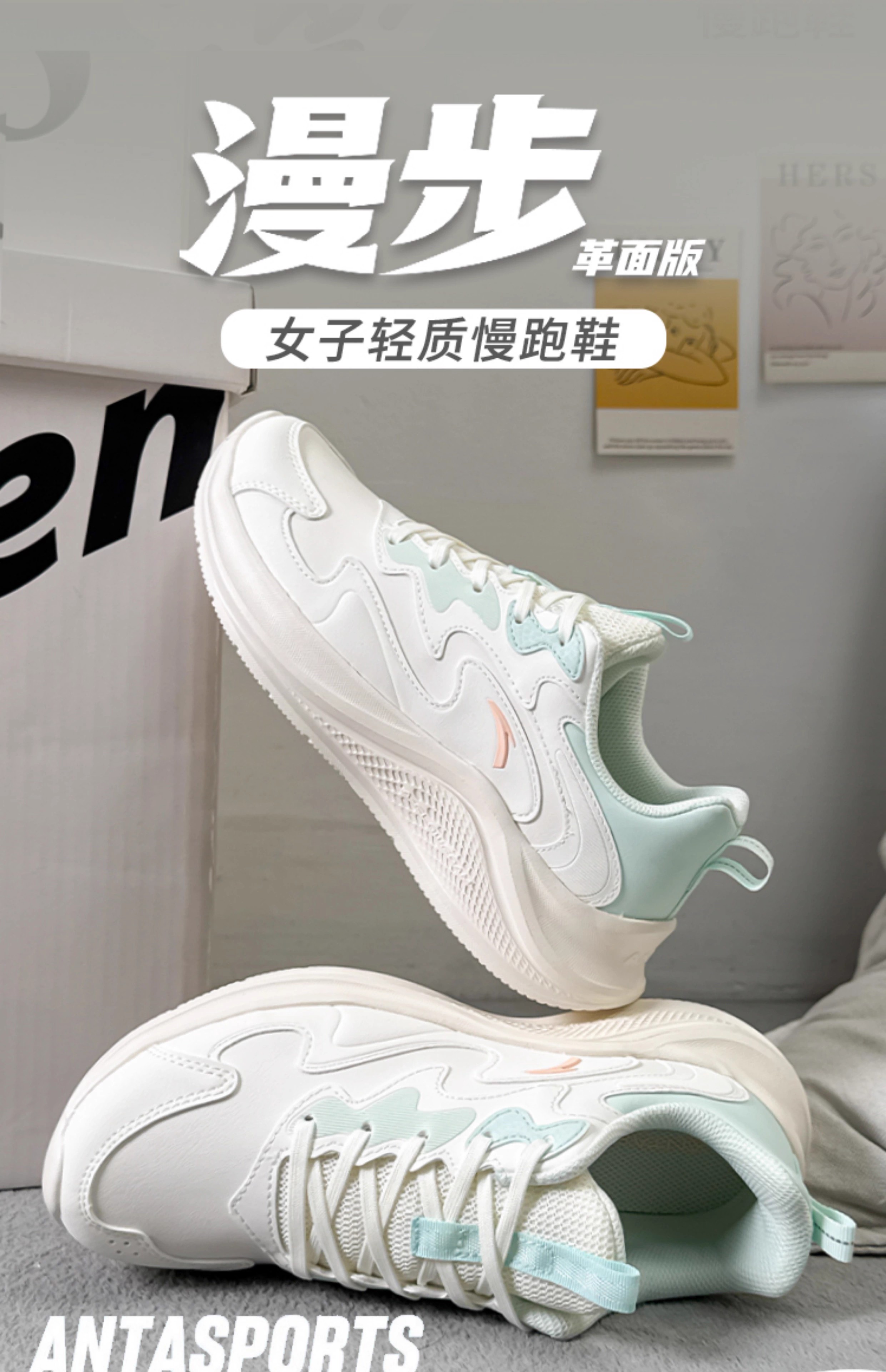 ANTA Walk Leather Running Shoes Women's Winter New Lightweight Anti-Slip Sports Shoes Casual Mint Green Women's Shoes Running Shoes Walk Ivory White/Lotus Root Gray 38 Ready in Stock Quick Delivery