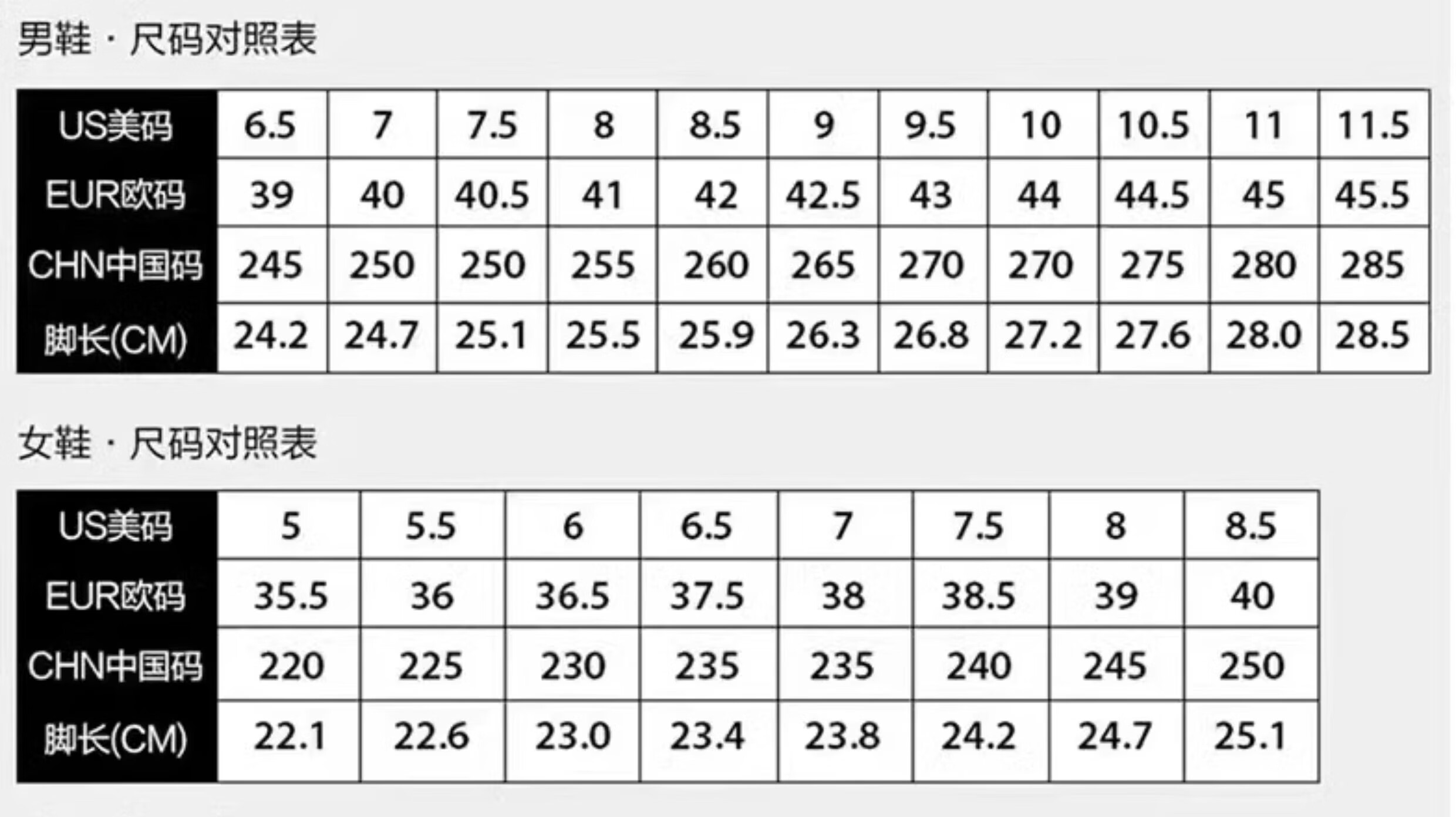 China (cm) 36 - 37 38 - 39 40 - 42 43 - 44 45 - 47