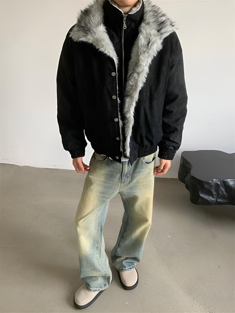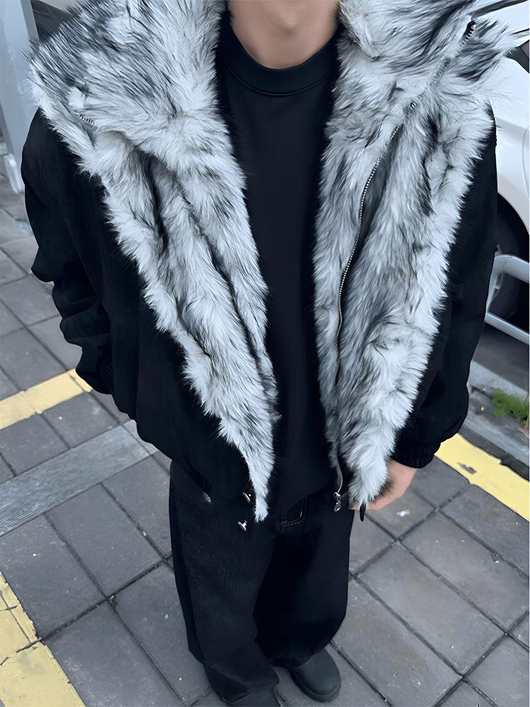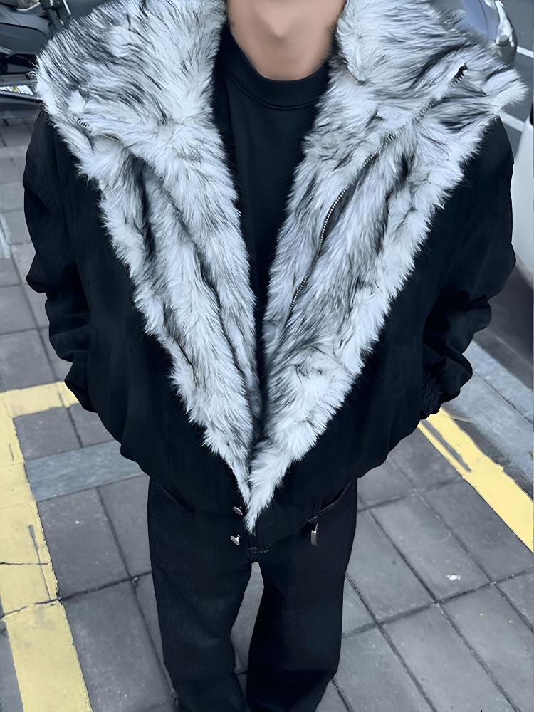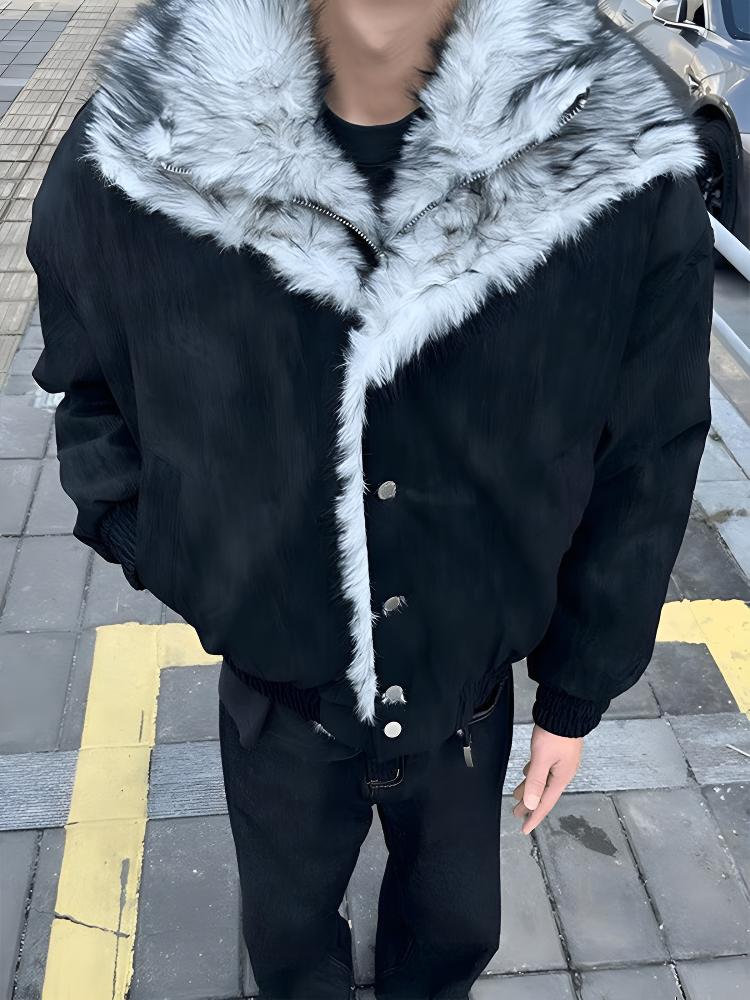 Luyal American fake two-piece Wolf Throne mountain carving cotton jacket for men in winter, warm and thickened, temperamental and warm, high-grade cotton jacket, black XL, it is recommended to take one size larger