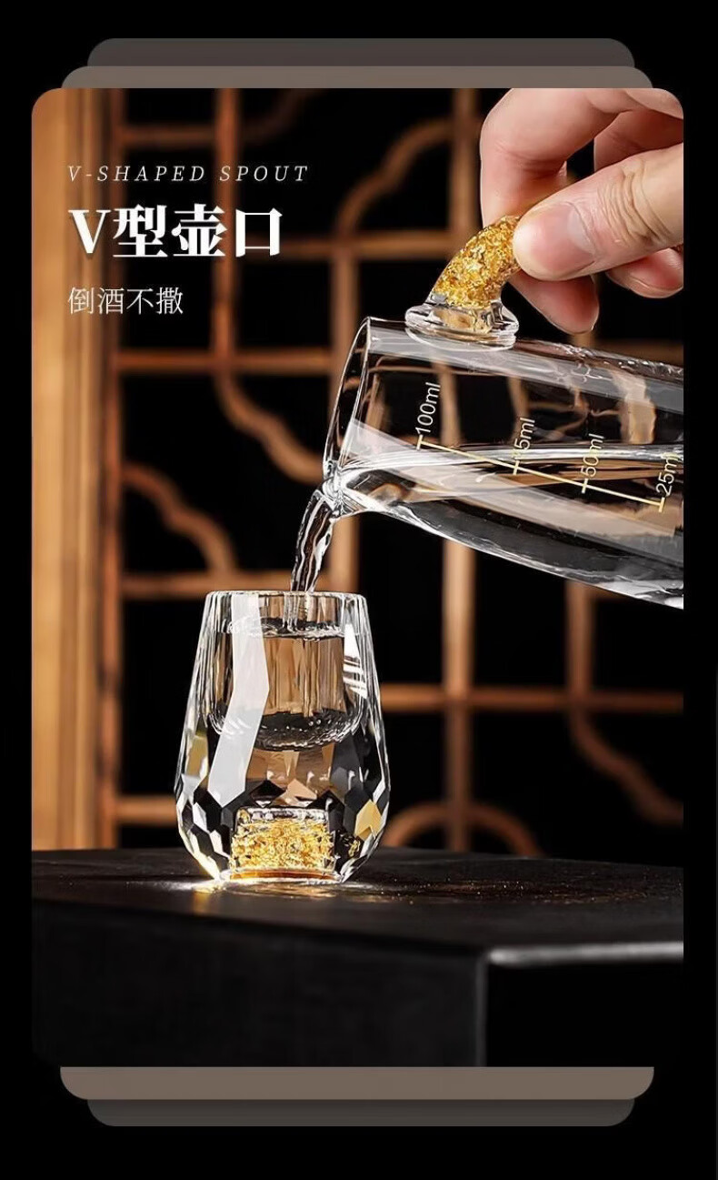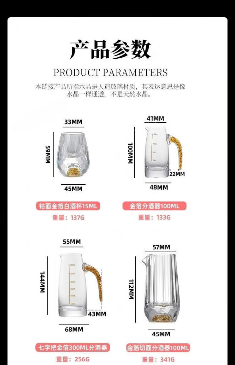 AILUKI Japanese high-end gold foil crystal white wine cup, light luxury orange leather suitcase set, high-end wine divider and wine set, gift box, orange large leather suitcase, gold foil bullet cup
