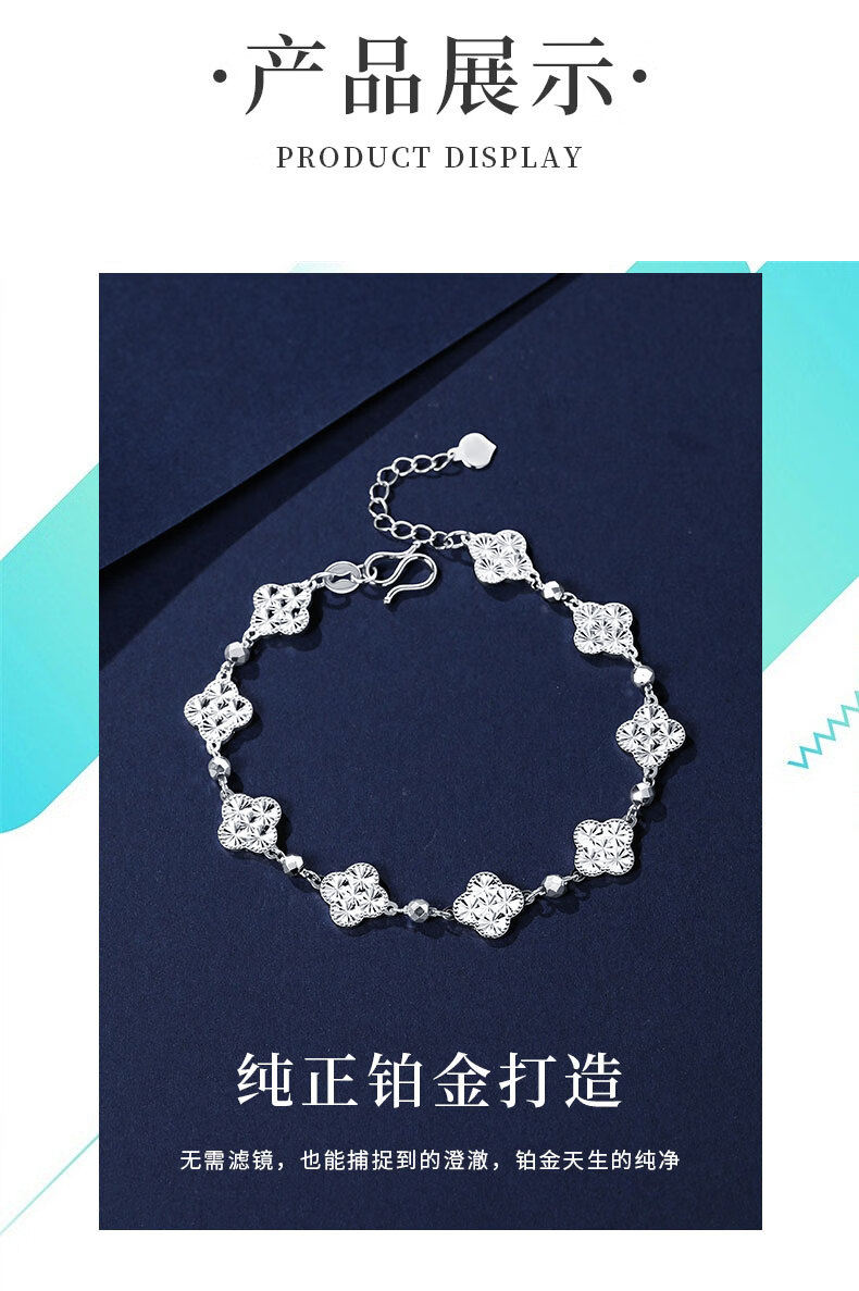Duozun pt950 genuine platinum bracelet for women platinum starry four-leaf clover bracelet new double-sided wearable hand jewelry for gift giving 9.91g/length 16-19cm adjustable