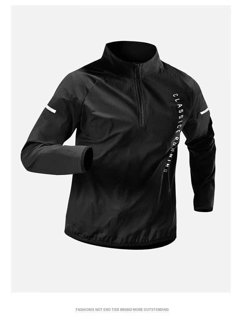 Bmai running sports jacket men's windproof quick-drying cycling jersey rainproof windbreaker thin jacket spring waterproof training top black half zipper windproof quick-drying M 100-120Jin Jin equals 0.5 kg