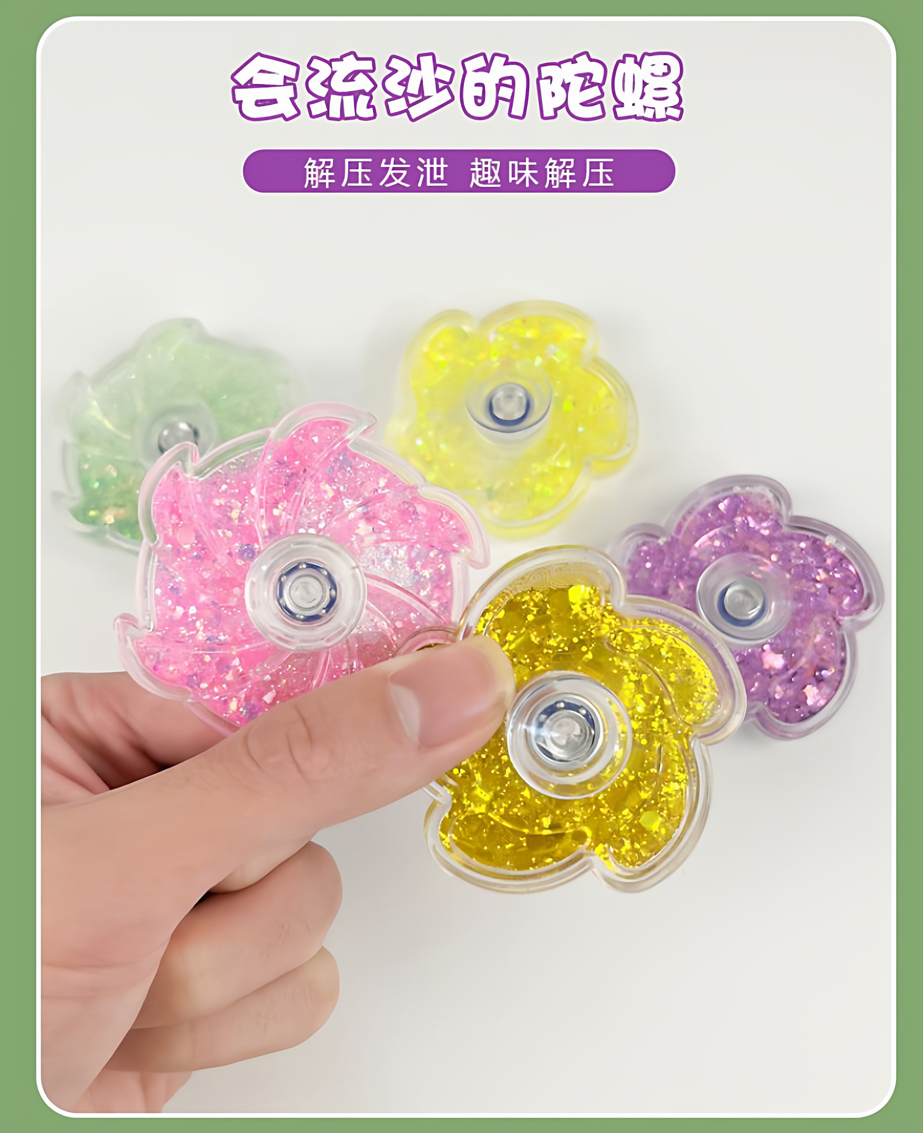 Zhewei's creative quicksand petals Guka colorful quicksand top educational high-speed rotating children's stress relief toy fingertip spinner colorful quicksand top 2 pack random color