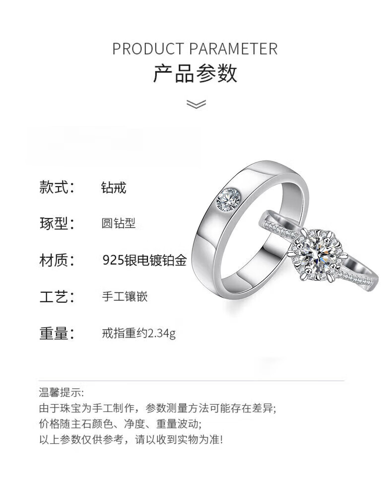 DR couple rings for men and women, moissanite diamond rings, wedding, proposal, engagement, birthday gifts for boyfriend and girlfriend, diamond rings for a pair of men 30 points / women 50 points