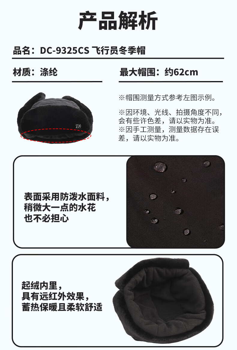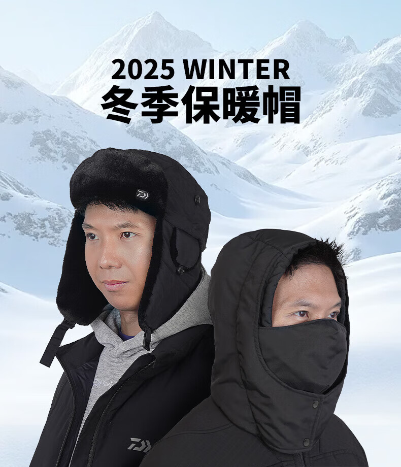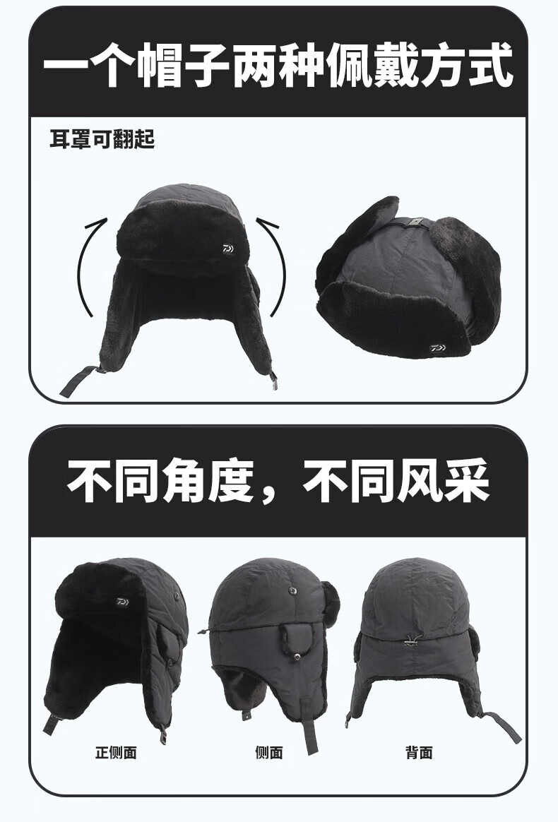 DAIWA 25 Autumn and Winter DC-9325CS Warm Ear Protection Fishing Hat Lei Feng Hat Cold Protection Flying Hat Fishing Clothing Black (One Size)