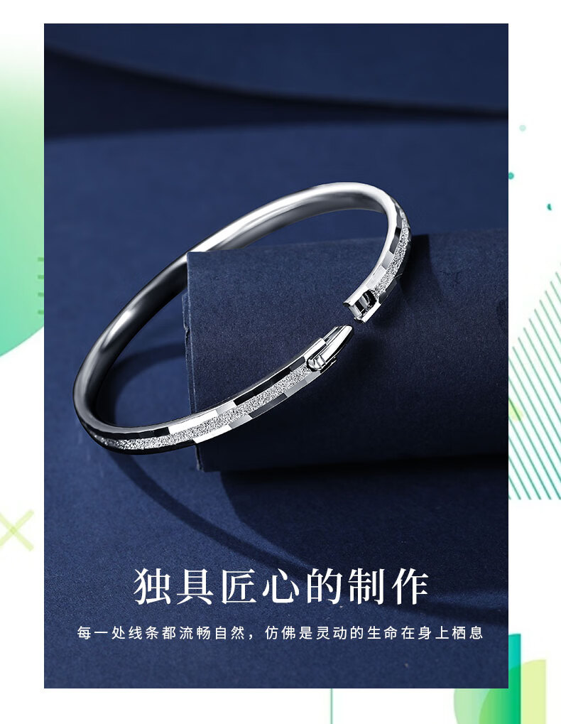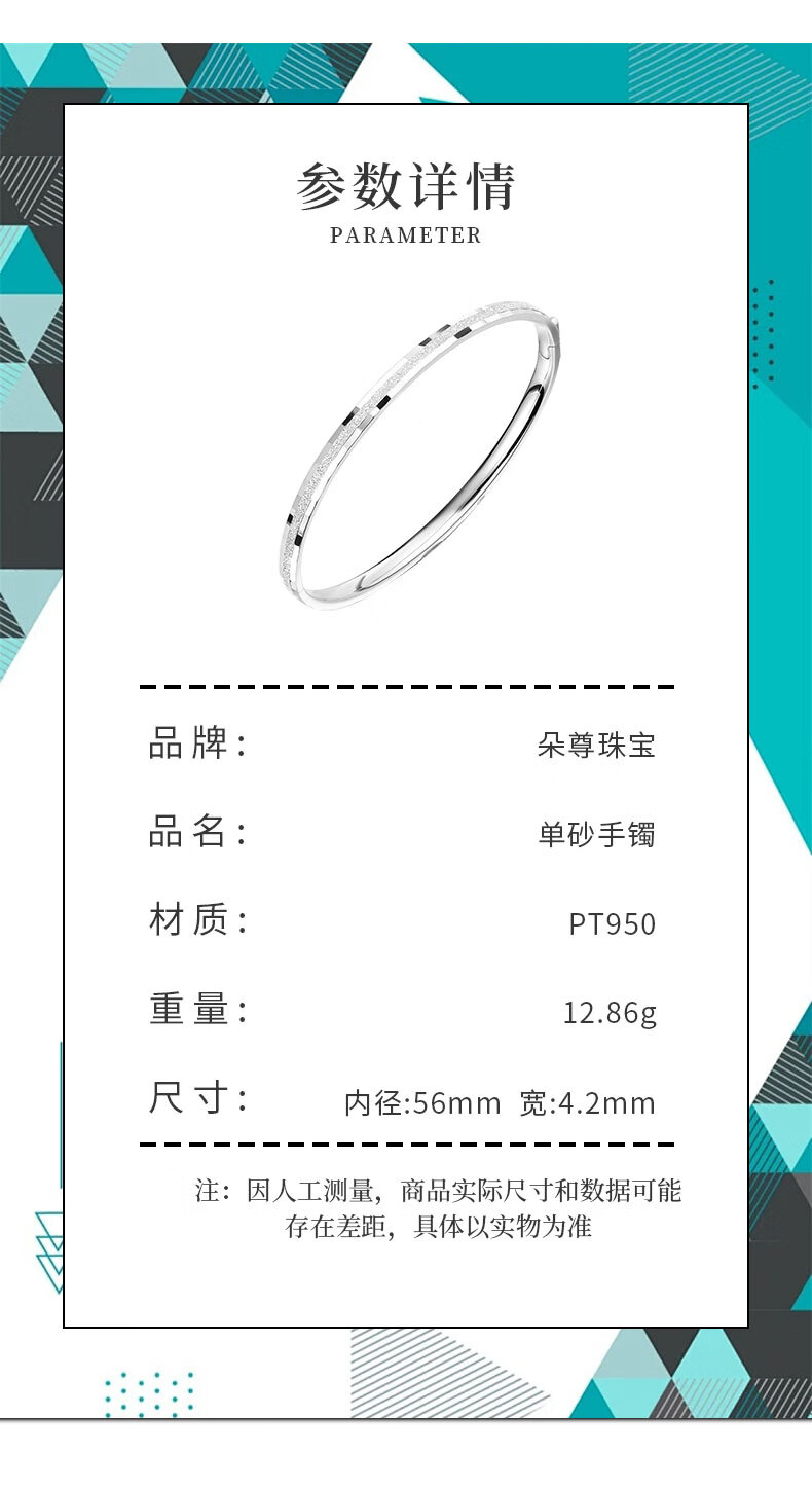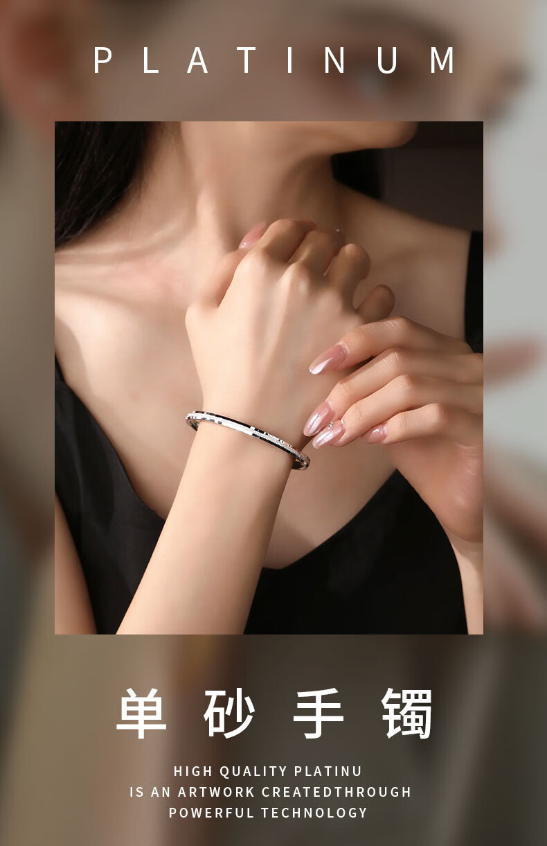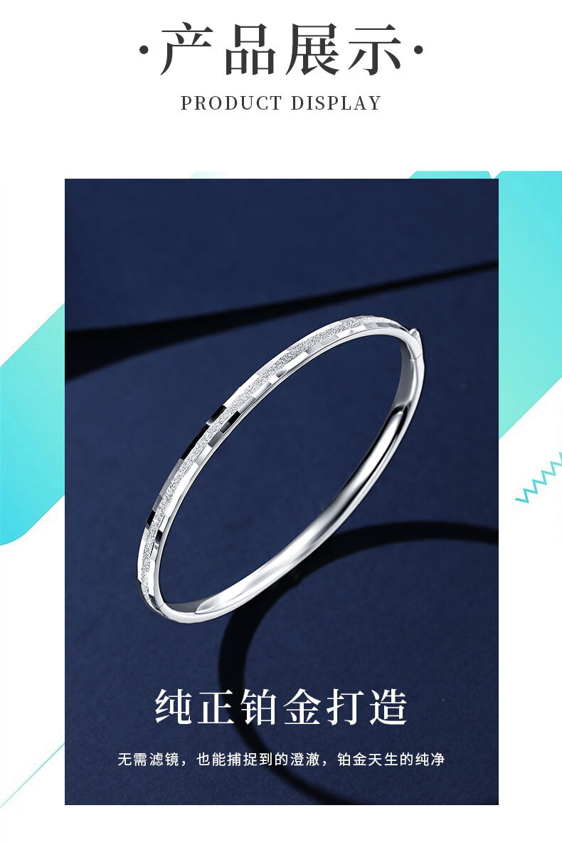 Duozun pt950 genuine platinum bracelet women's single sand bracelet platinum semi-solid concubine bracelet open new birthday gift inner diameter 52mm weight 6-7g thick about 3mm