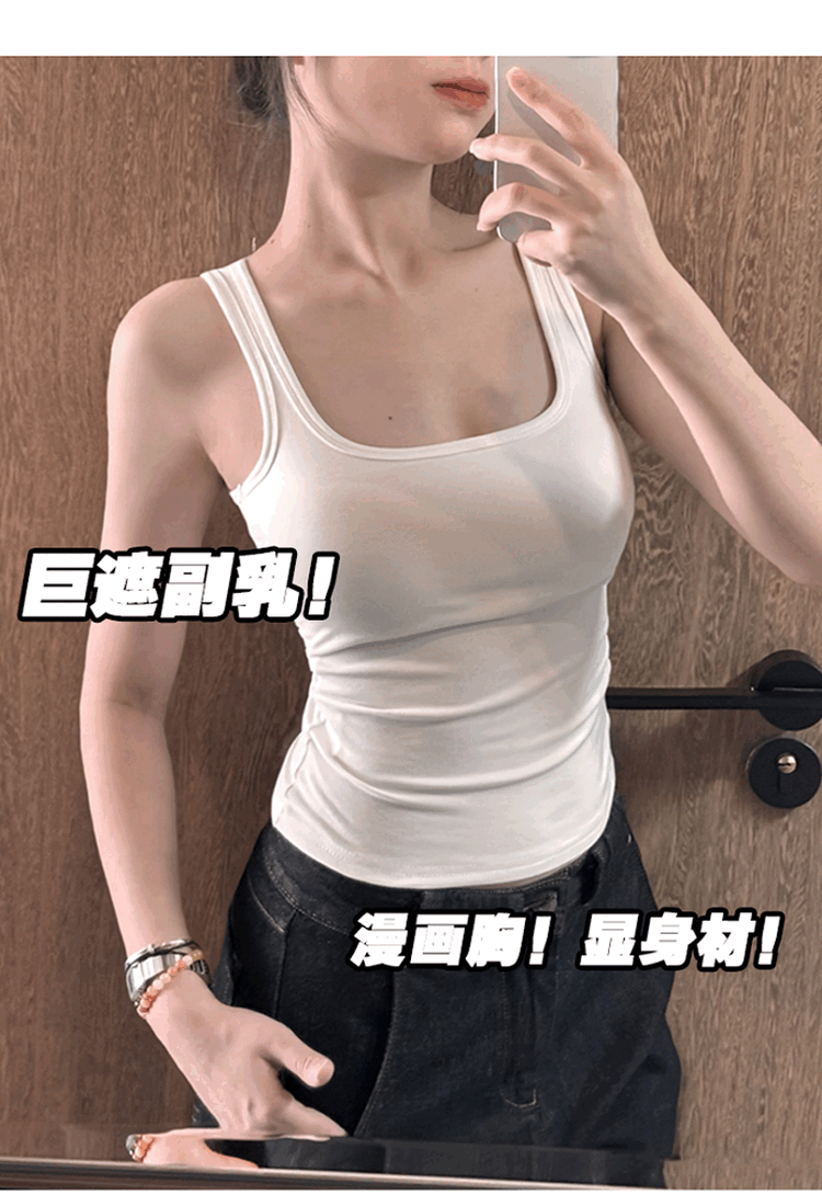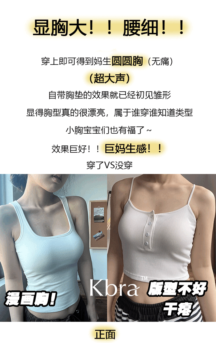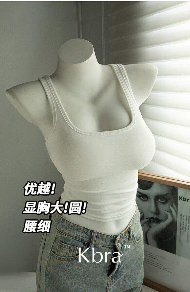 Kbra Comics Drawing Breast Expansion Vest Women's Summer Thin Slim Fit Inside and Outerwear Small Breasts Look Big with Breast Pads White Four Seasons Thin Style S Recommended 75-95Jin Jin is equal to 0.5kg