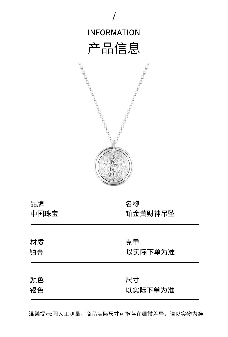 Chinese Jewelry Yellow God of Wealth Platinum Pendant for Men and Women Pt950 God of Wealth Disc Necklace Birthday Memorial Gift for Girlfriend and Wife Platinum Yellow God of Wealth Pendant + Brand Gift Box Gold Weight About 7.4g, Free S925 Silver Chain