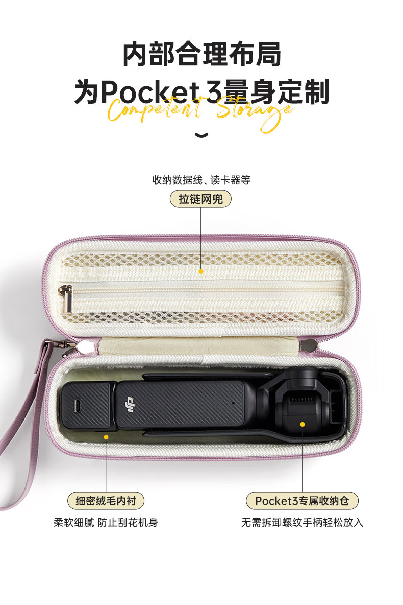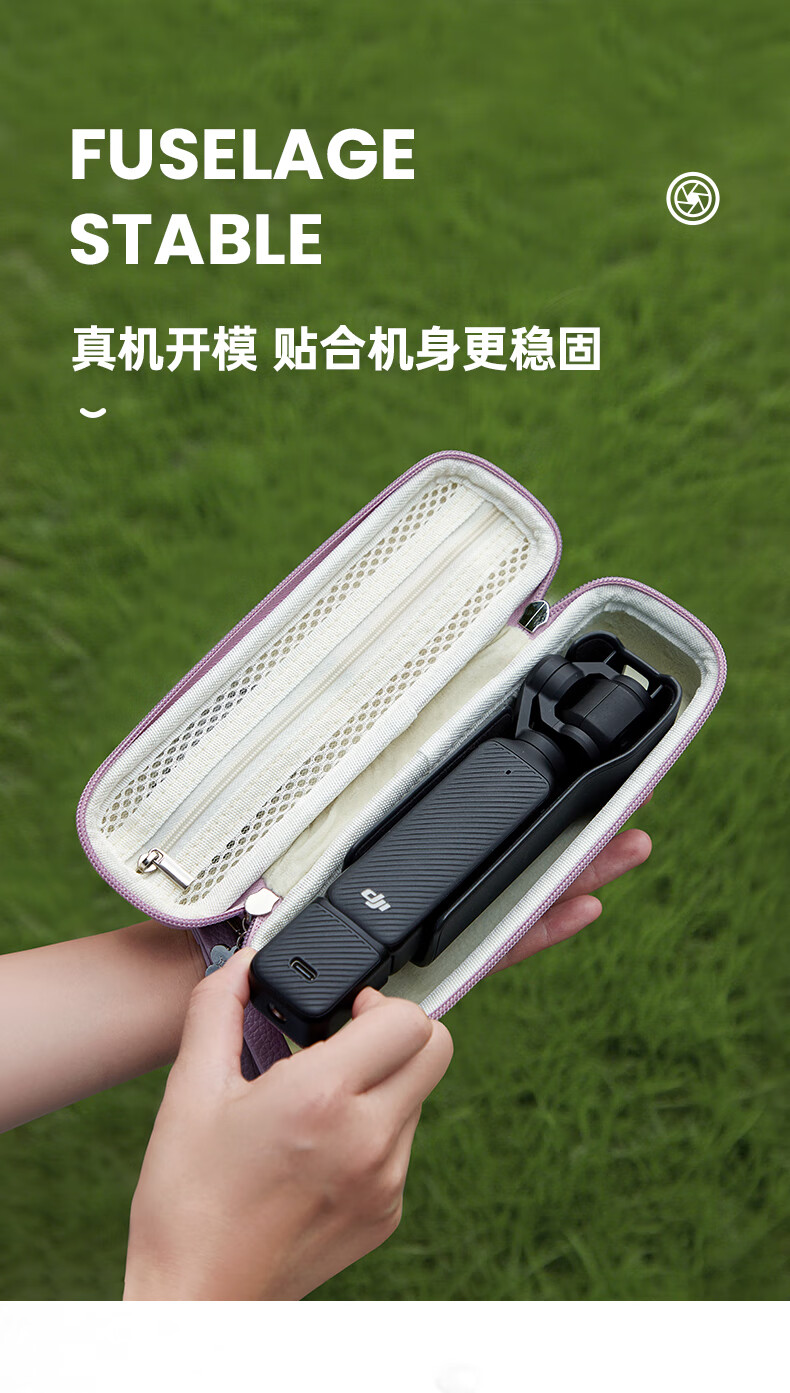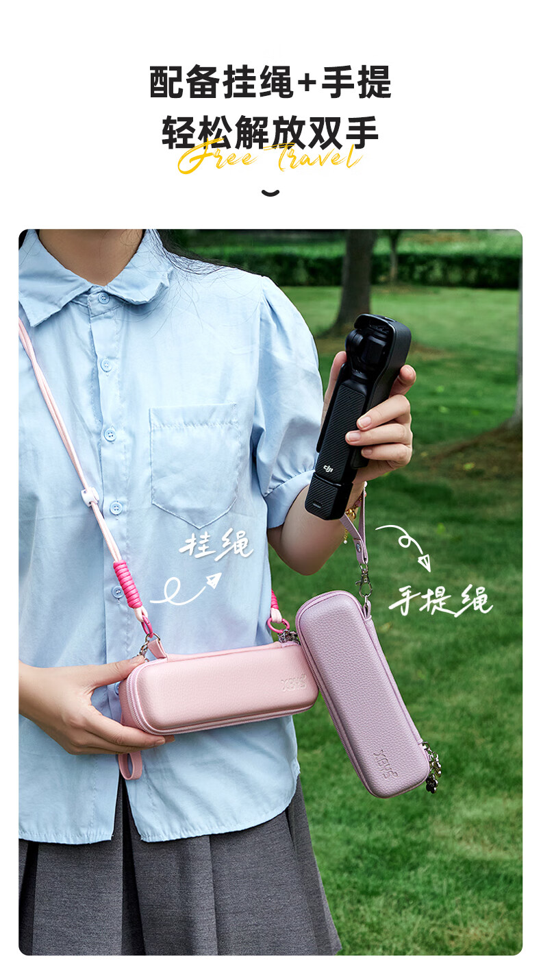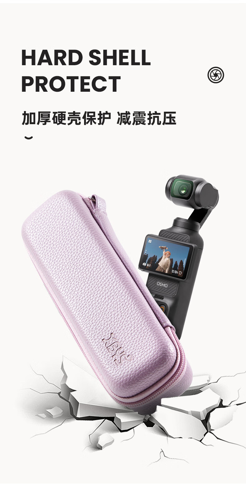 Qilicai is suitable for DJI pocket3 storage bag, hard shell, anti-fall, threaded short handle, JIpocket3pocket2 portable protective cover, gimbal, camera bag, high-looking portable crossbody, pink - portable version