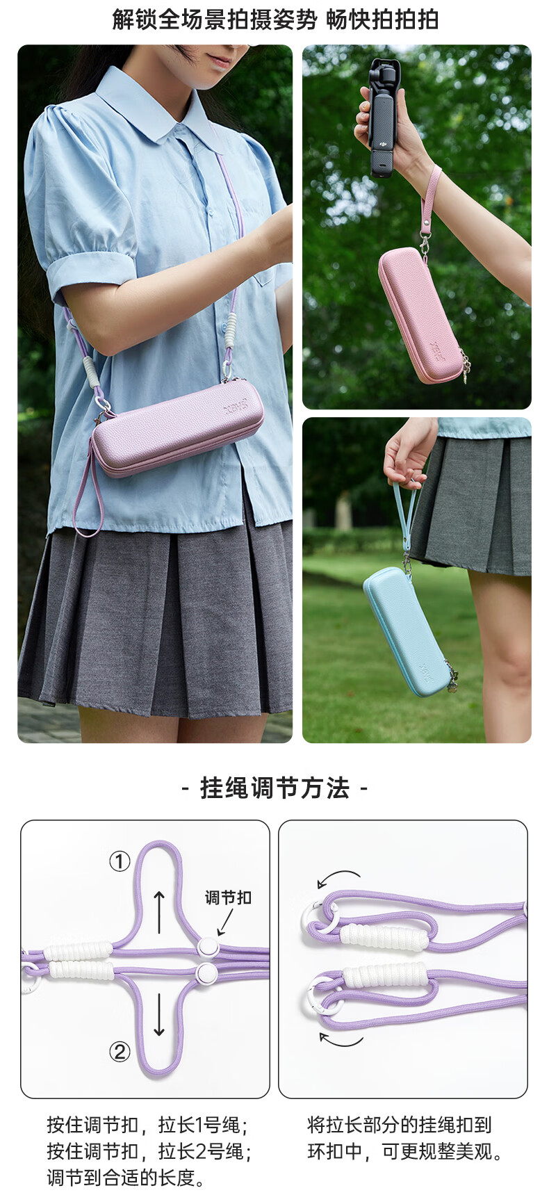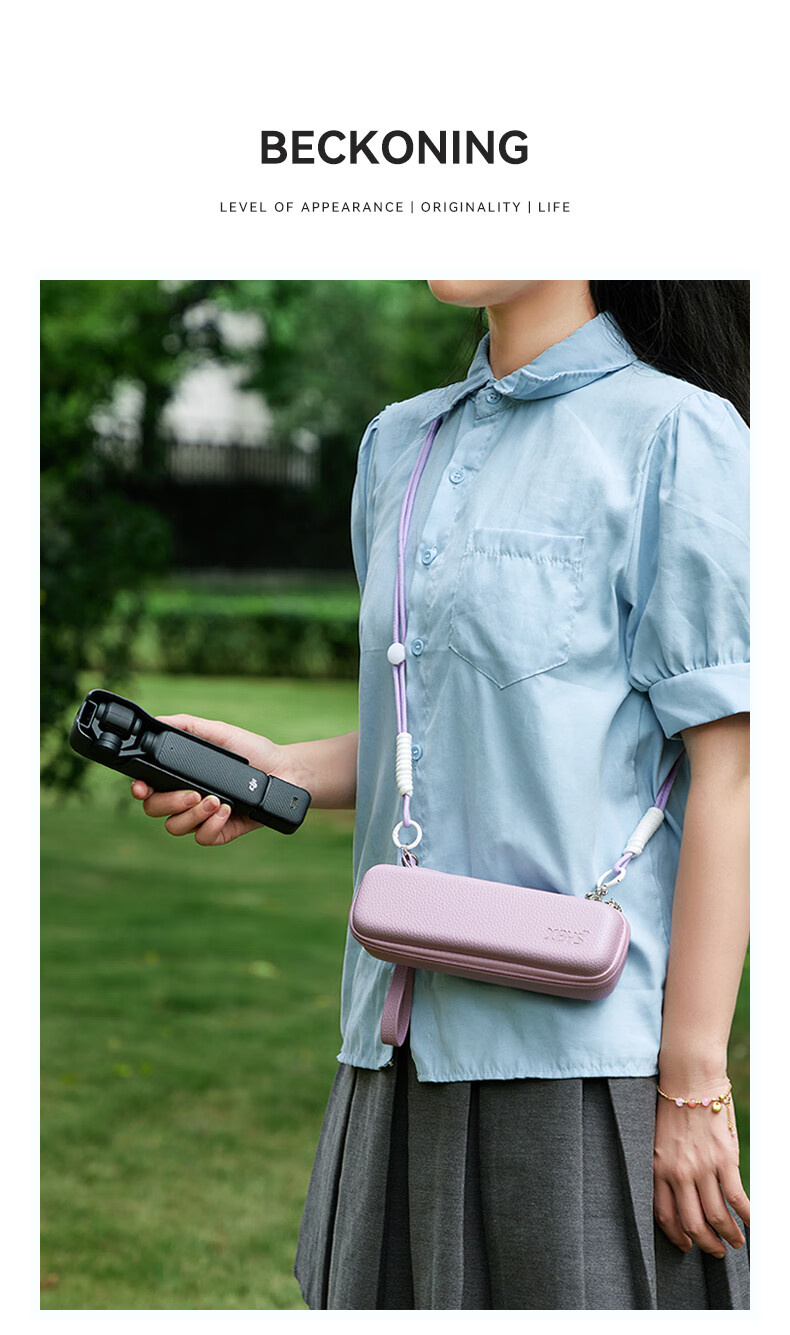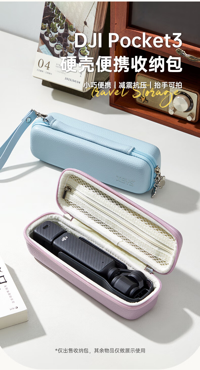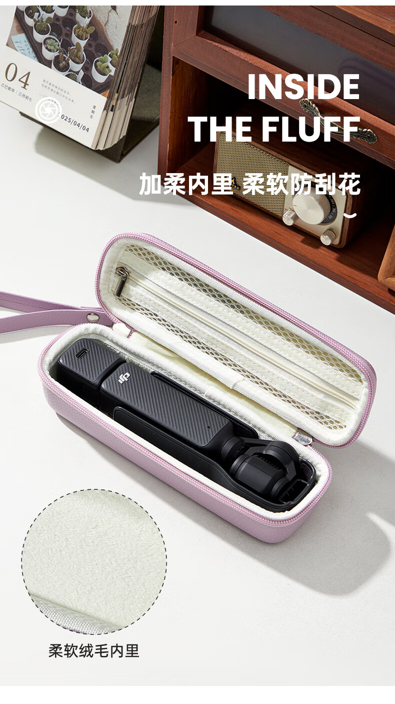 Qilicai is suitable for DJI pocket3 storage bag, hard shell, anti-fall, threaded short handle, JIpocket3pocket2 portable protective cover, gimbal, camera bag, high-looking portable crossbody, pink - portable version