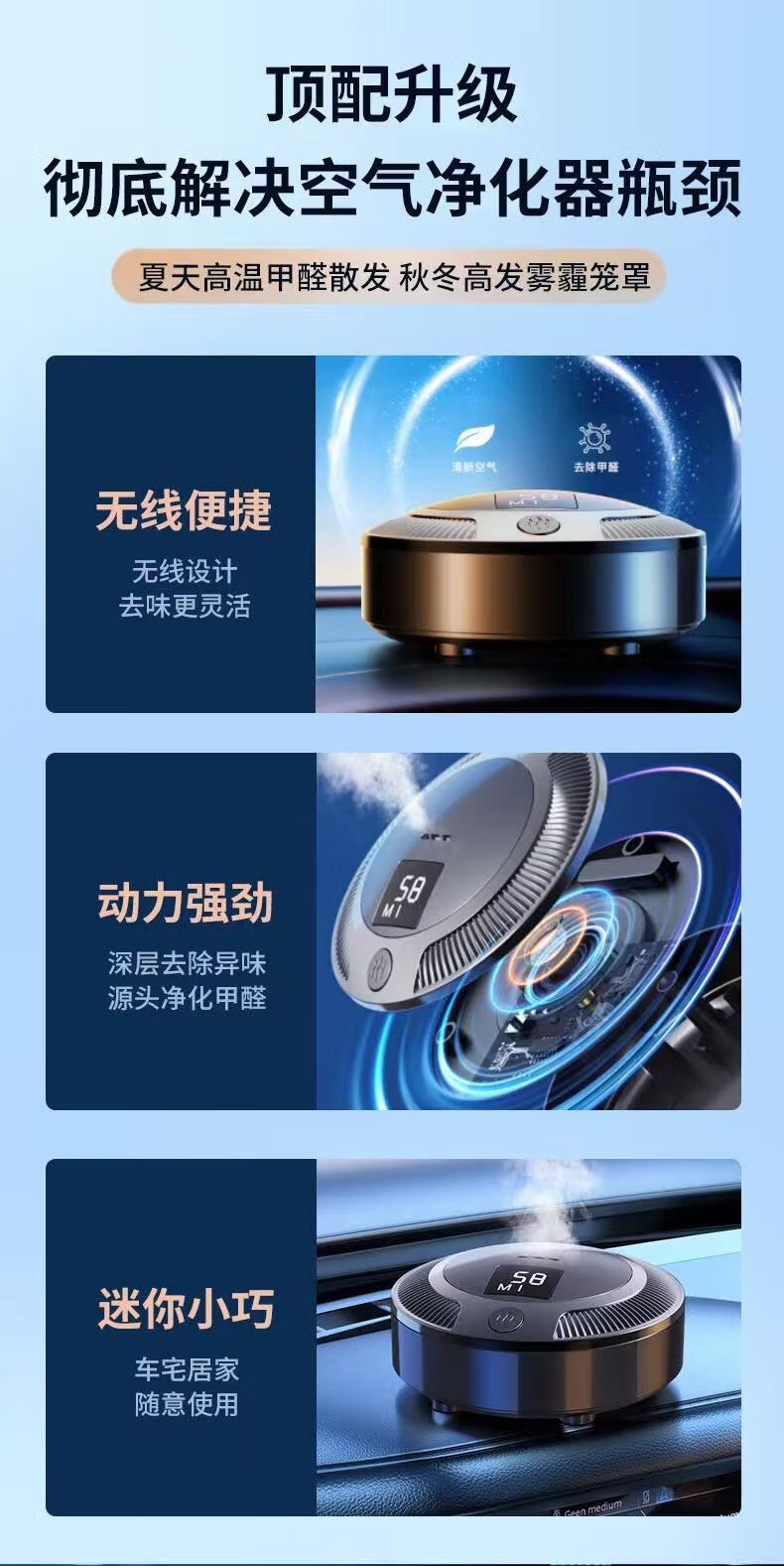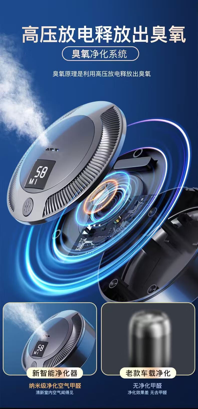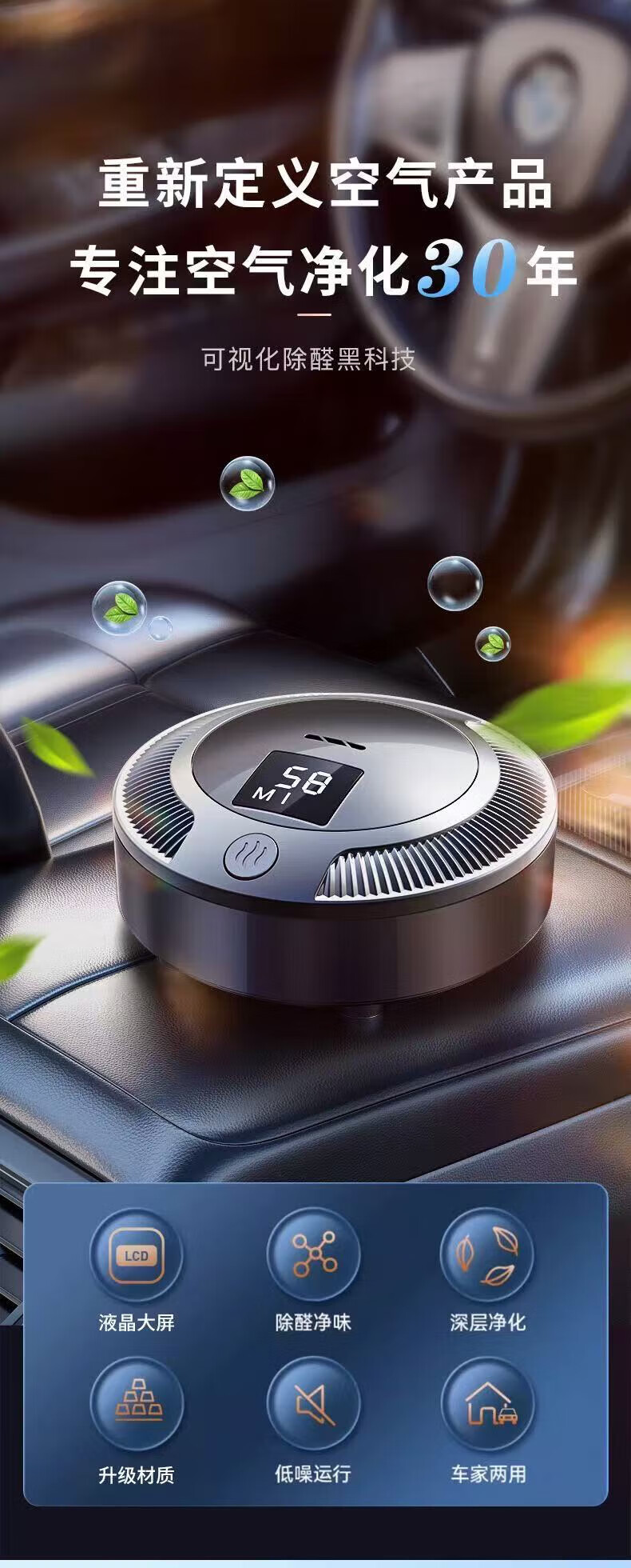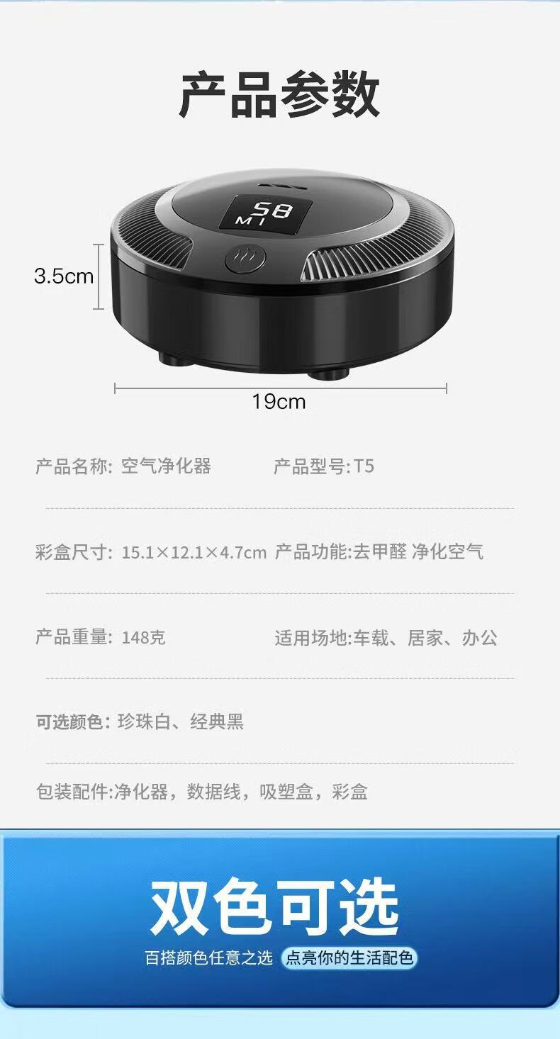 Xiaomi Youpin car air purifier new car formaldehyde removal ozone smog removal car home dual-use digital display SN9418 classic black