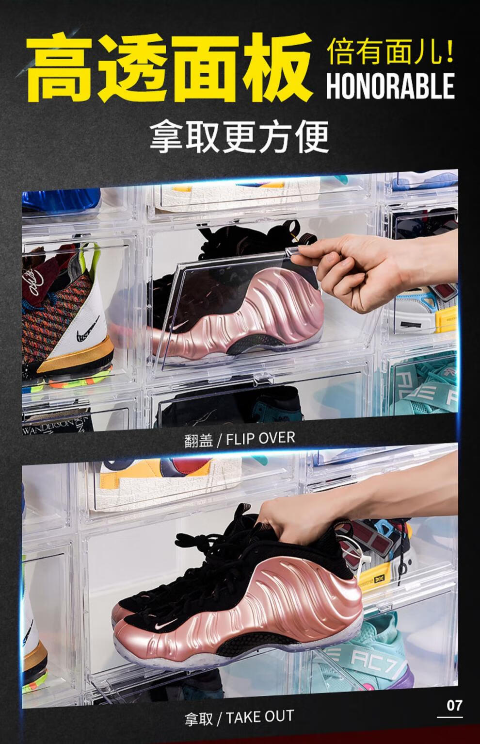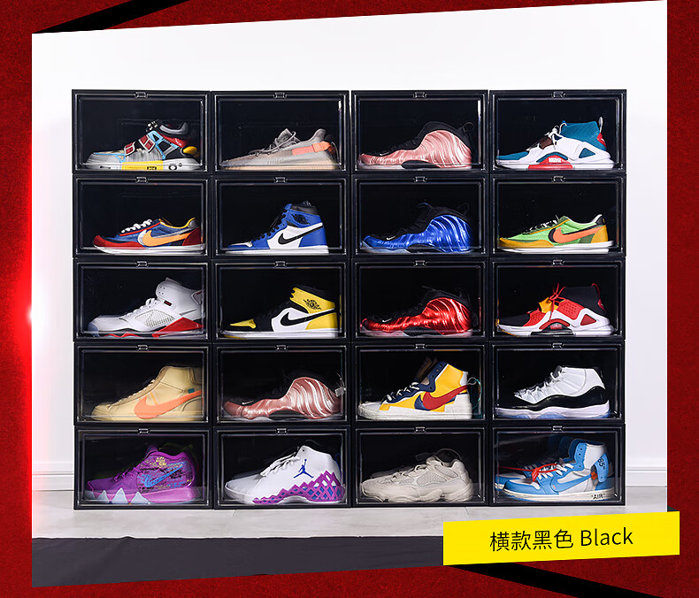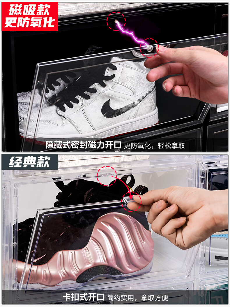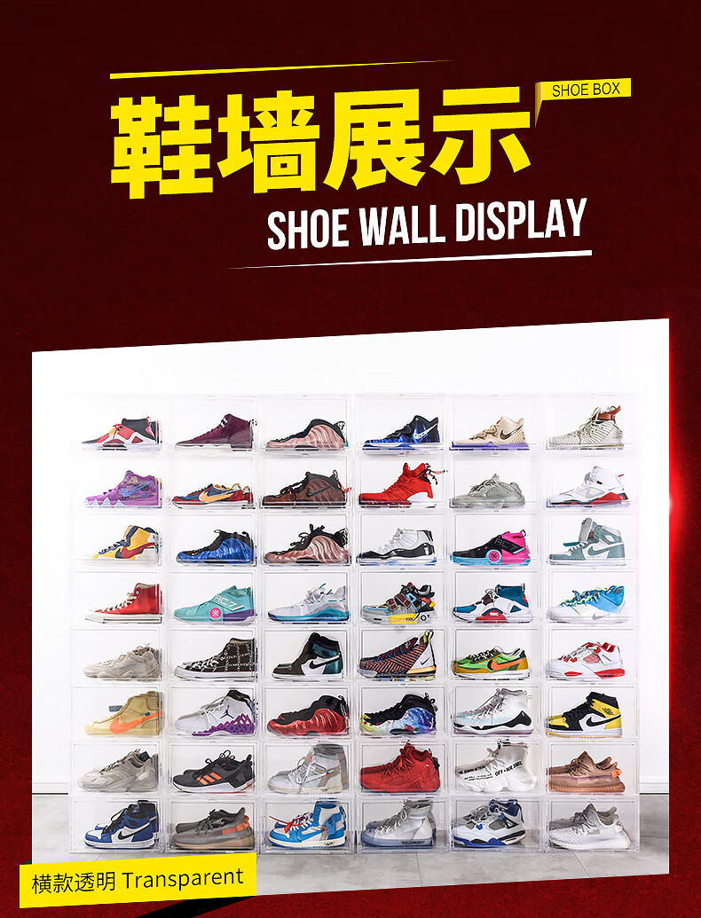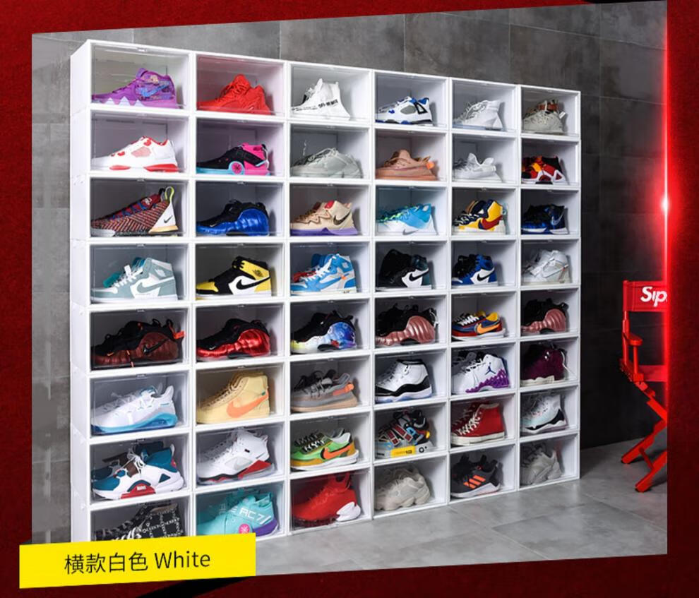 Light Up the Space AJ Shoe Box Storage Box Transparent Shoe Storage Box Storage Shoe Wall Shoe Rack Shoe Cabinet Anti-Oxidation Sneaker Magnetic Upgraded Plastic Double Magnetic Suction More Anti-Oxidation Horizontal Board Transparent 4 Pack 35.5x29.5x21.6cm