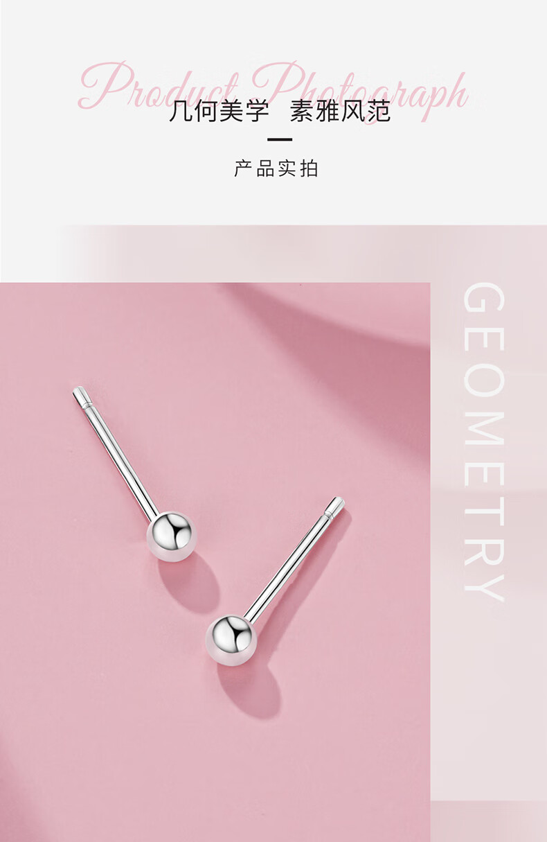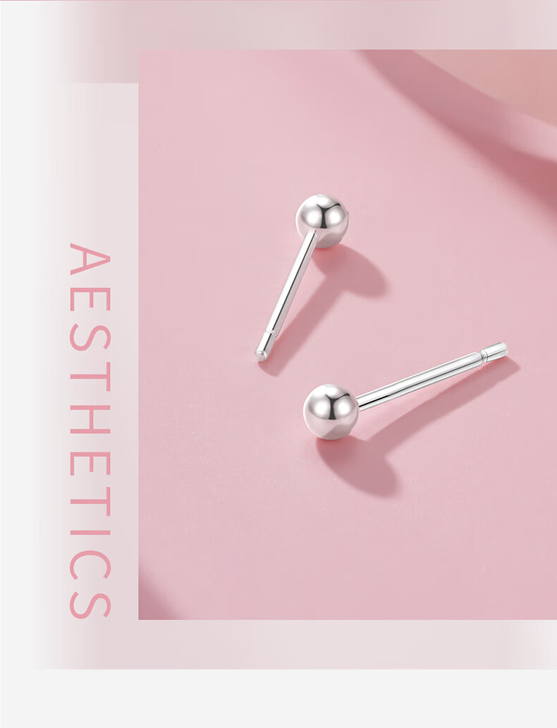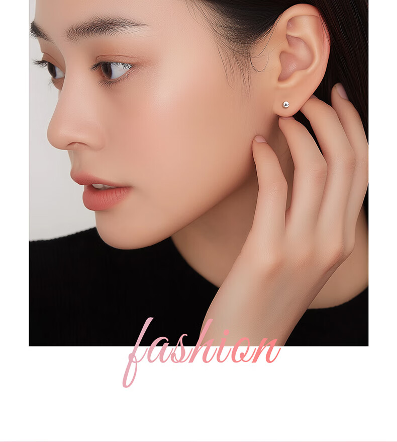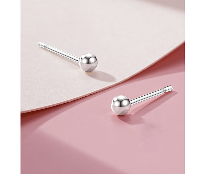 Lao Fengxiang pure silver earrings for women 2025 new sterling silver earrings to support ear piercing to prevent inflammation, no need to remove ear sticks for sleeping, earrings and earrings L-Z681 sterling silver earrings to support ear piercings - round bead style 4 pairs