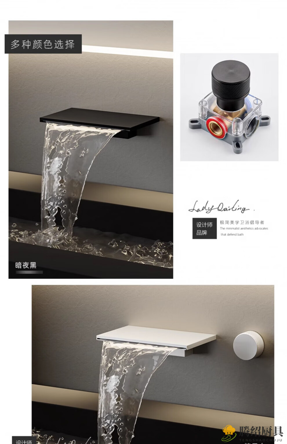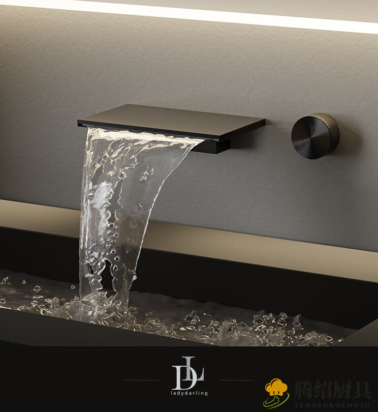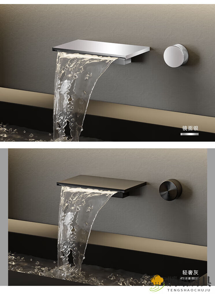 MIEHONE German hidden bathtub faucet minimalist waterfall style powder room wall faucet all copper hot and cold large flow light luxury gray - waterfall style wall faucet all copper casting