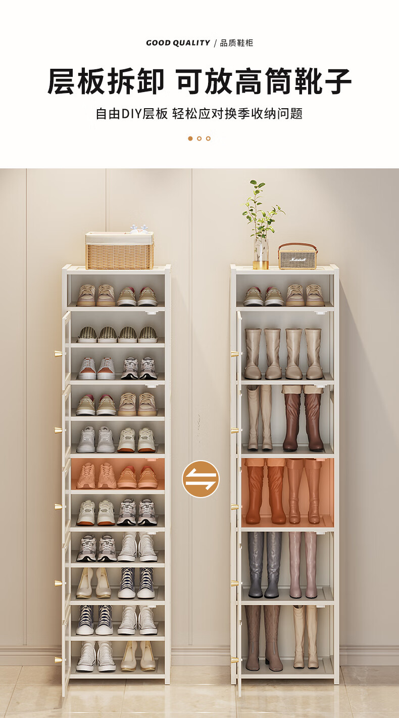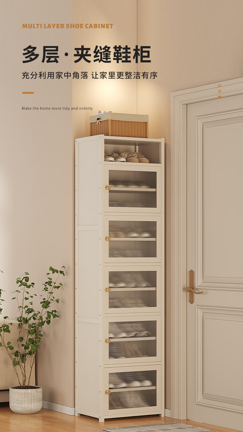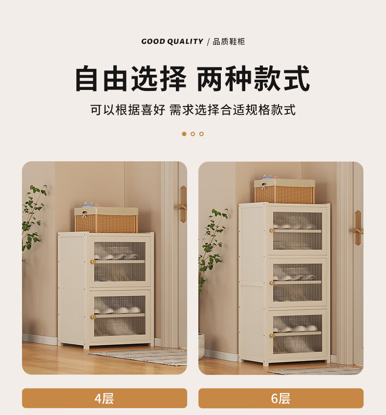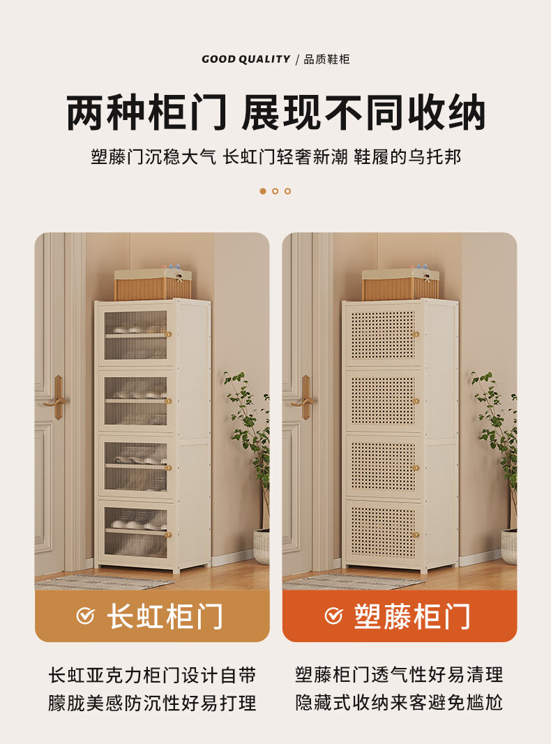 Household doorway shoe box new 2025 shoe rack simple dust-proof shoe storage artifact shoe cabinet space-saving plastic rattan door_4 layers_milk white (lamina can be adjusted)