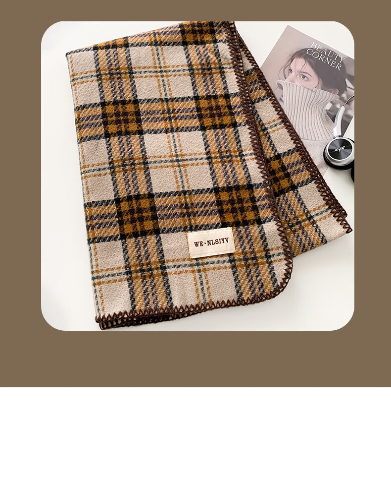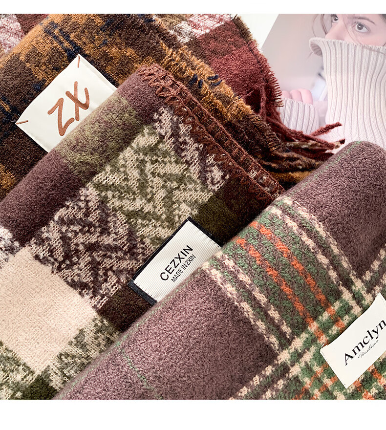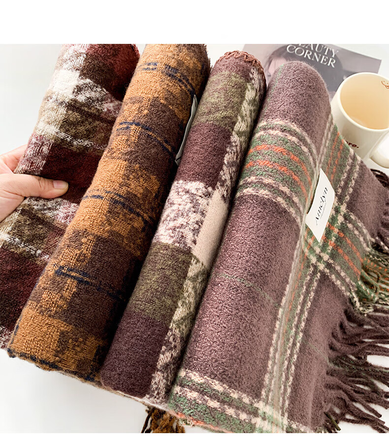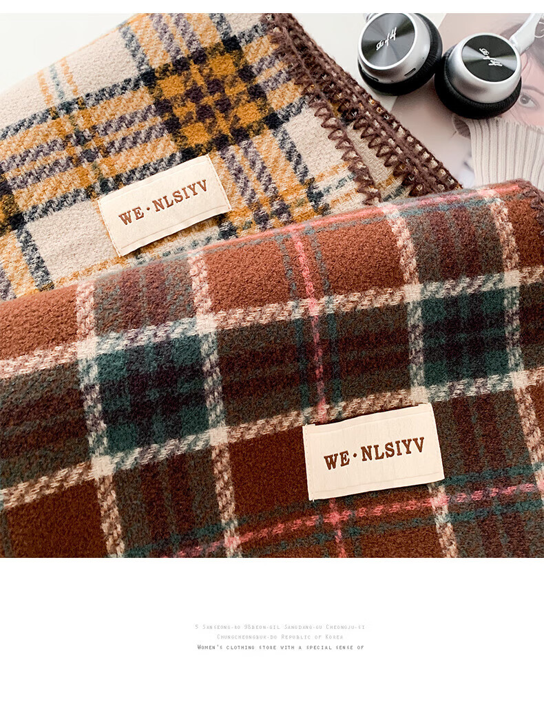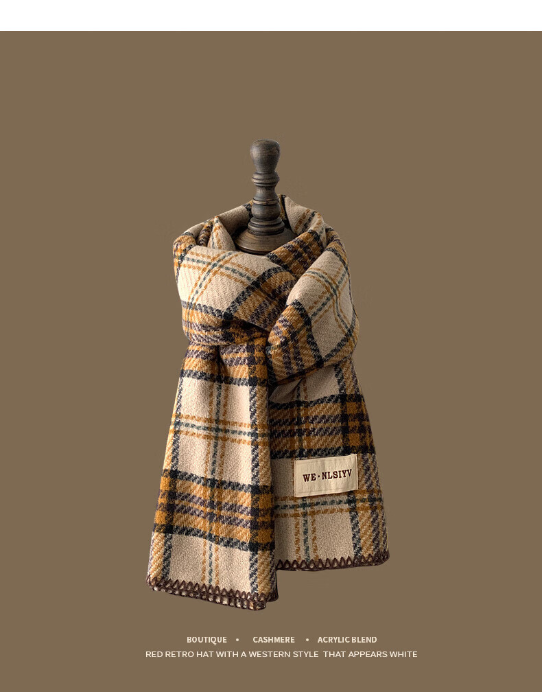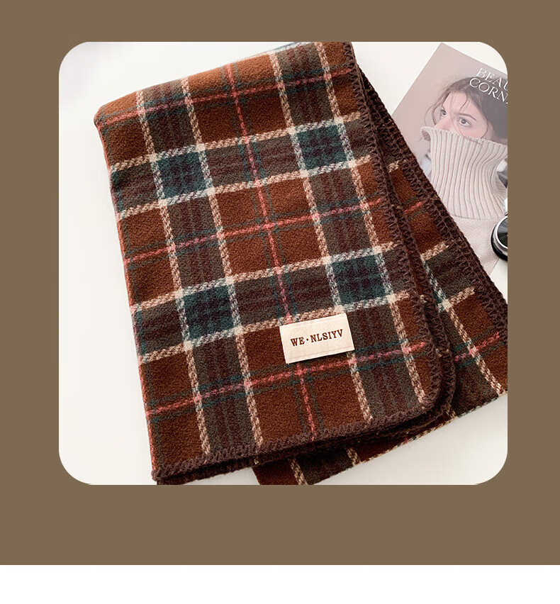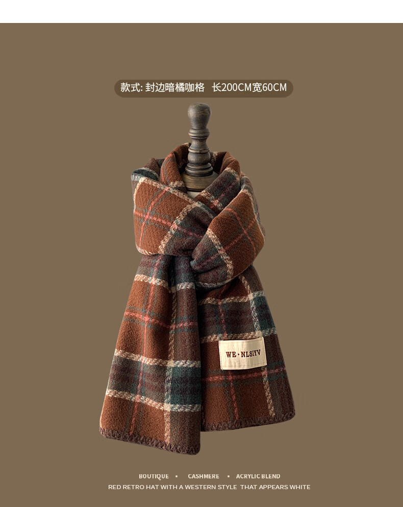 Memaru's new Korean Maillard scarf for men and women in winter 2025 new atmosphere retro shawl to keep warm and versatile scarf, dark orange, right
