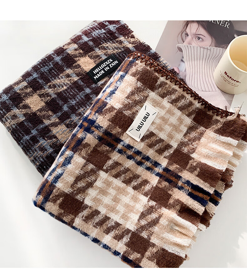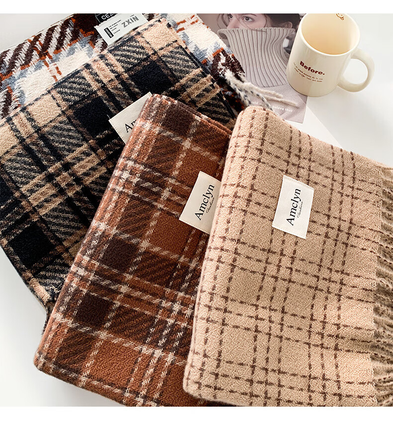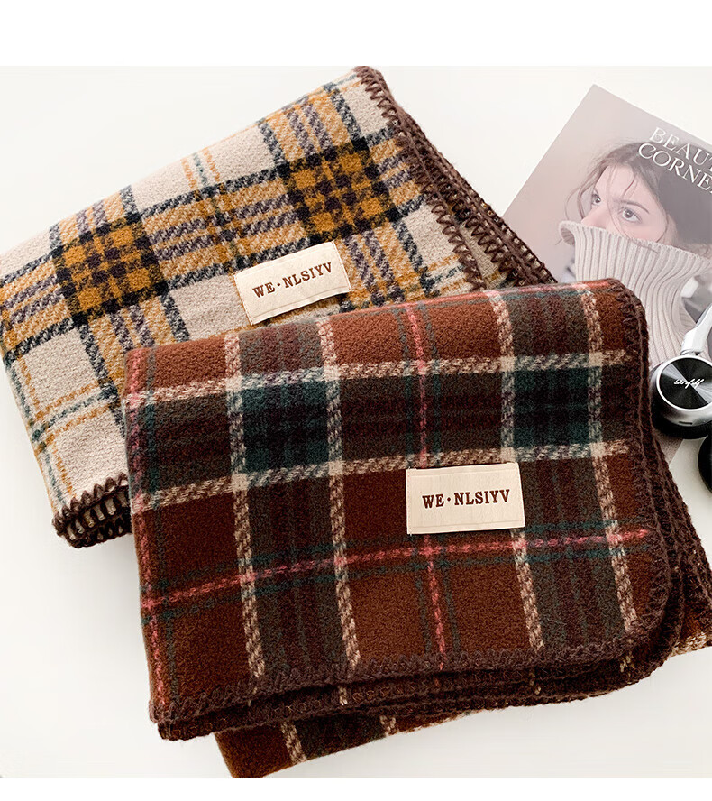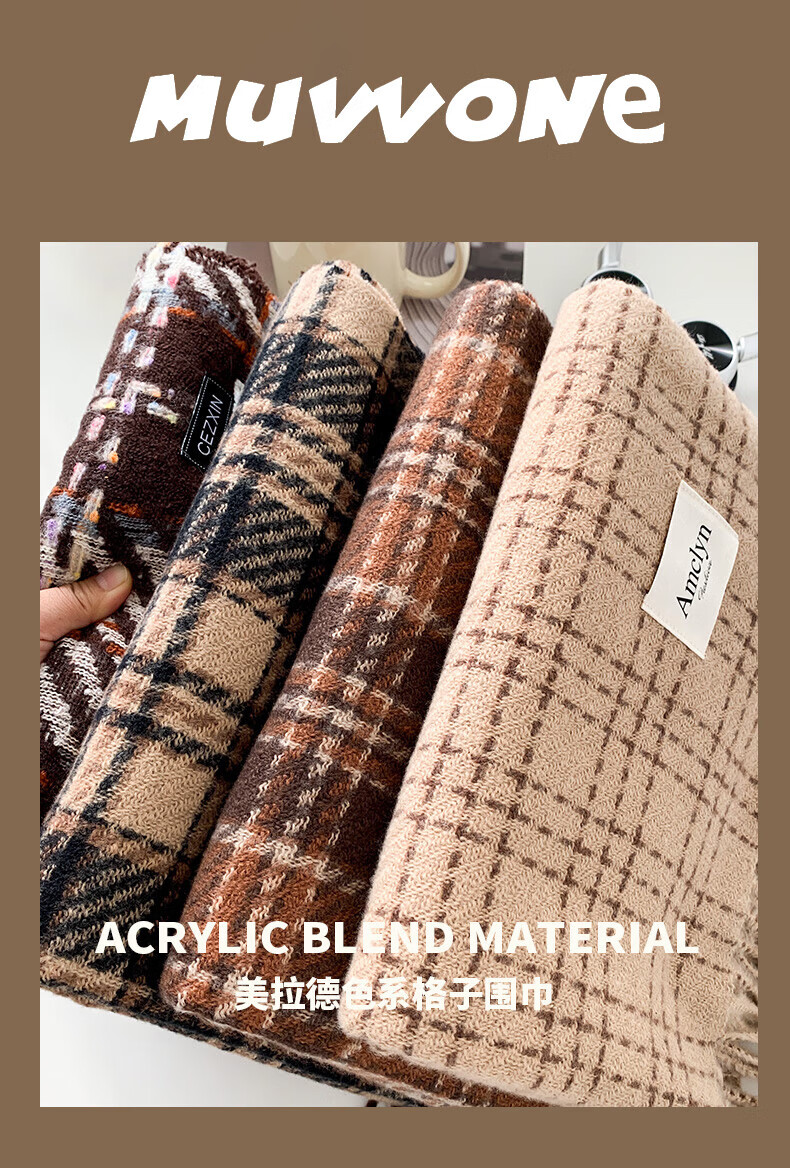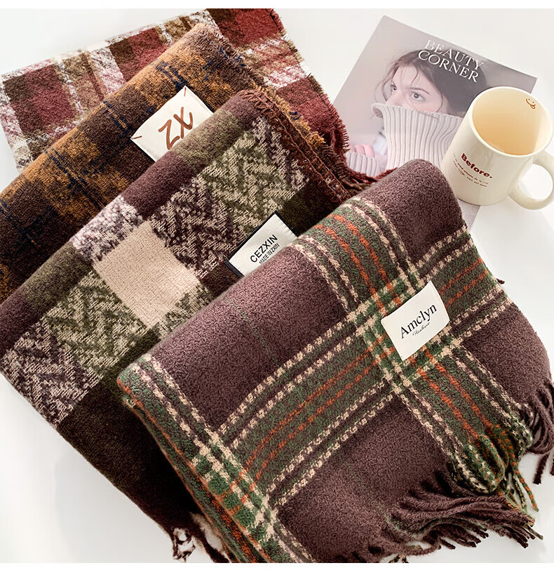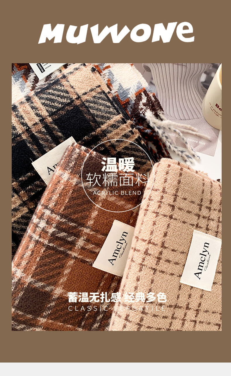 Memaru's new Korean Maillard scarf for men and women in winter 2025 new atmosphere retro shawl to keep warm and versatile scarf, dark orange, right