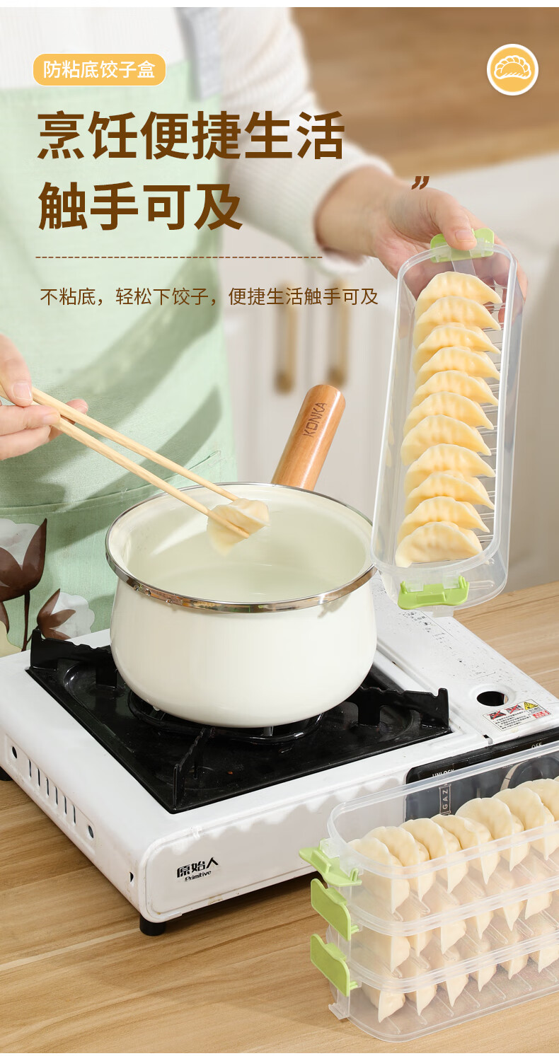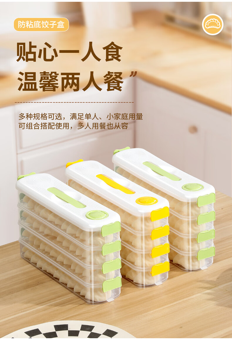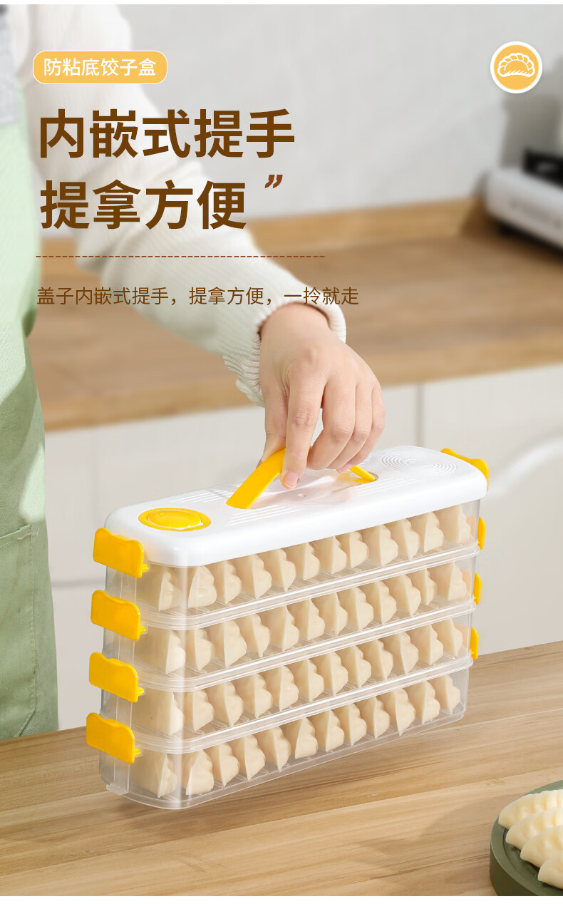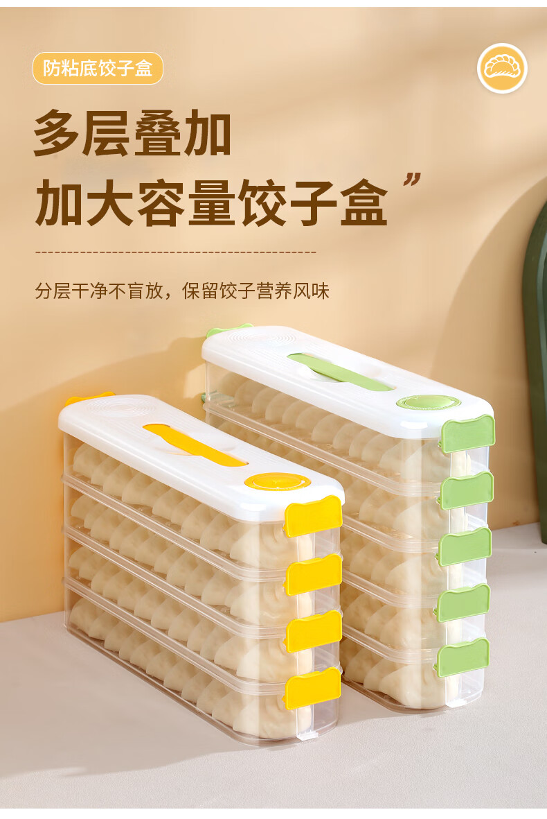 Jingsheng frozen dumpling box food grade sandwich dumpling freezer box refrigerator side door special crisper food packaging and sorting green_4 layers of narrow slit storage/timed storage/intimate handles/free stacking Narrow slit storage/timed storage/intimate handles/free stacking_31x8x