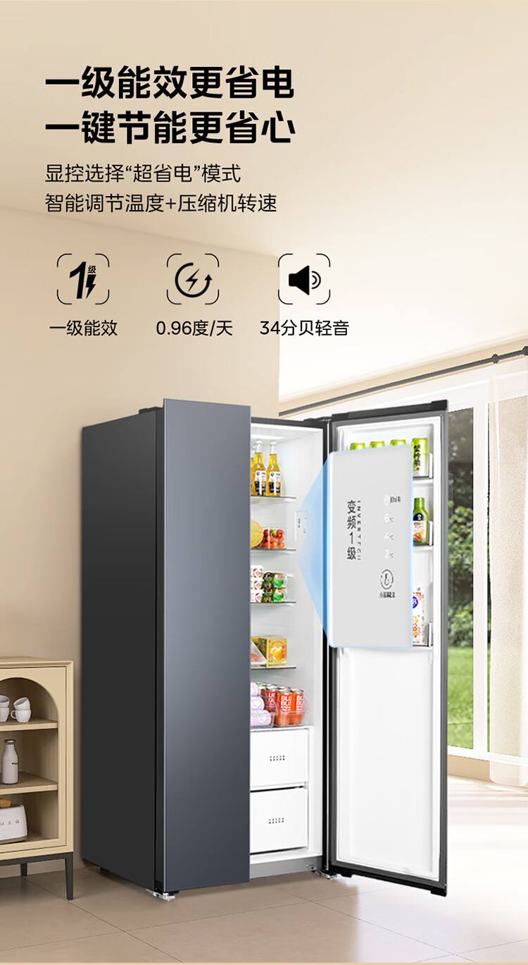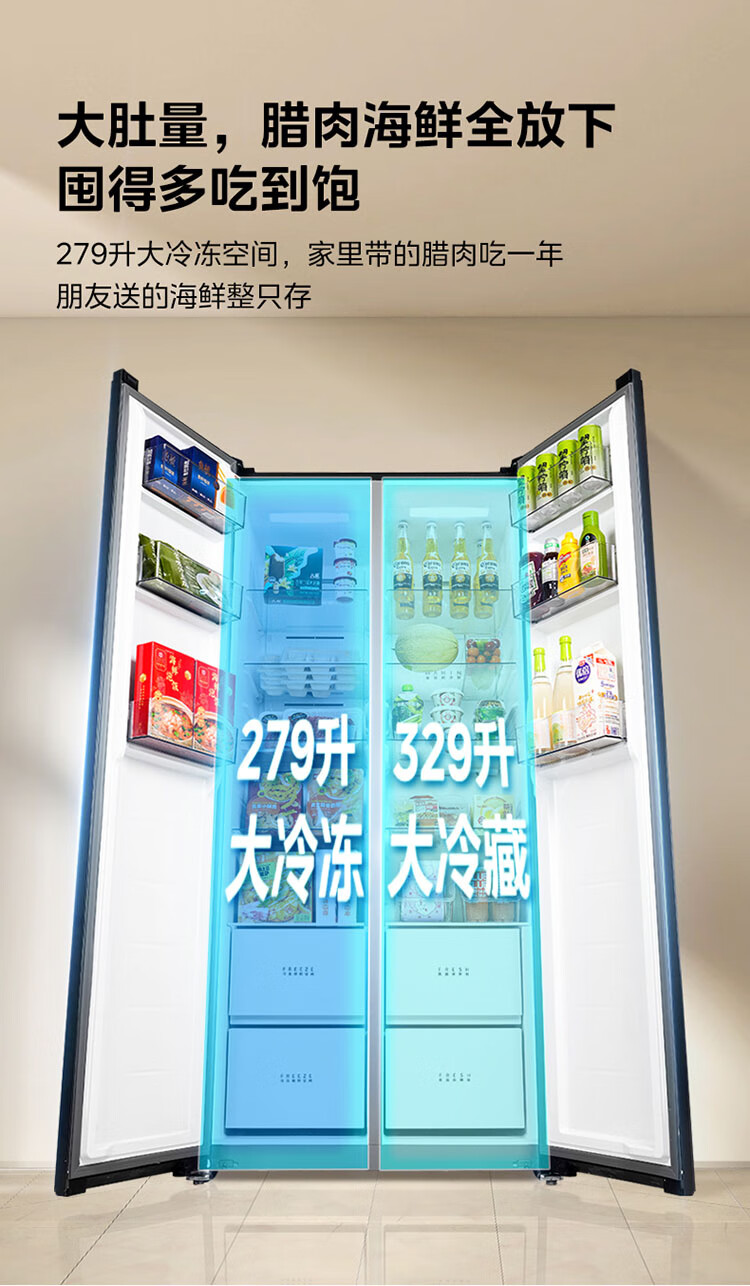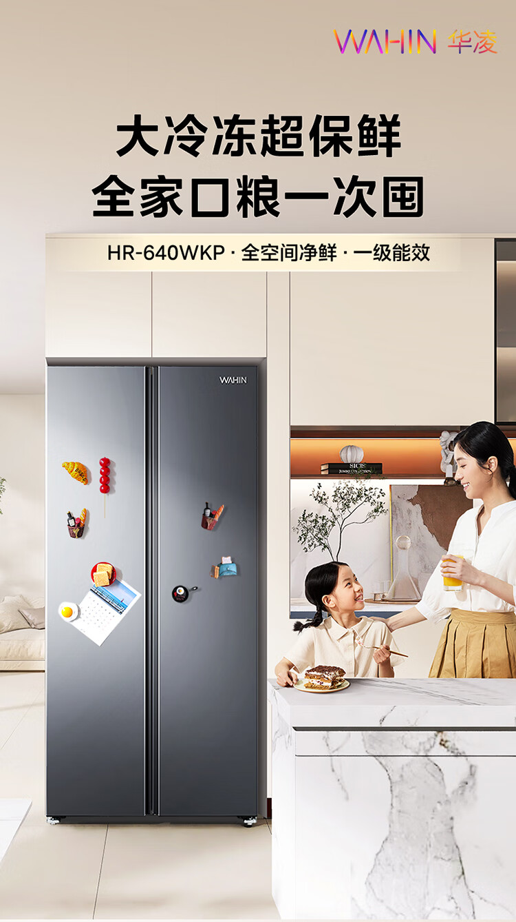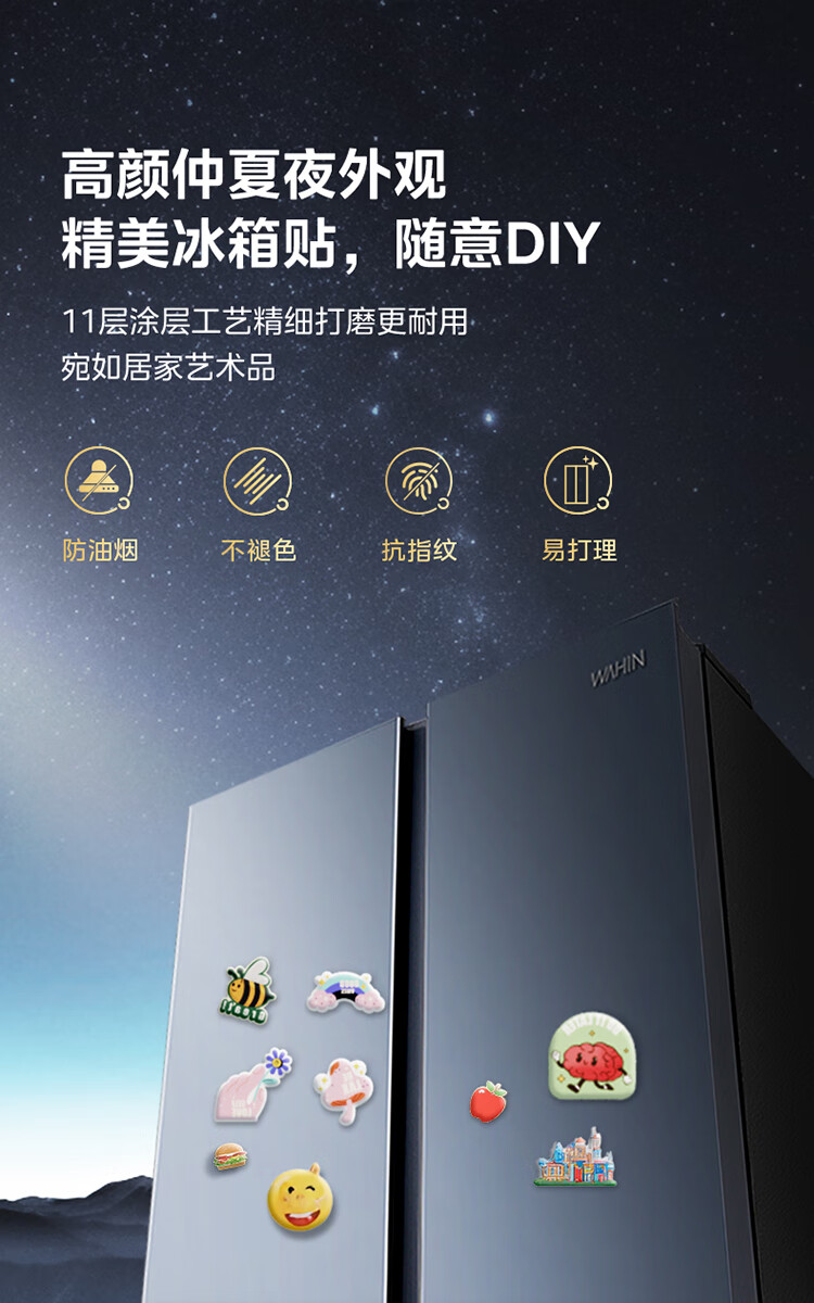 Midea's refrigerator Hualing Shenji 640 double-door door-to-door large capacity first-class energy efficiency air-cooled frost-free ultra-thin household odor-free antibacterial refrigerator HR-640WKP door-to-door 640丨double PT odor-cleaning丨Midsummer Night