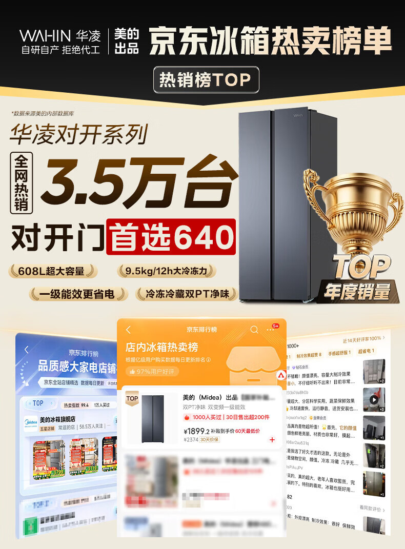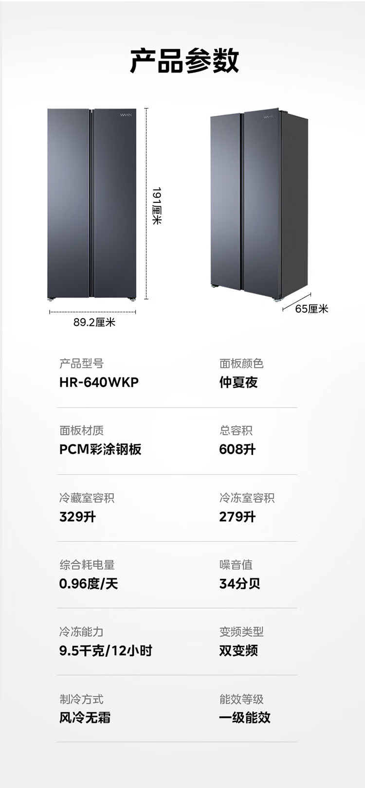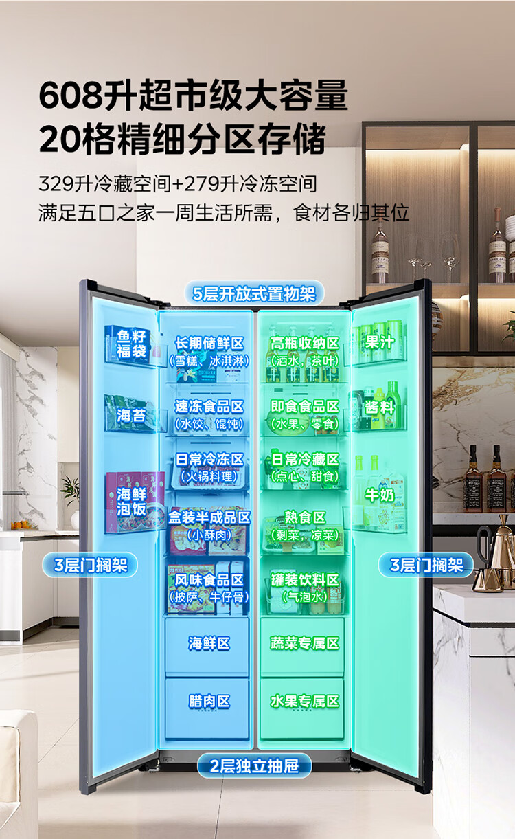 Midea's refrigerator Hualing Shenji 640 double-door door-to-door large capacity first-class energy efficiency air-cooled frost-free ultra-thin household odor-free antibacterial refrigerator HR-640WKP door-to-door 640丨double PT odor-cleaning丨Midsummer Night
