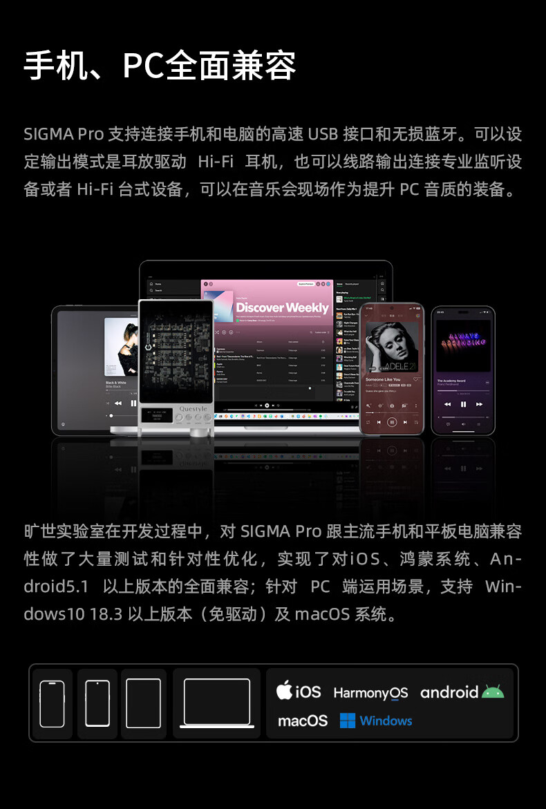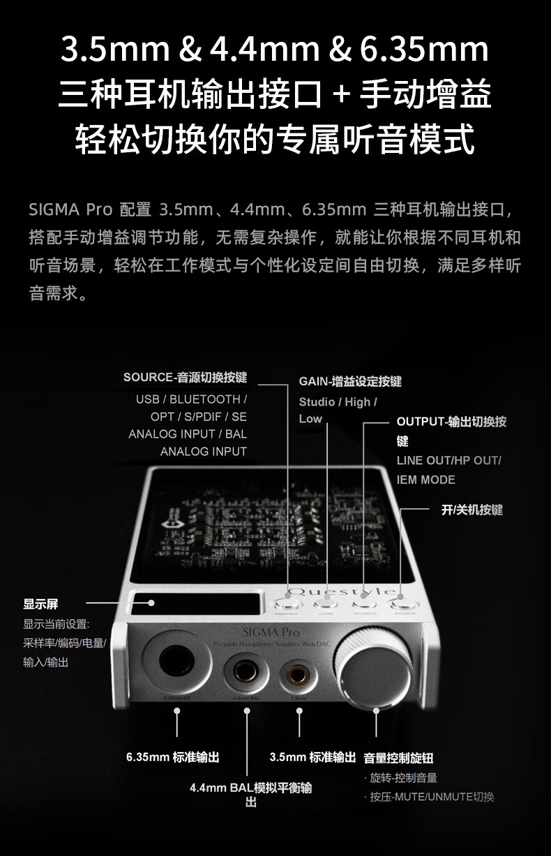 Queshi SIGMA PRO monitor-grade desktop decoder and amp all-in-one mobile portable lossless Bluetooth HIFI flagship big tail Android Apple professional tuning small tail deep space black
