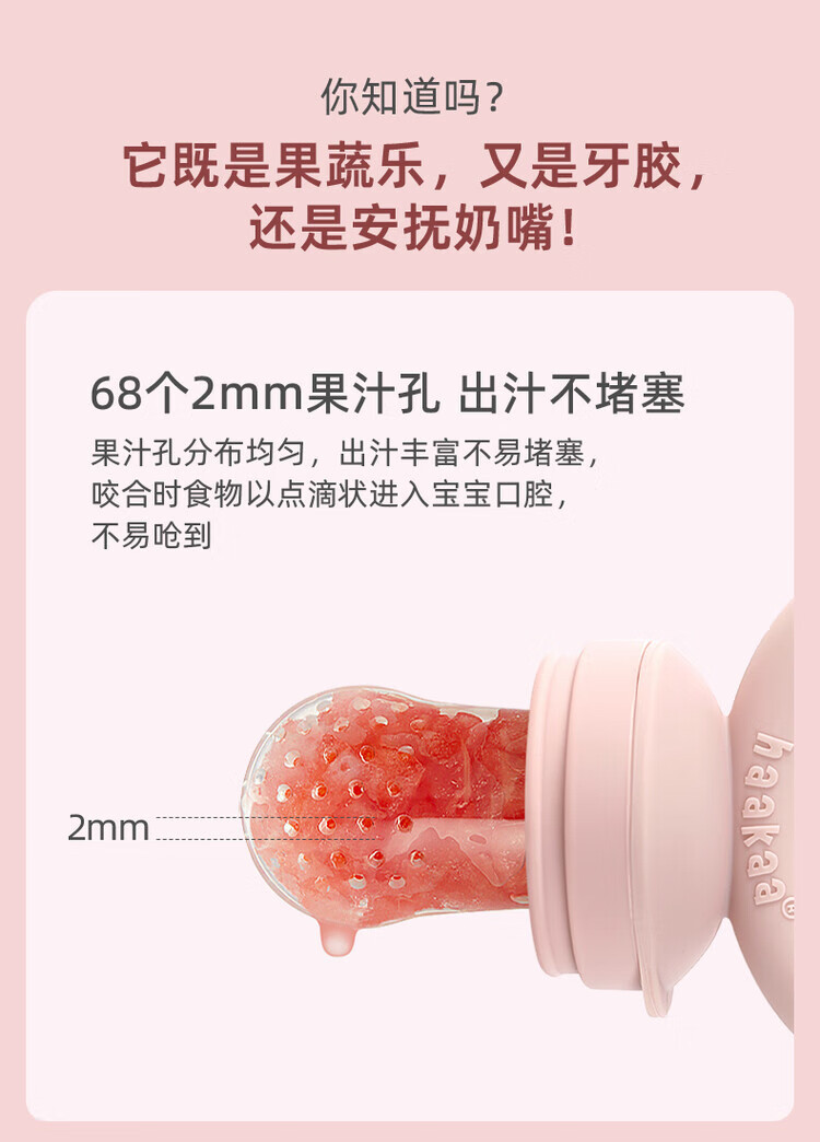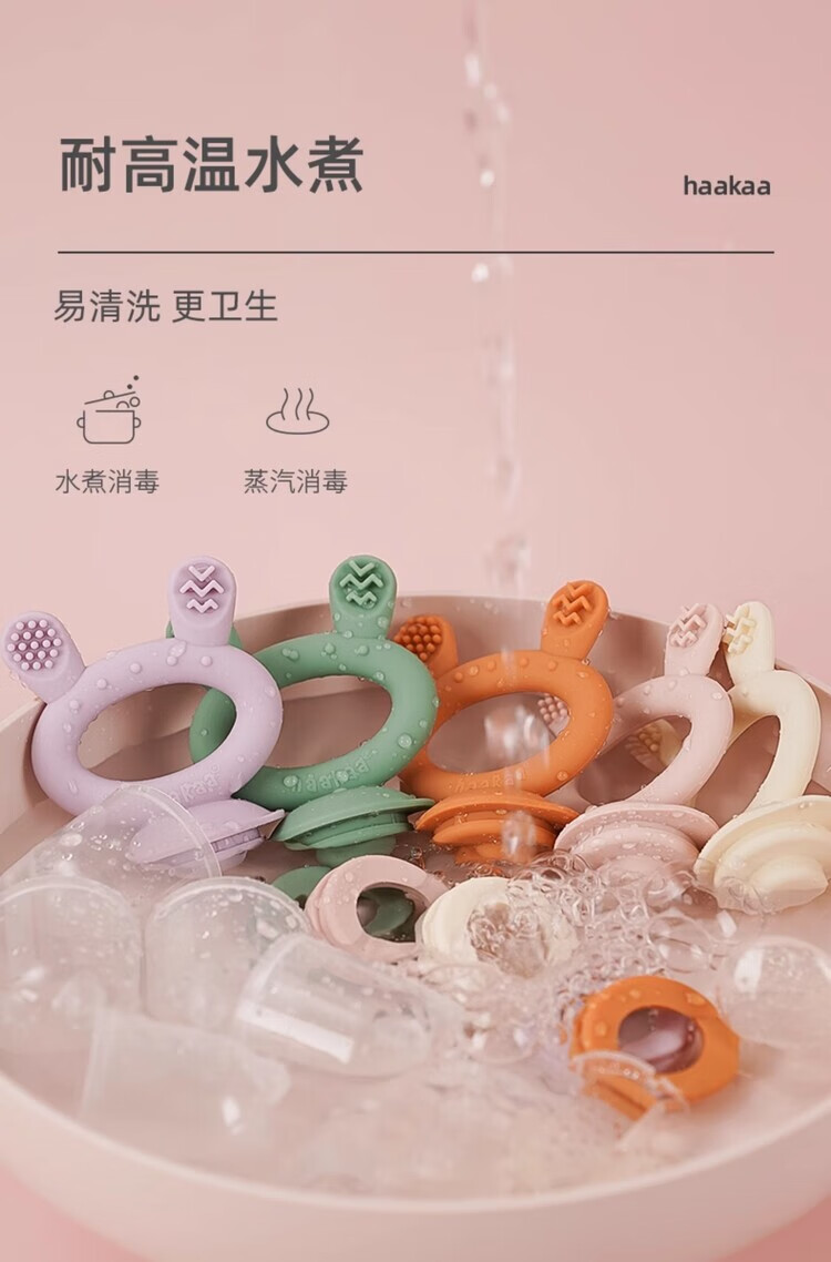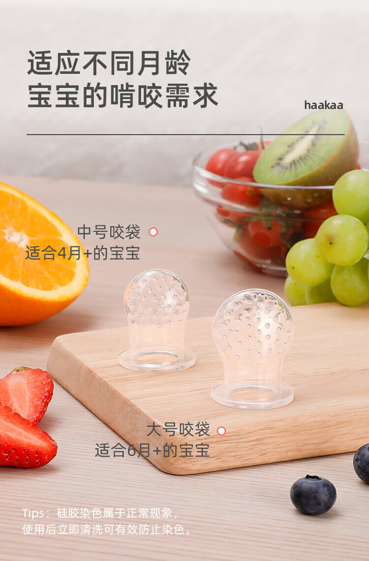 Haakaa baby food bite bag, fruit and vegetable teether, baby teething stick, fruit pacifier, supplementary food device, milky yellow, 1 pack