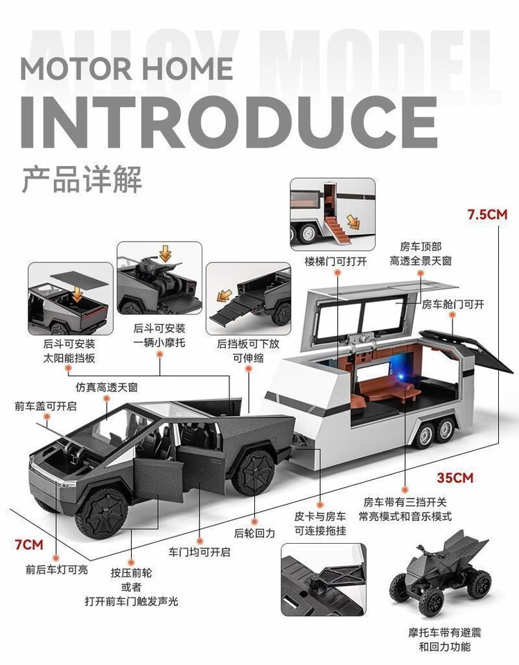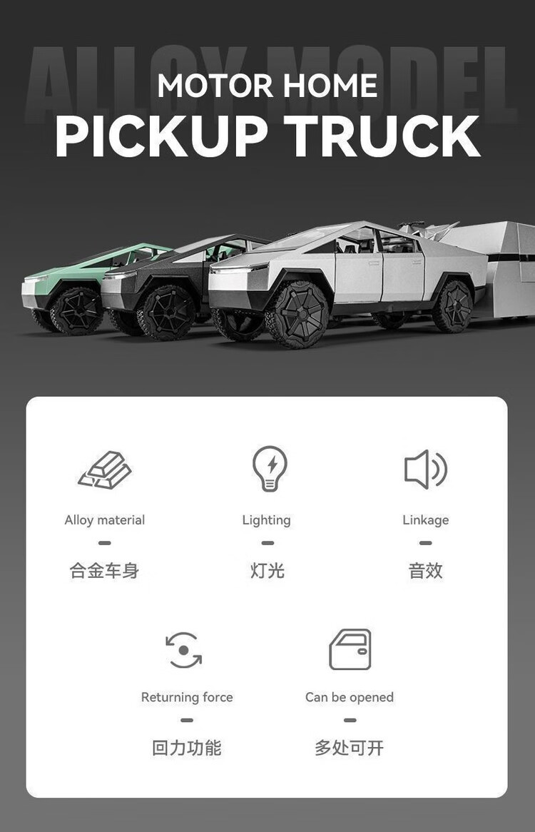 Yusenyi Alloy mini remote control off-road Tesla car Cyber pickup truck high-speed tiltable car desktop 1 32 Tesla pickup RV full set green