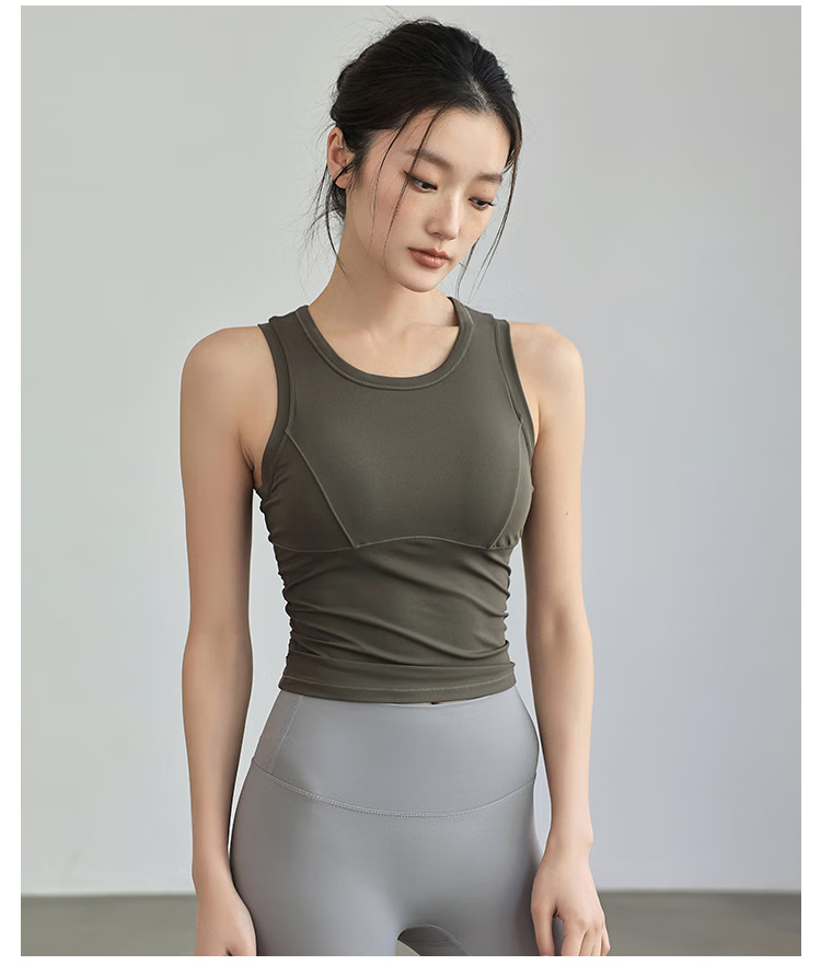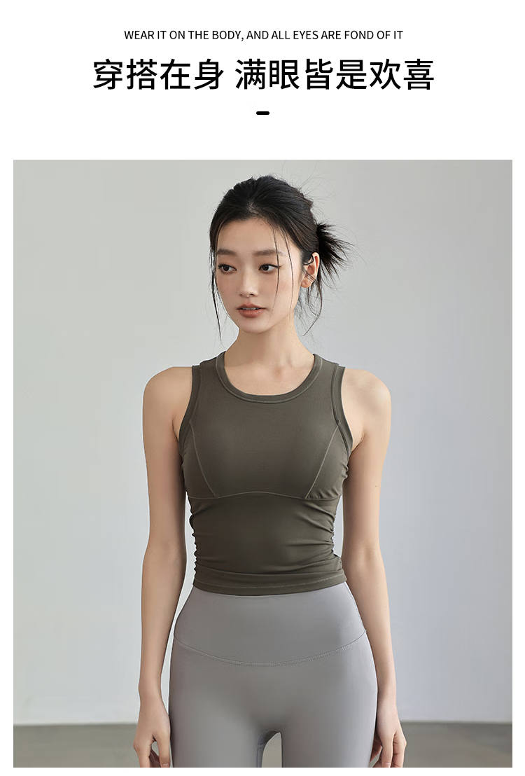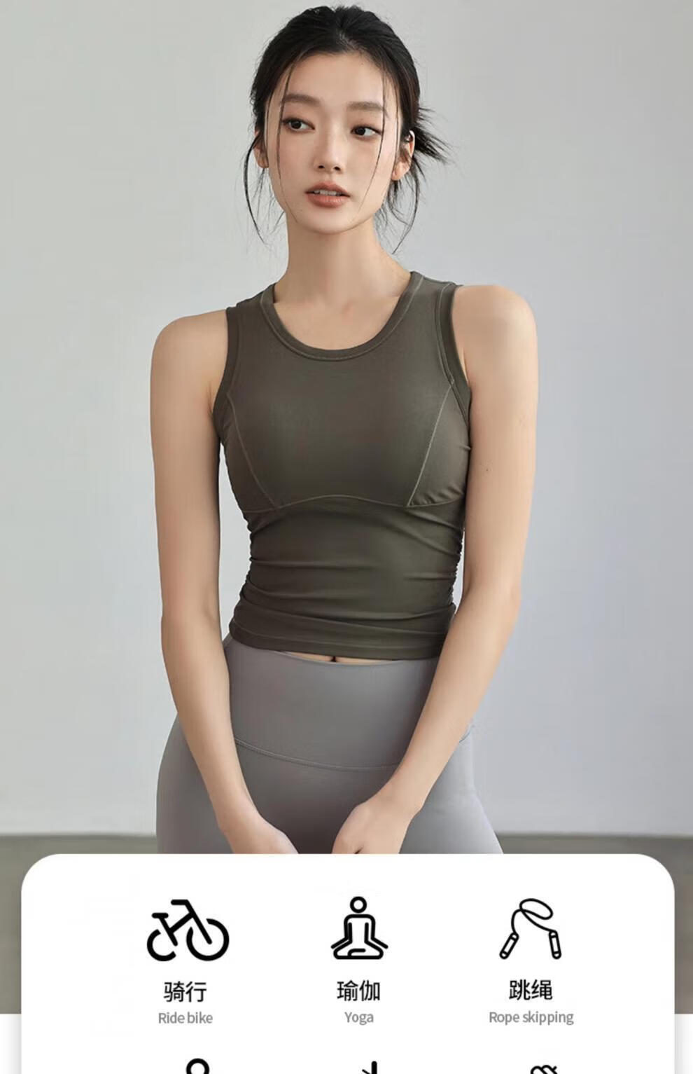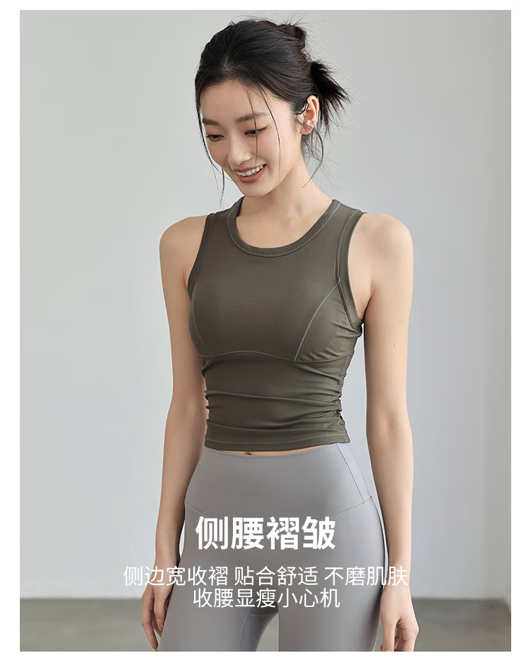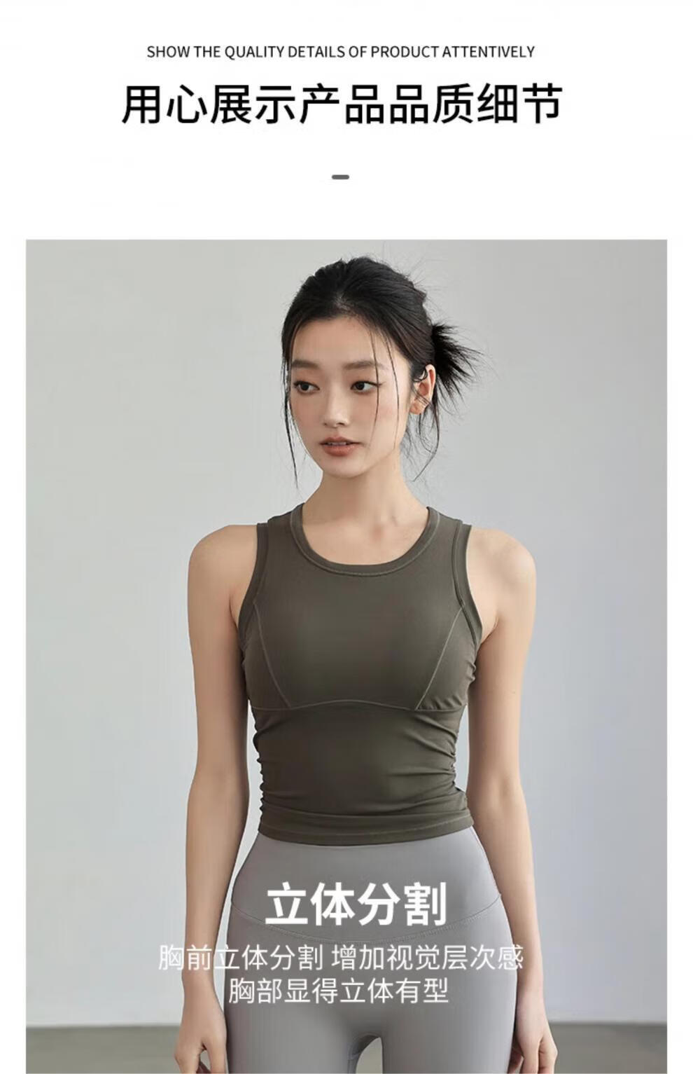 LULUNILEMON Lulu Sports Bra Women's Shockproof Push-Up Yoga Vest Women's Summer New Pilates Top Slimming Tea Brown (Integrated Coaster) S