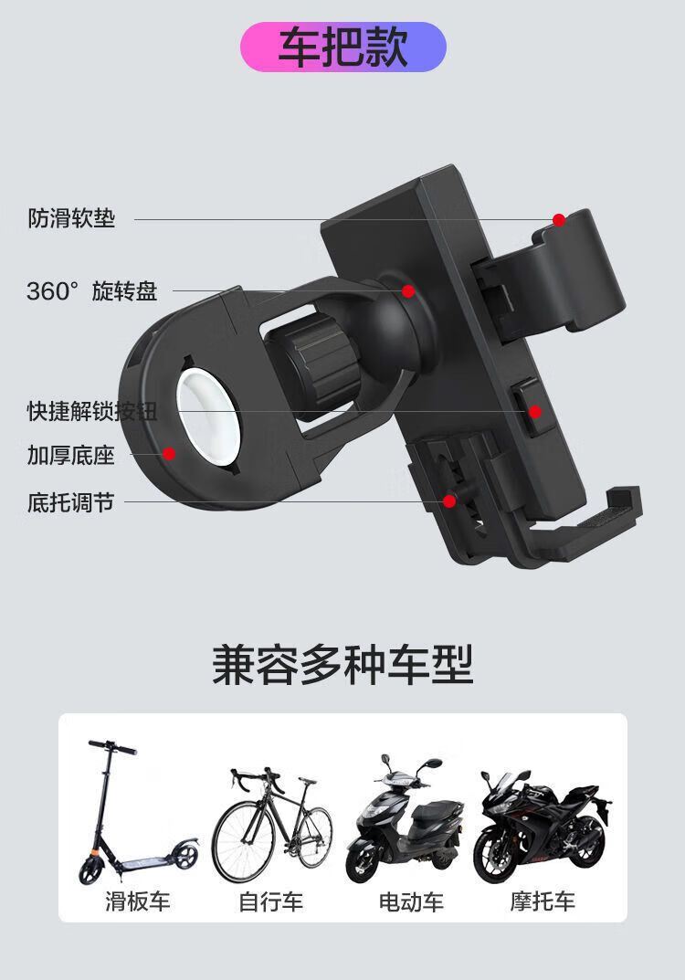 Xuan Kashi Motorcycle Electric Vehicle Bicycle Battery Car Navigation Battery Car Aluminum Alloy Mobile Phone Holder Meituan Takeaway Rider High Strength Plate Handlebar Model with Umbrella