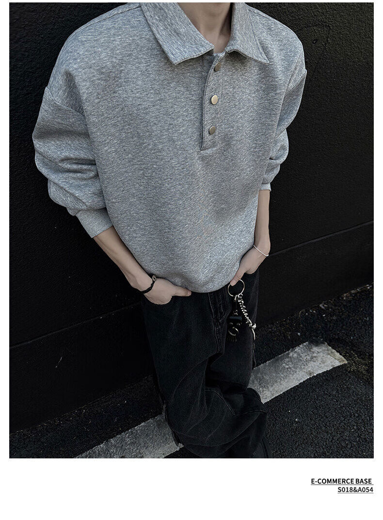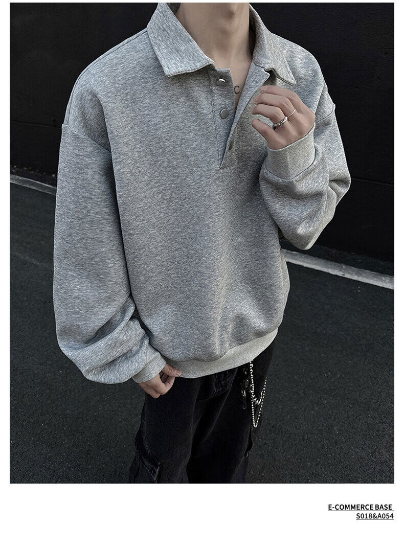 Jingyan selects cleanfit Henry collar sweatshirt for men, spring and autumn American retro polo shirt, handsome, trendy and loose, black M M95 to 115Jin Jin is equal to 0.5kg and can be worn
