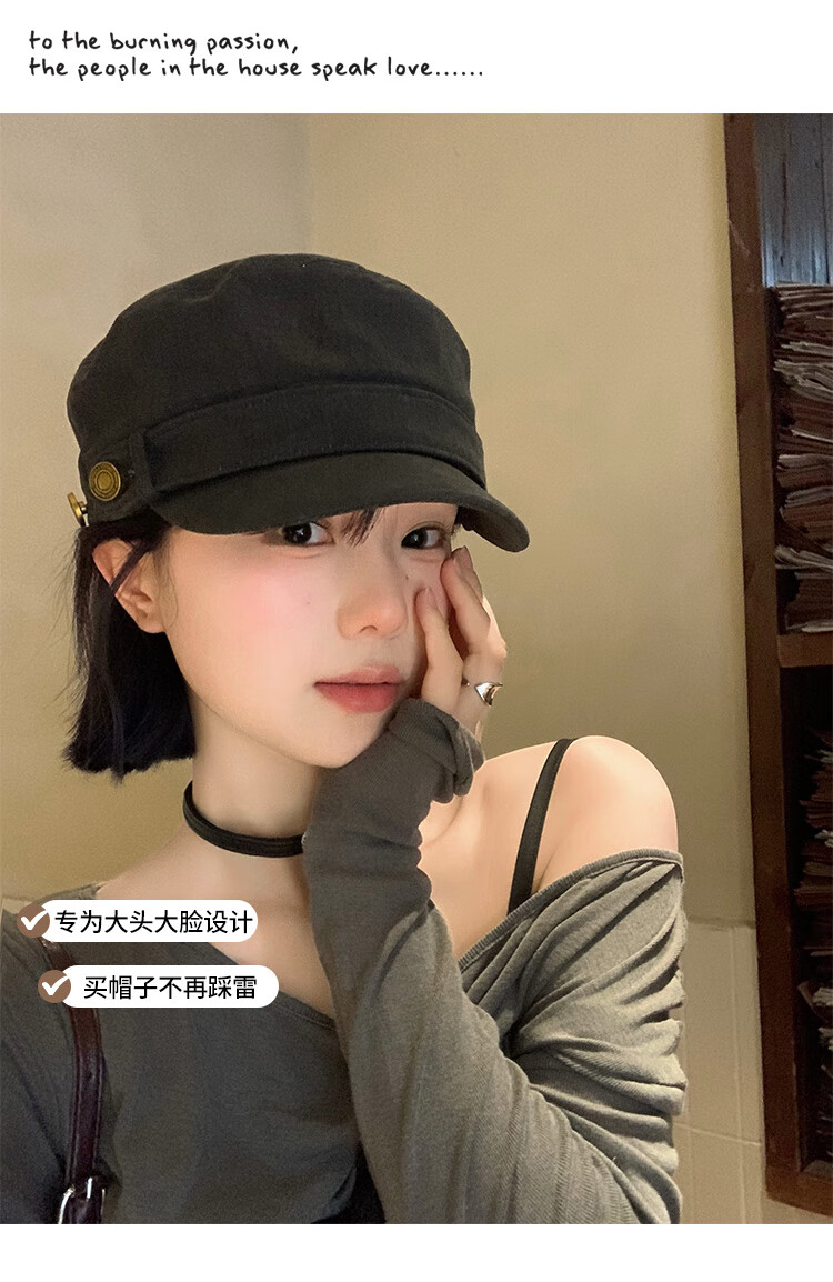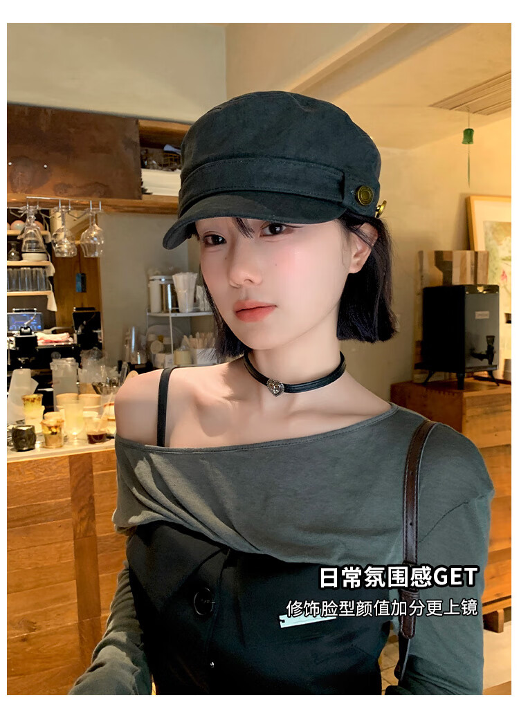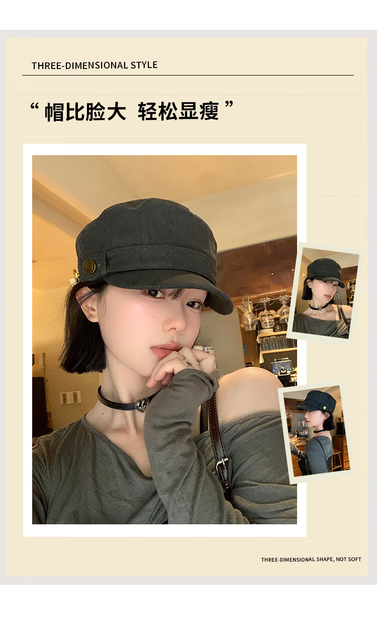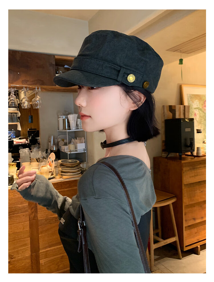 BIBK beret women's peaked cap equestrian hat showing face small flat top retro fashion hat square round face high skull retro green one size fits all elastic 55-59cm