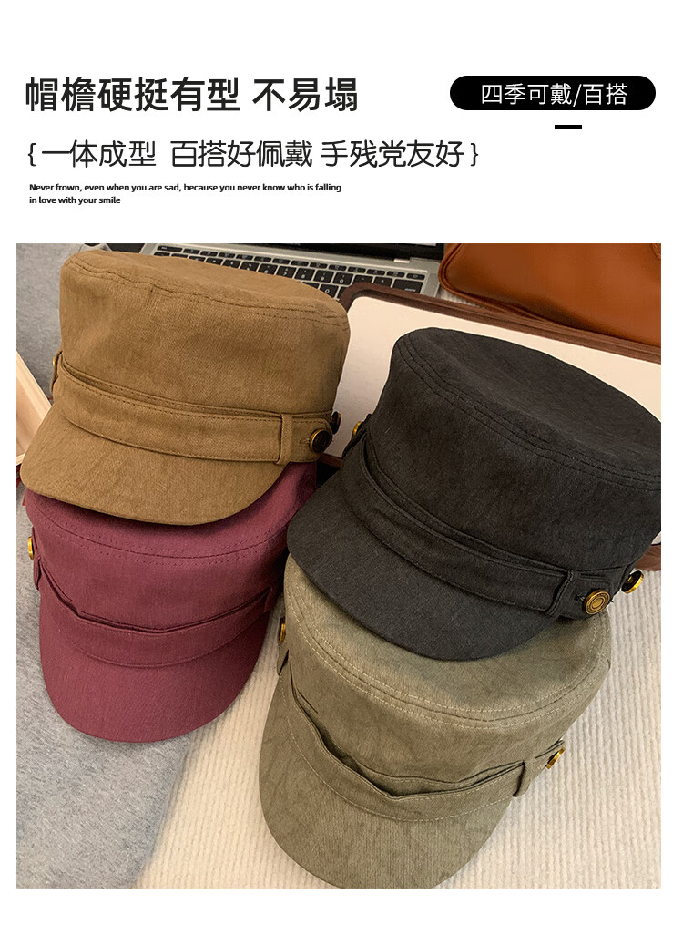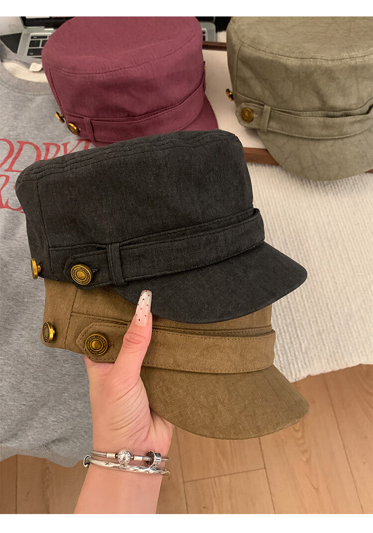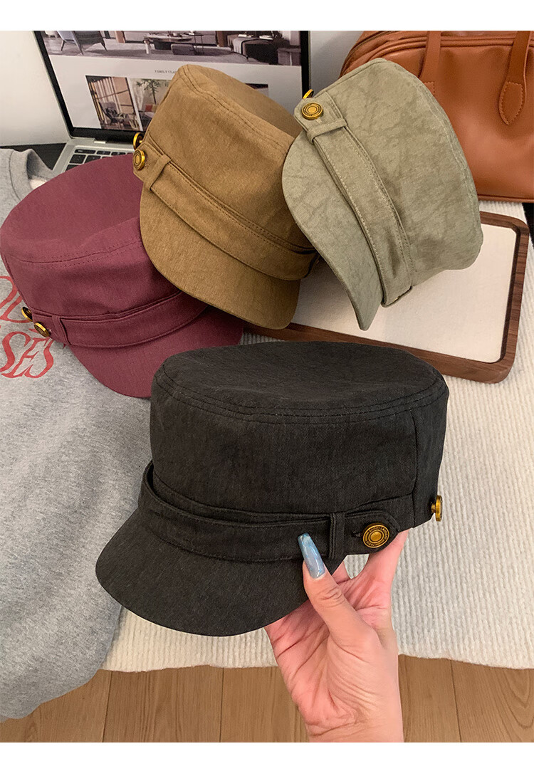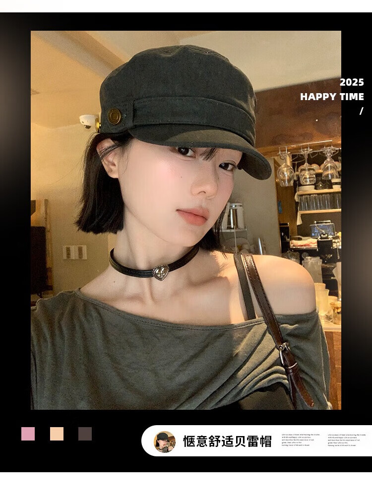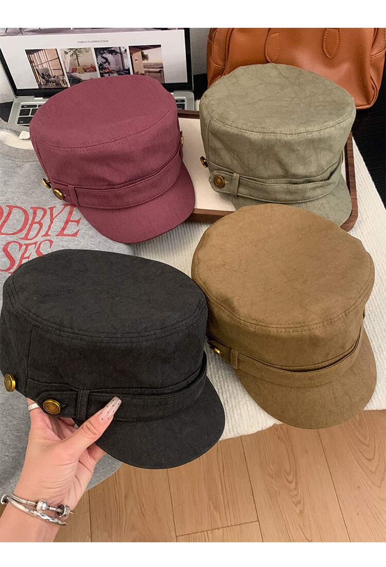 BIBK beret women's peaked cap equestrian hat showing face small flat top retro fashion hat square round face high skull retro green one size fits all elastic 55-59cm