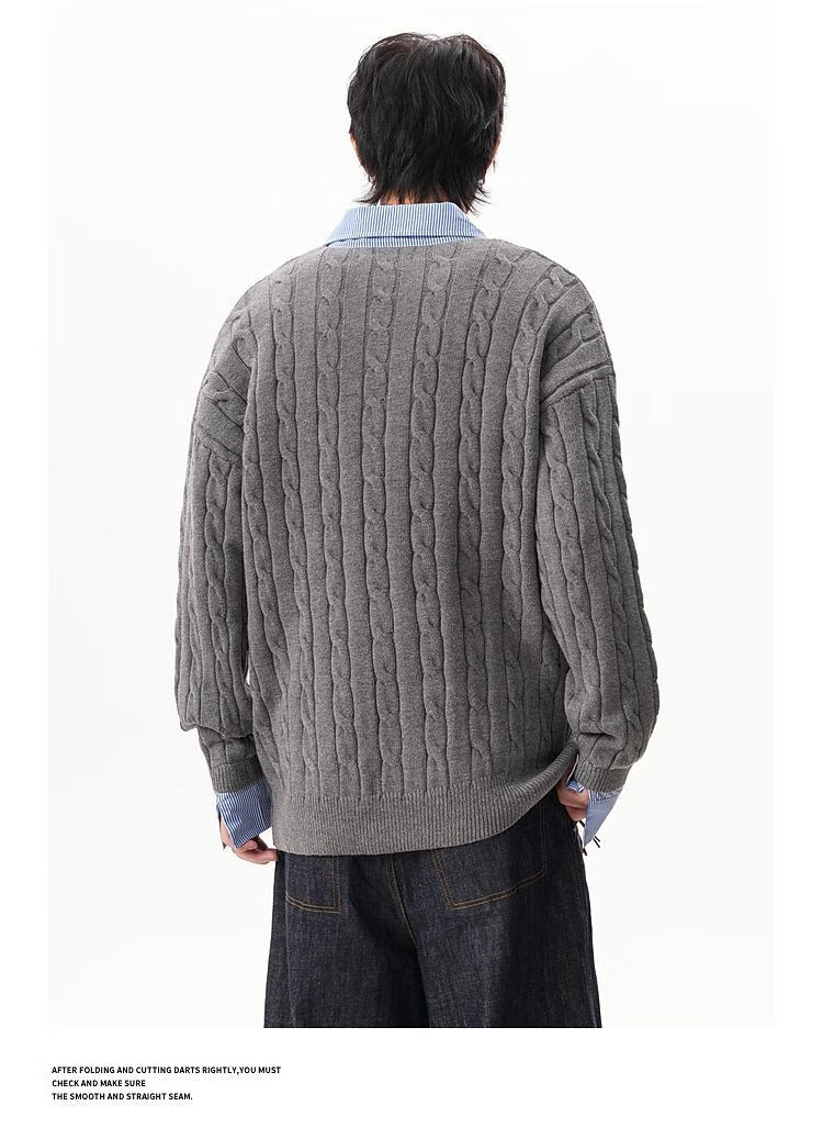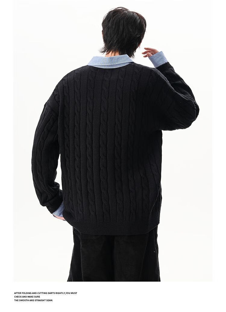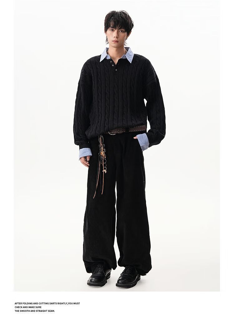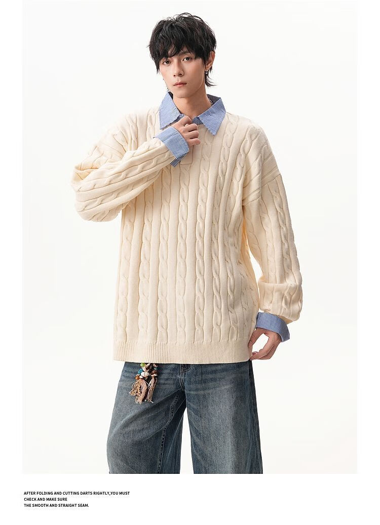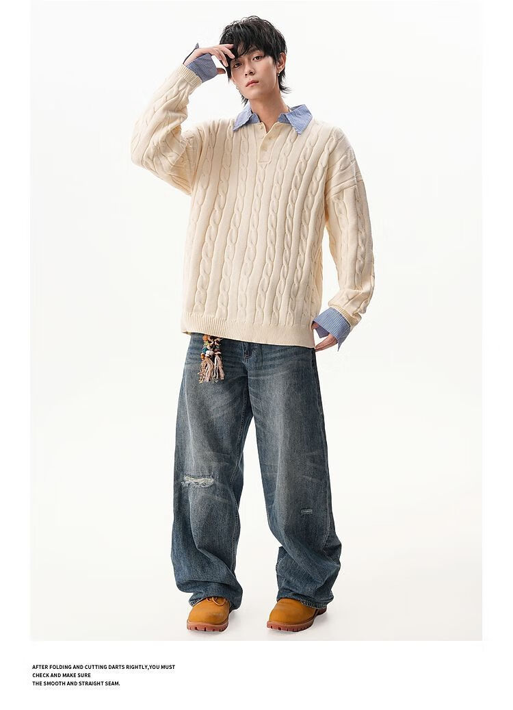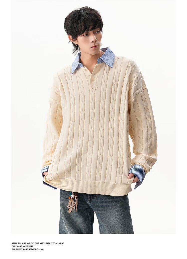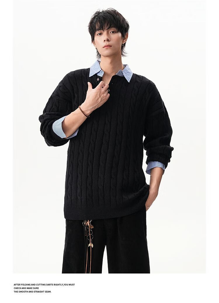 JASONWOOD American retro old money style sweater men's autumn and winter Henry collar POLO shirt fake two-piece sweater Gray M 160-165CM 90-105Jin Jin equals 0.5 kg