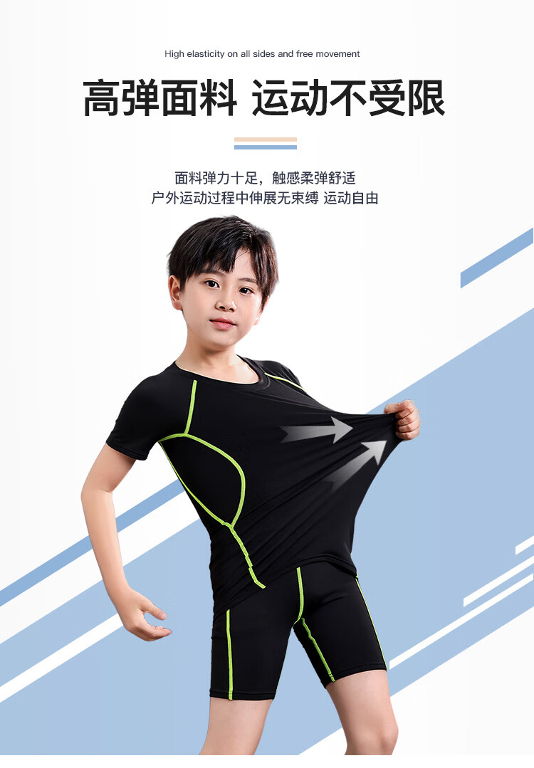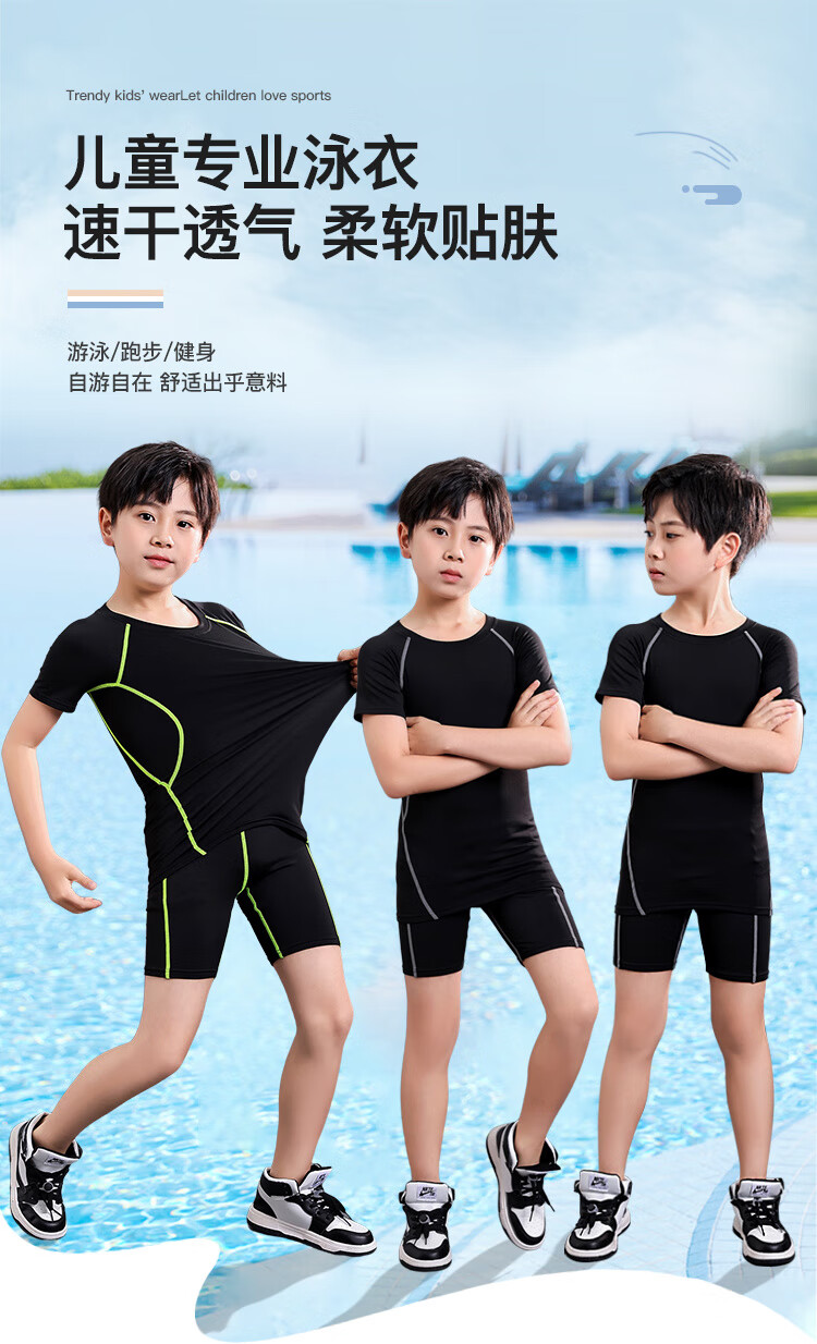 Vinoa children's swimsuit for boys, middle and large children and teenagers split boy swimsuit summer 2025 new sun protection swimming trunks set black and green 6-piece swimming cap small swimming goggles nose clip earplugs speed 125 120 anti-scratch and quick drying recommendations 115-125CM
