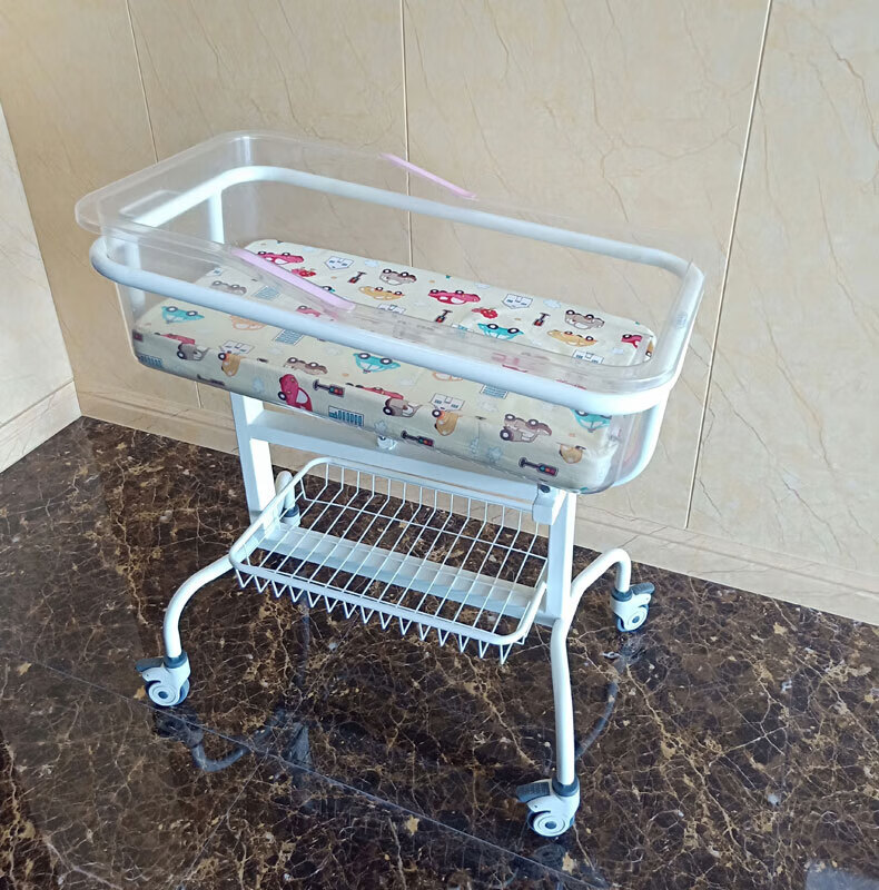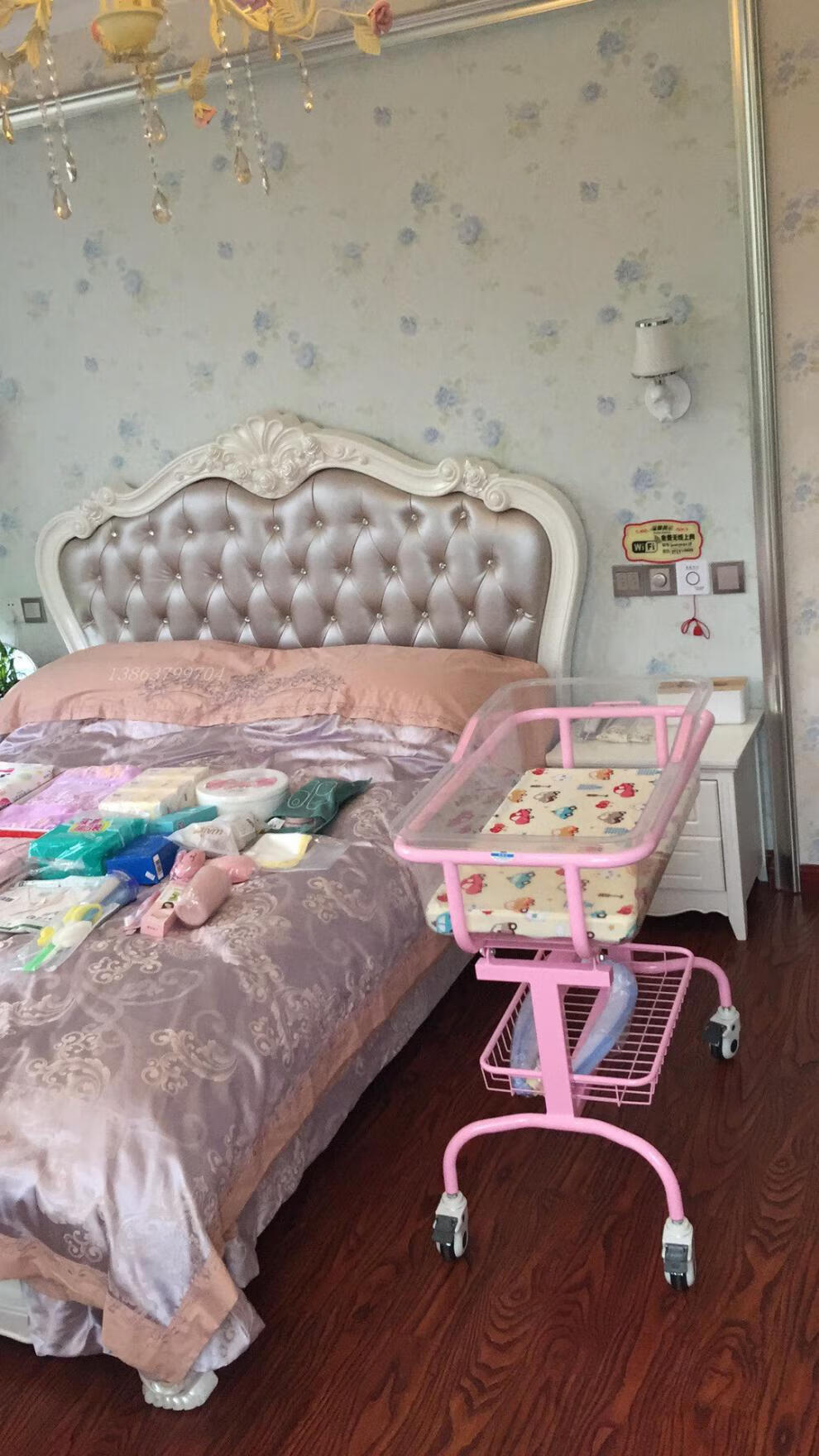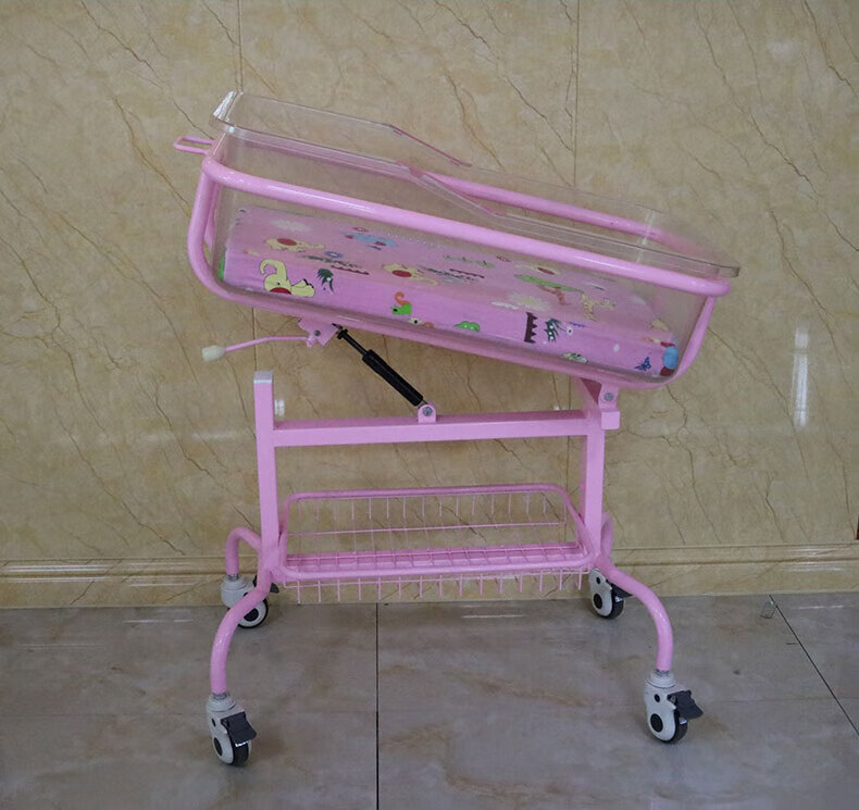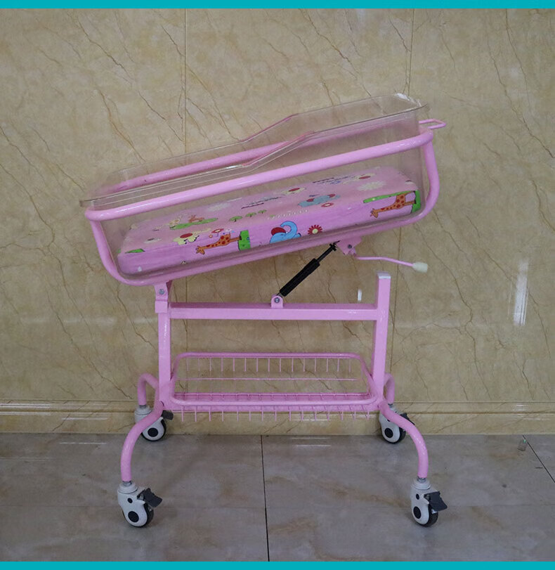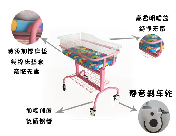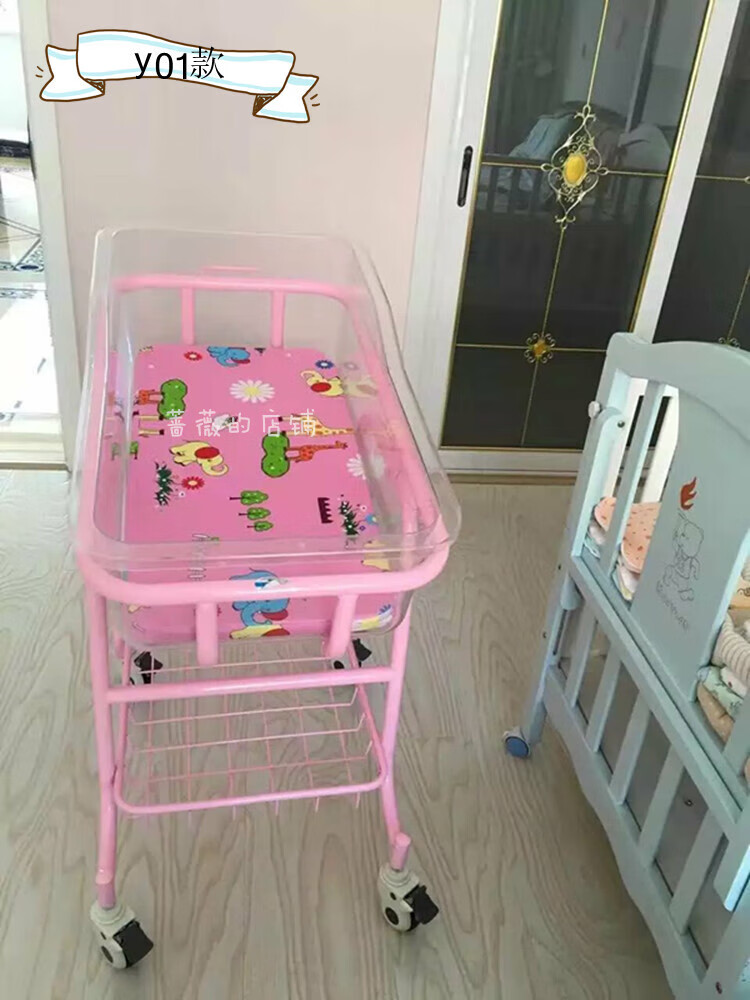 Confinement center crib anti-vomiting newborn crib obstetrical care bed abs mobile medical home stroller pink high-profile wheels plus brown silk mattress (with mosquito net)